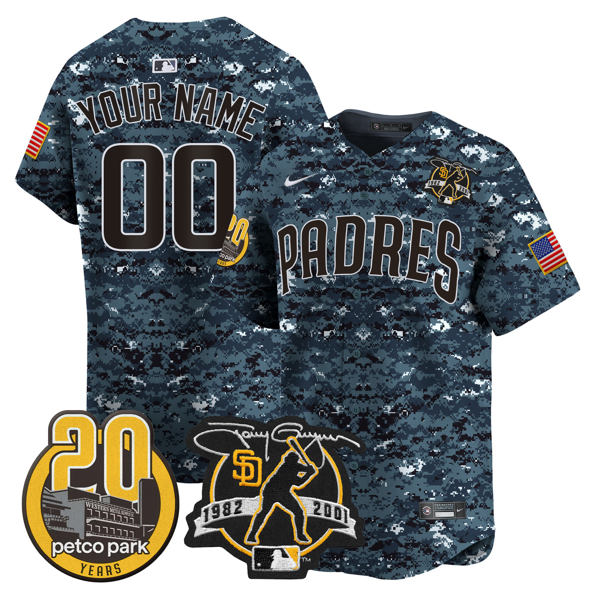 Padres Tony Gwynn & Petco Park 20th Patch USMC Vapor Premier Limited Custom Jersey – All Stitched