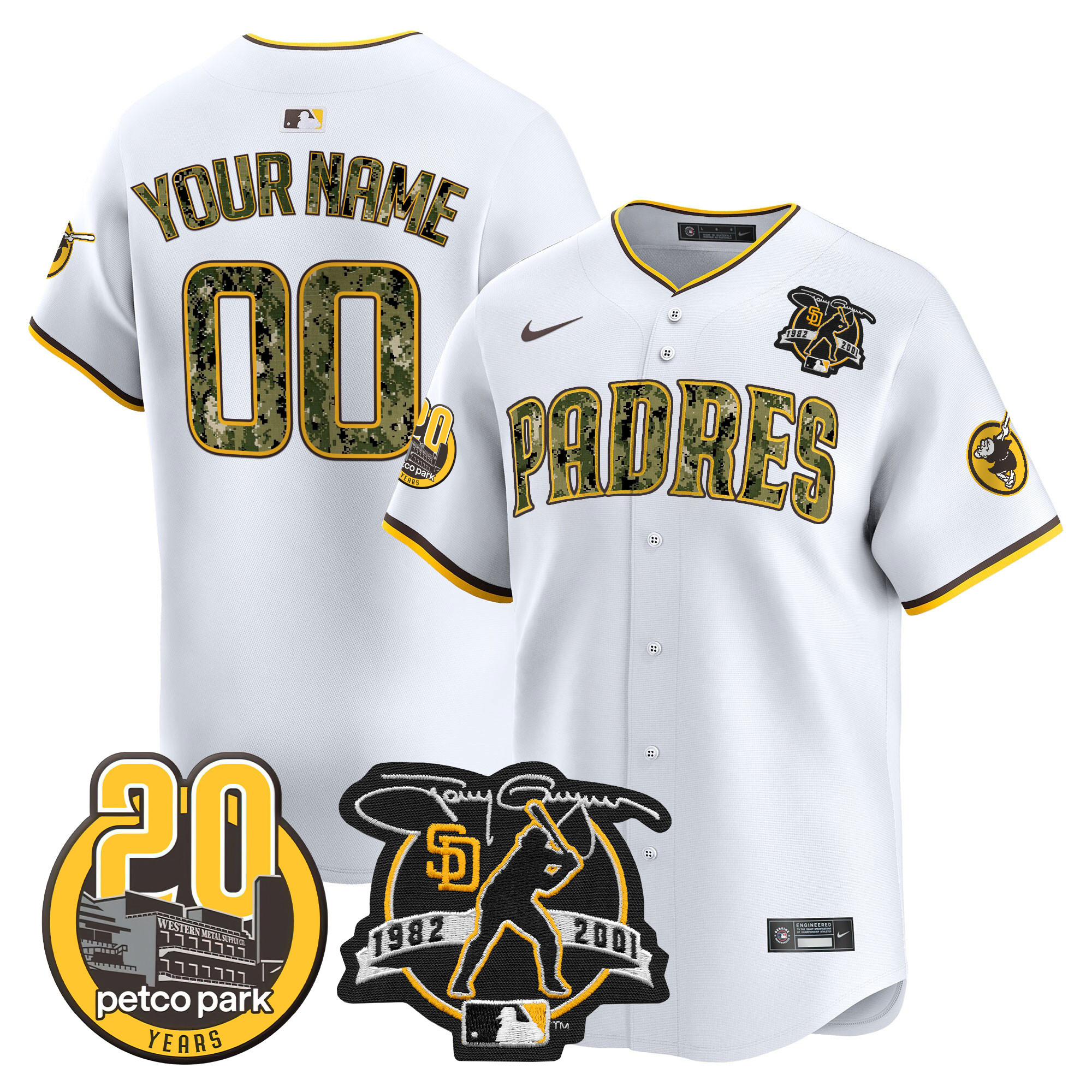 Padres Tony Gwynn & Petco Park 20th Patch USMC Vapor Premier Limited Custom Jersey V2 – All Stitched