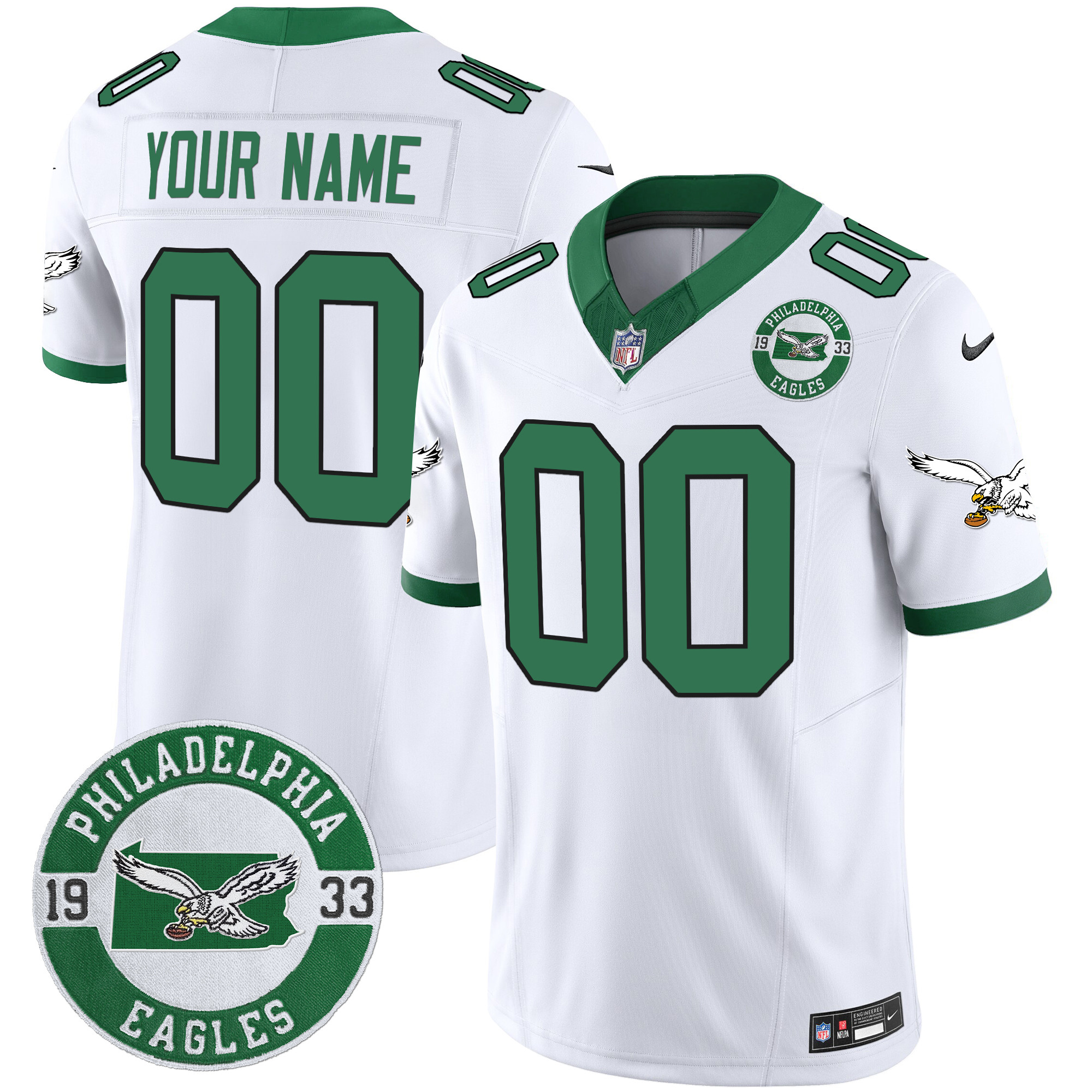 Philadelphia Eagles 2024 Throwback Vapor Limited Custom Jersey – Est. 1933 Patch – All Stitched