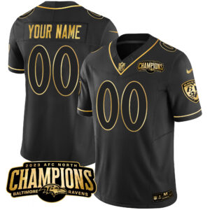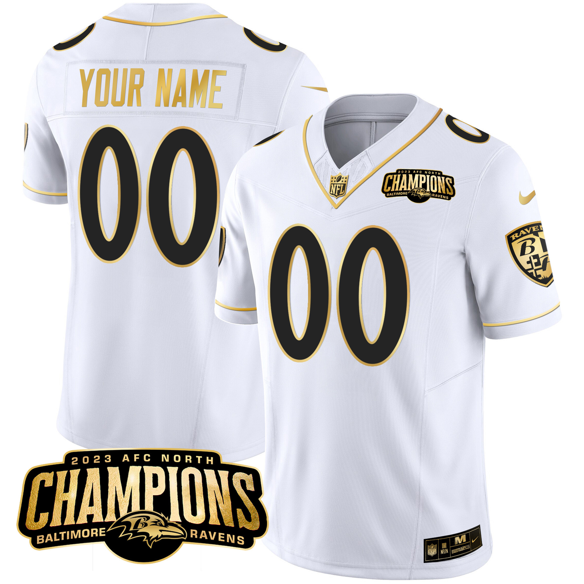 Ravens 2023 AFC North Champions Patch Gold Vapor Custom Jersey – All Stitched
