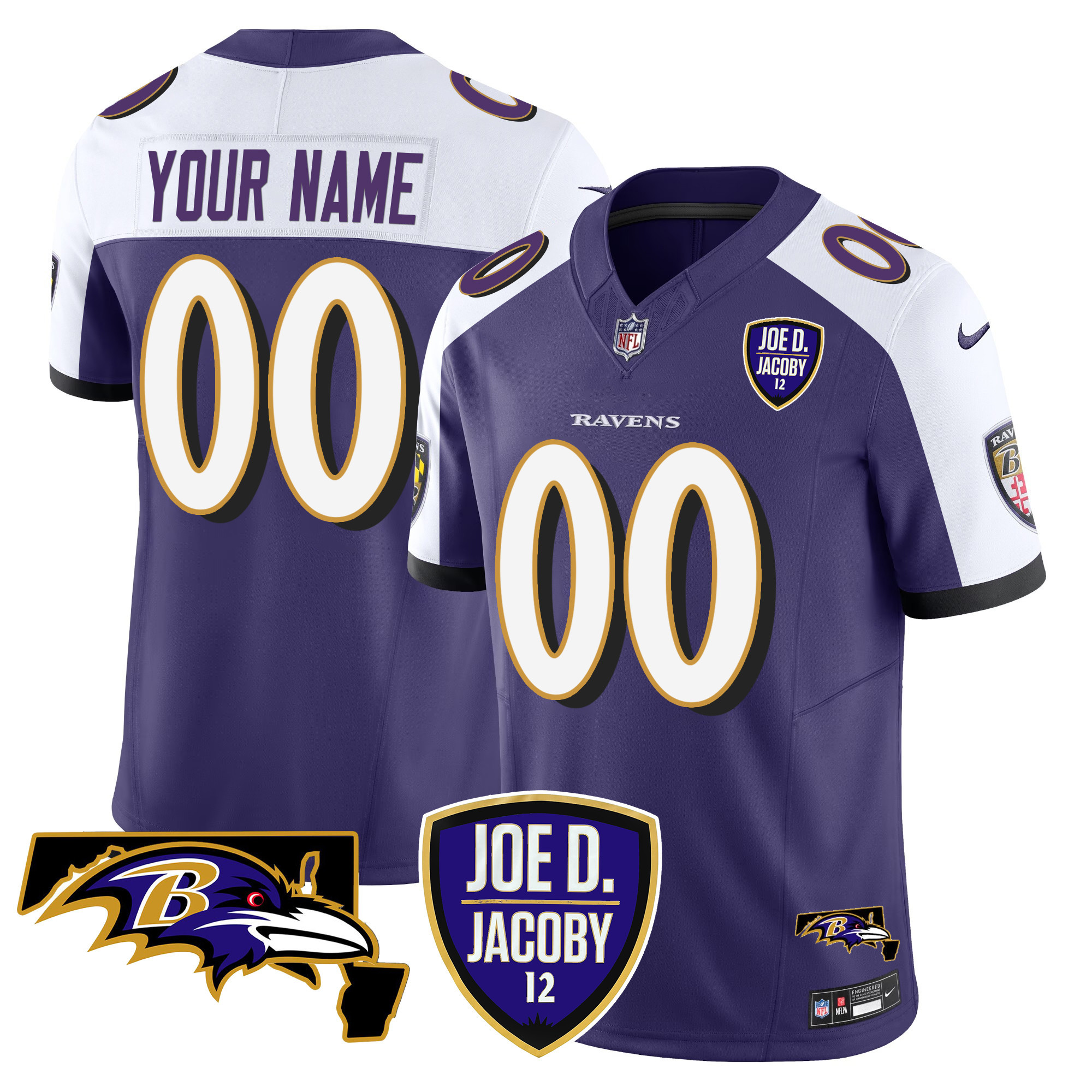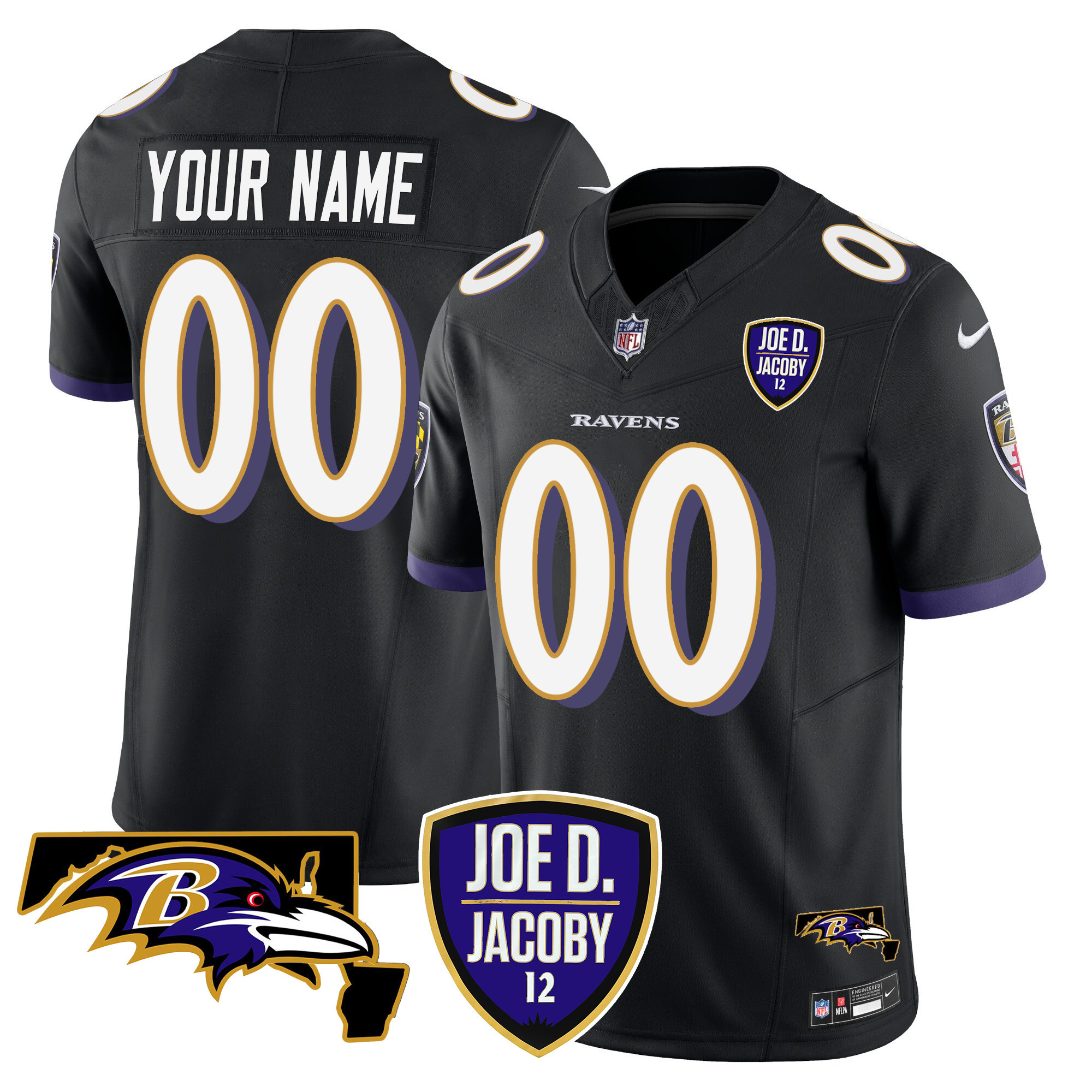Ravens Joe D & Jacoby Patch Vapor Limited Custom Jersey – All Stitched