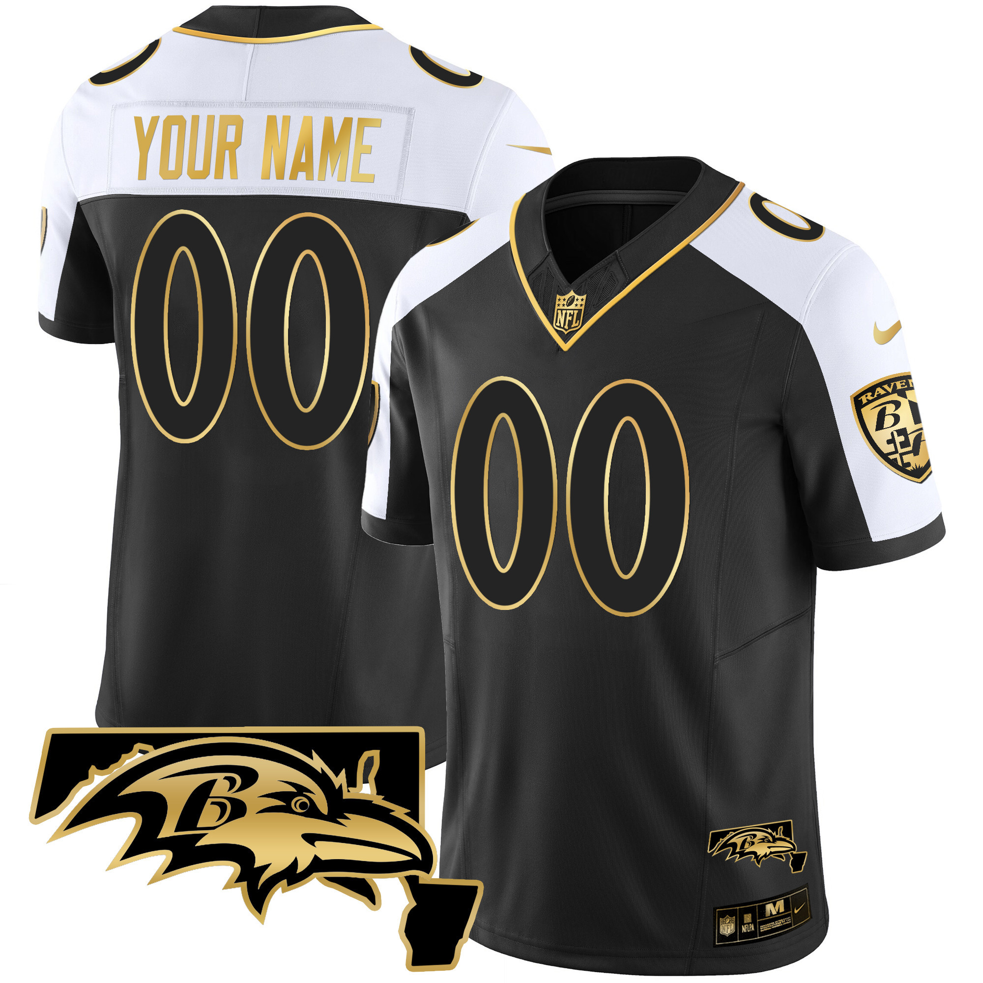 Ravens Maryland Patch Vapor Gold Custom Jersey – All Stitched