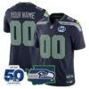 Seattle Seahawks “Super Bowl LX & 50th Patch” Gold Trim Vapor Limited Custom Jersey – All Stitched