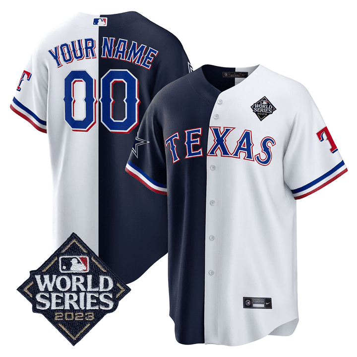 Split Rangers – Cowboys 2023 World Series Patch Cool Base Custom Jersey – All Stitched