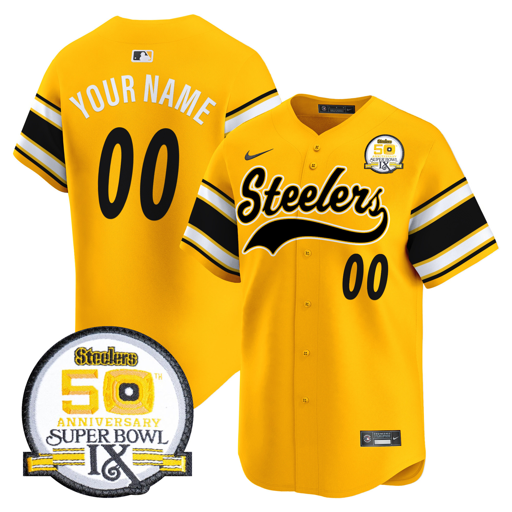 Steelers 50th Anniversary Of Super Bowl IX Patch Vapor Premier Baseball Custom Jersey – All Stitched