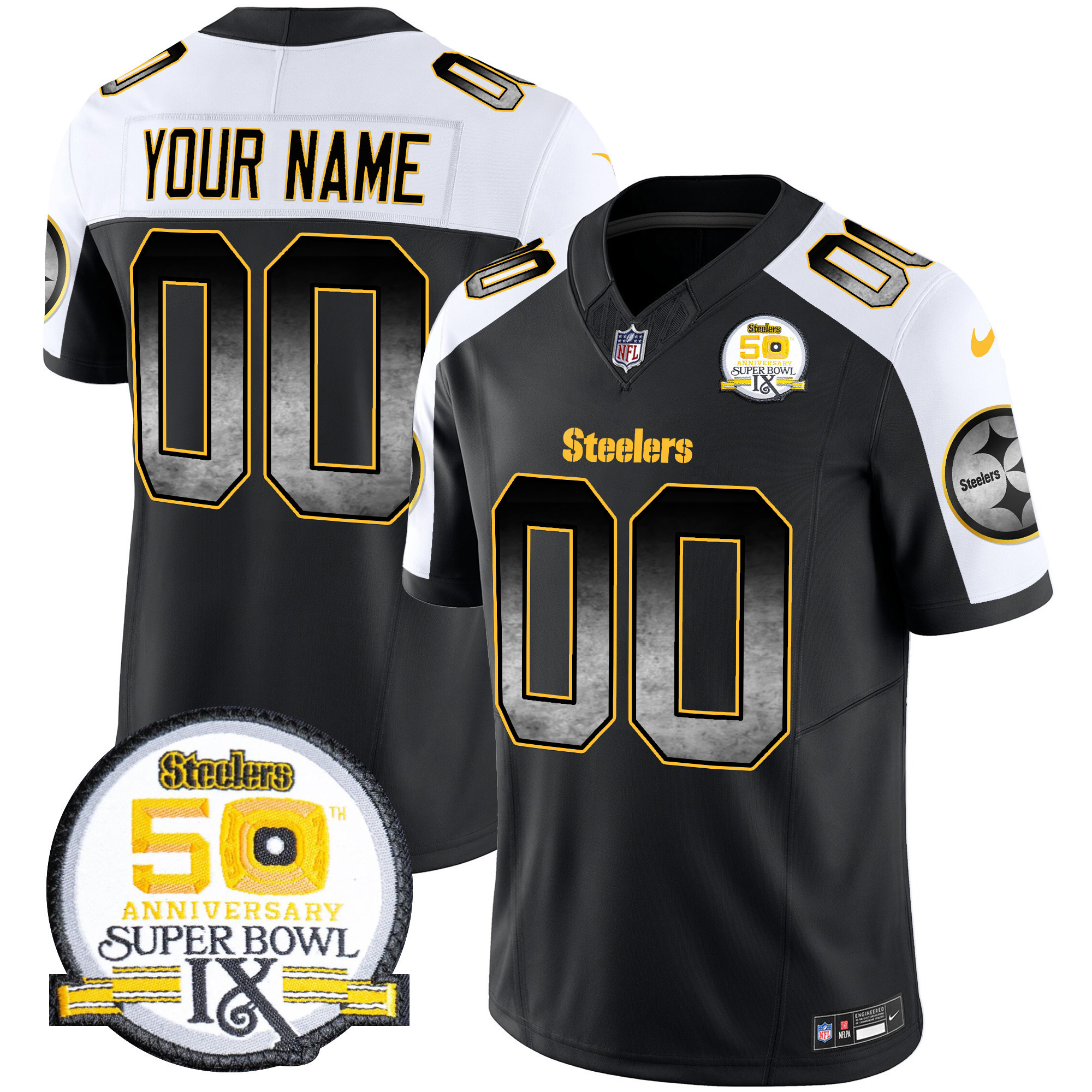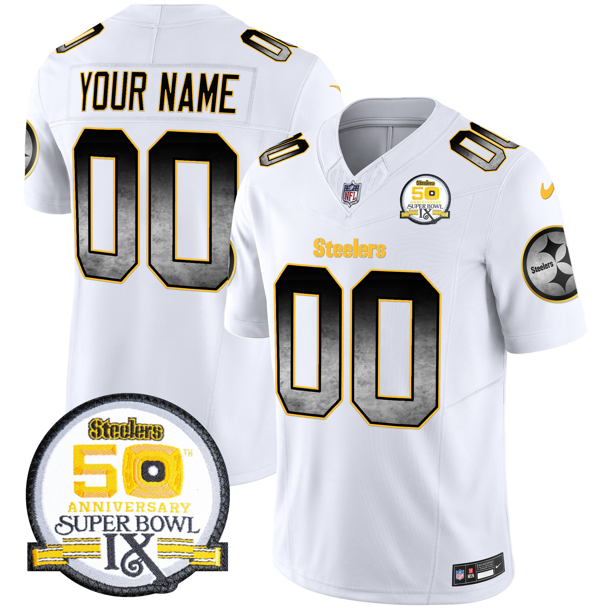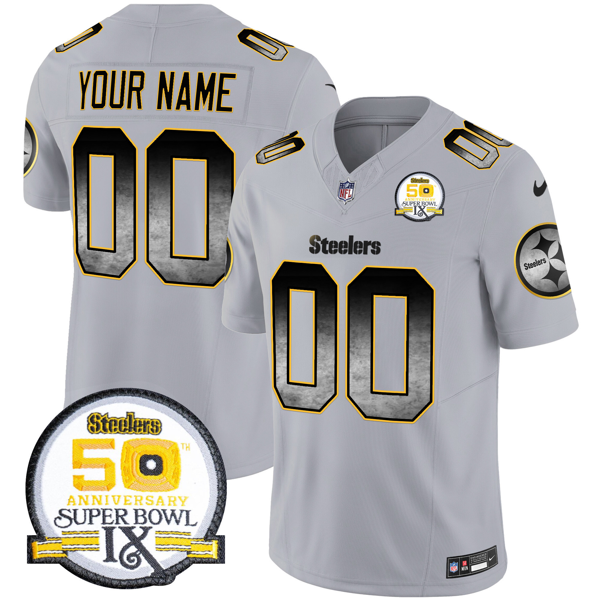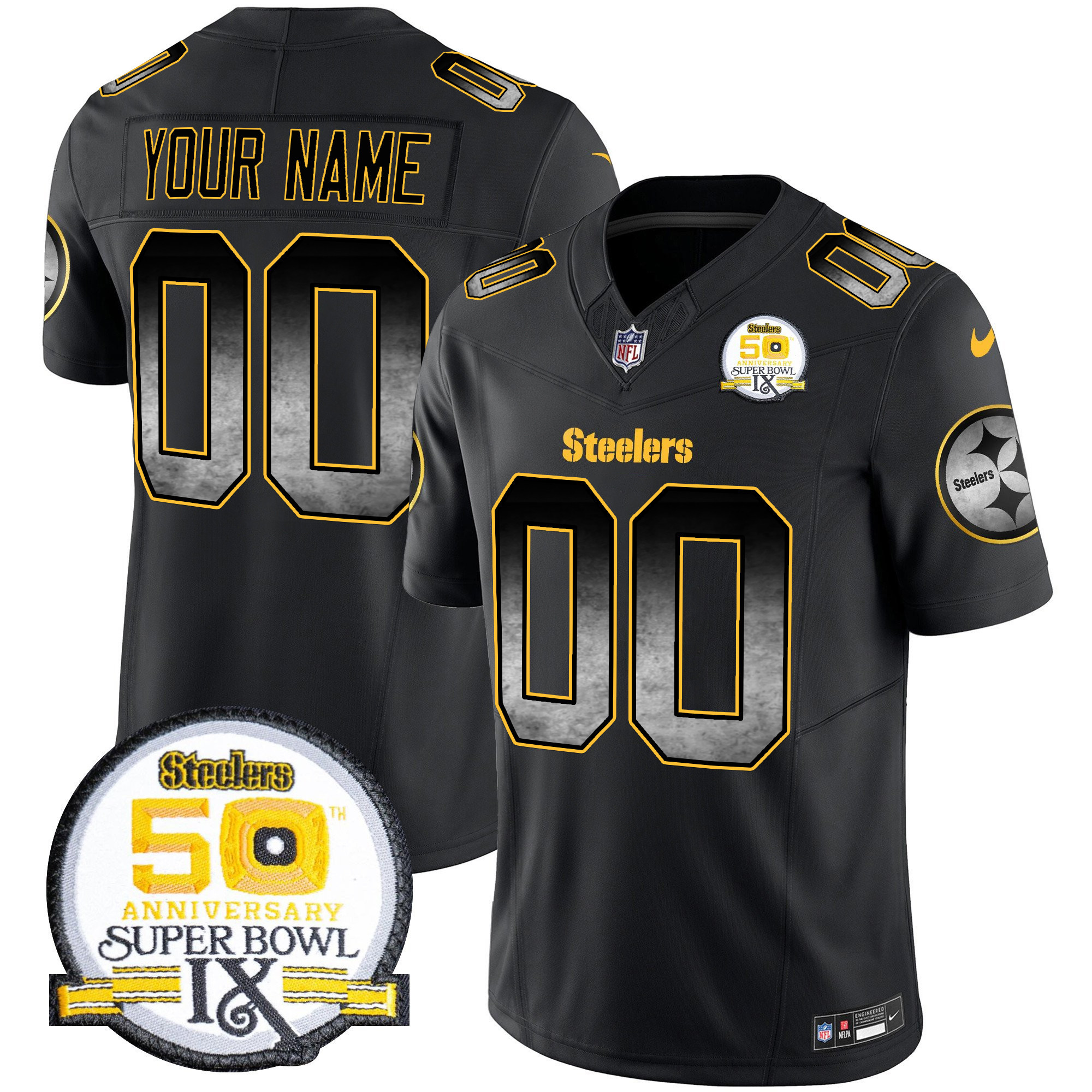 Steelers Arch Smoke 50th Anniversary Of Super Bowl IX Patch Vapor Limited Custom Jersey – All Stitched