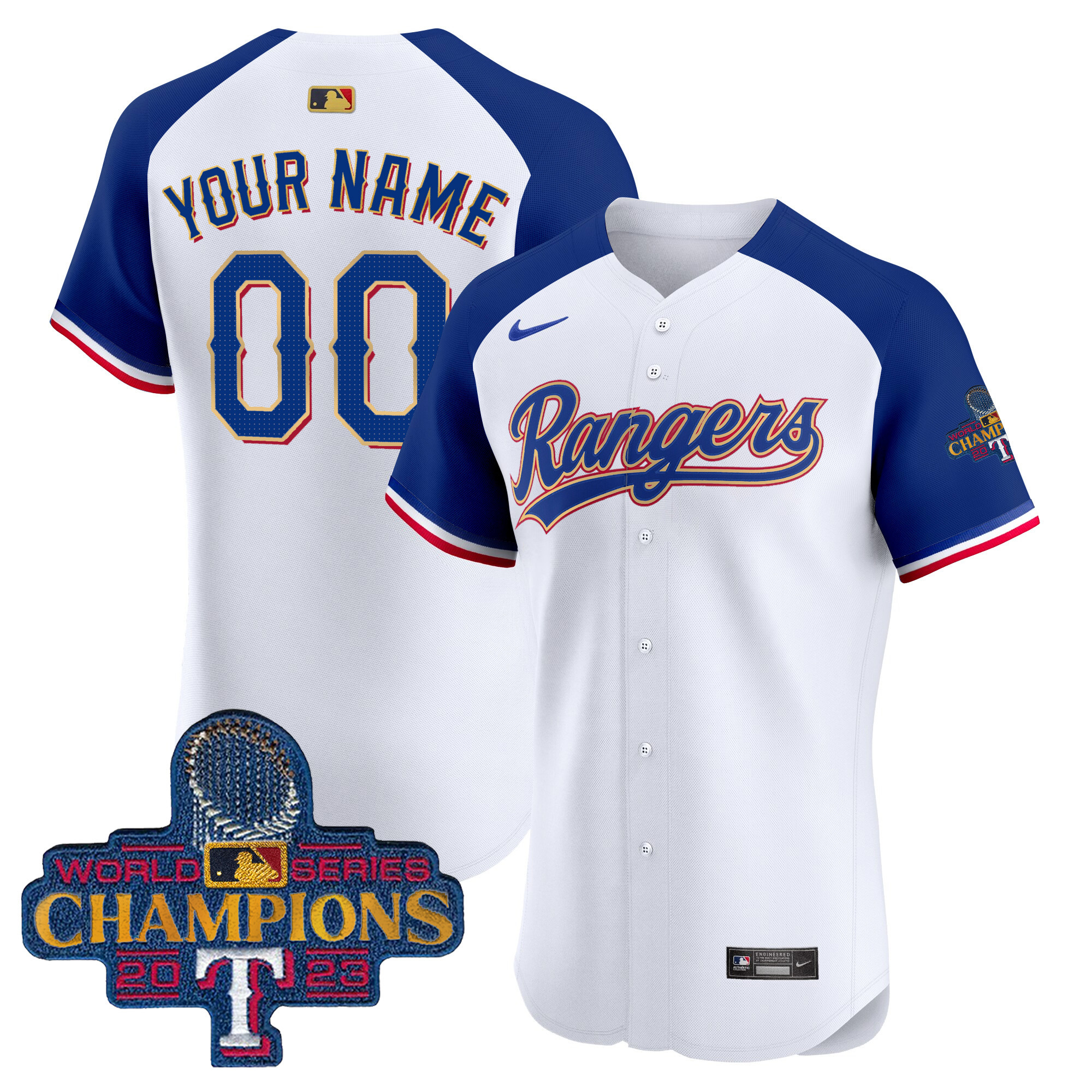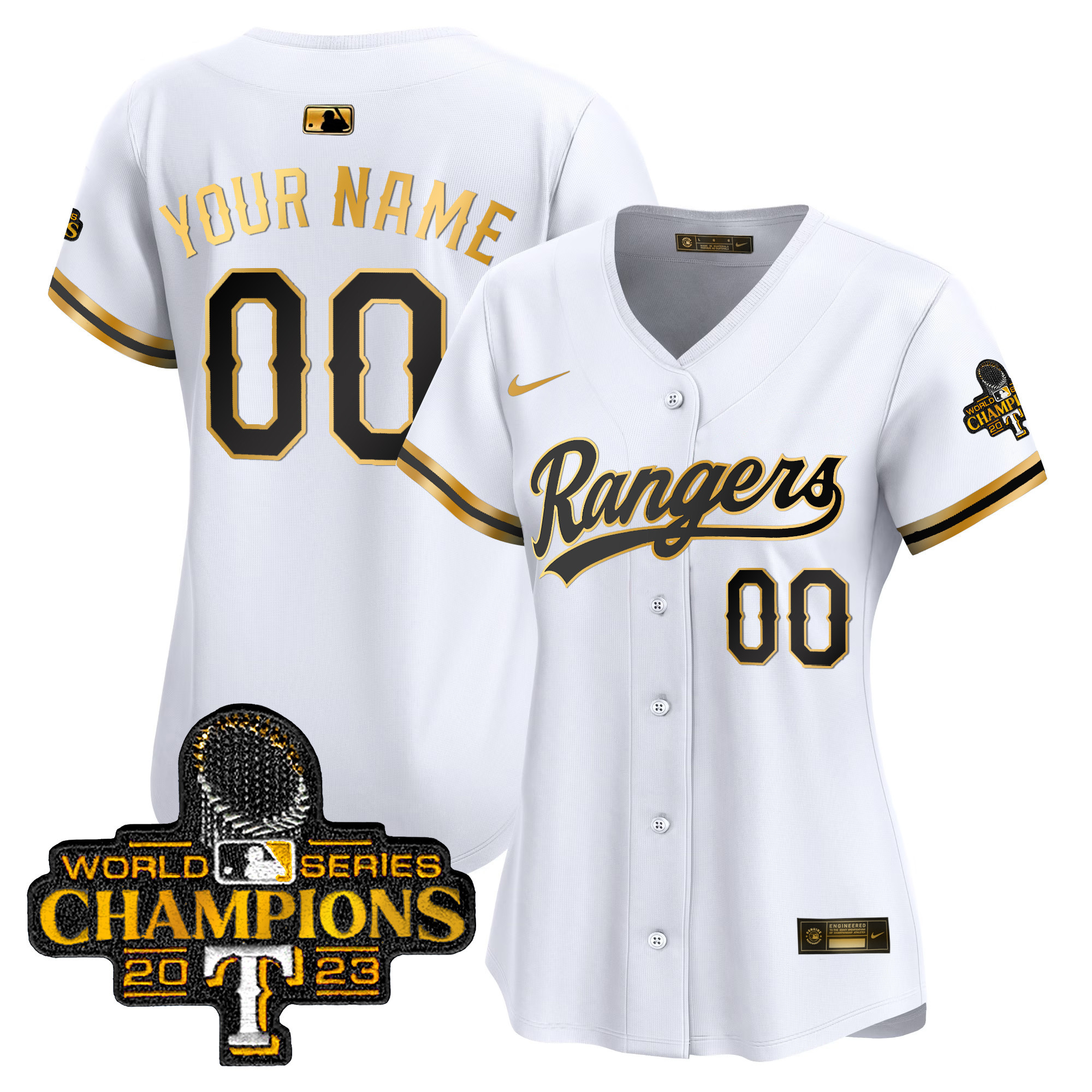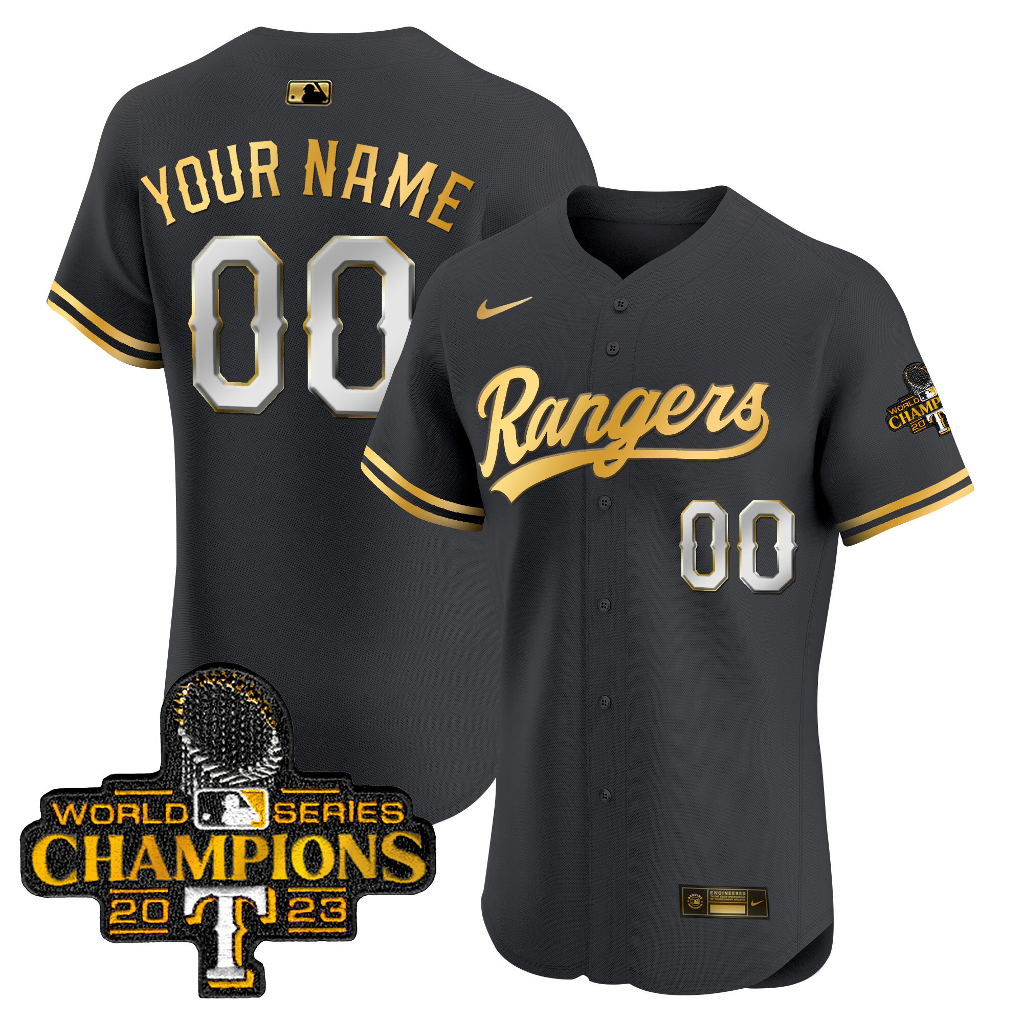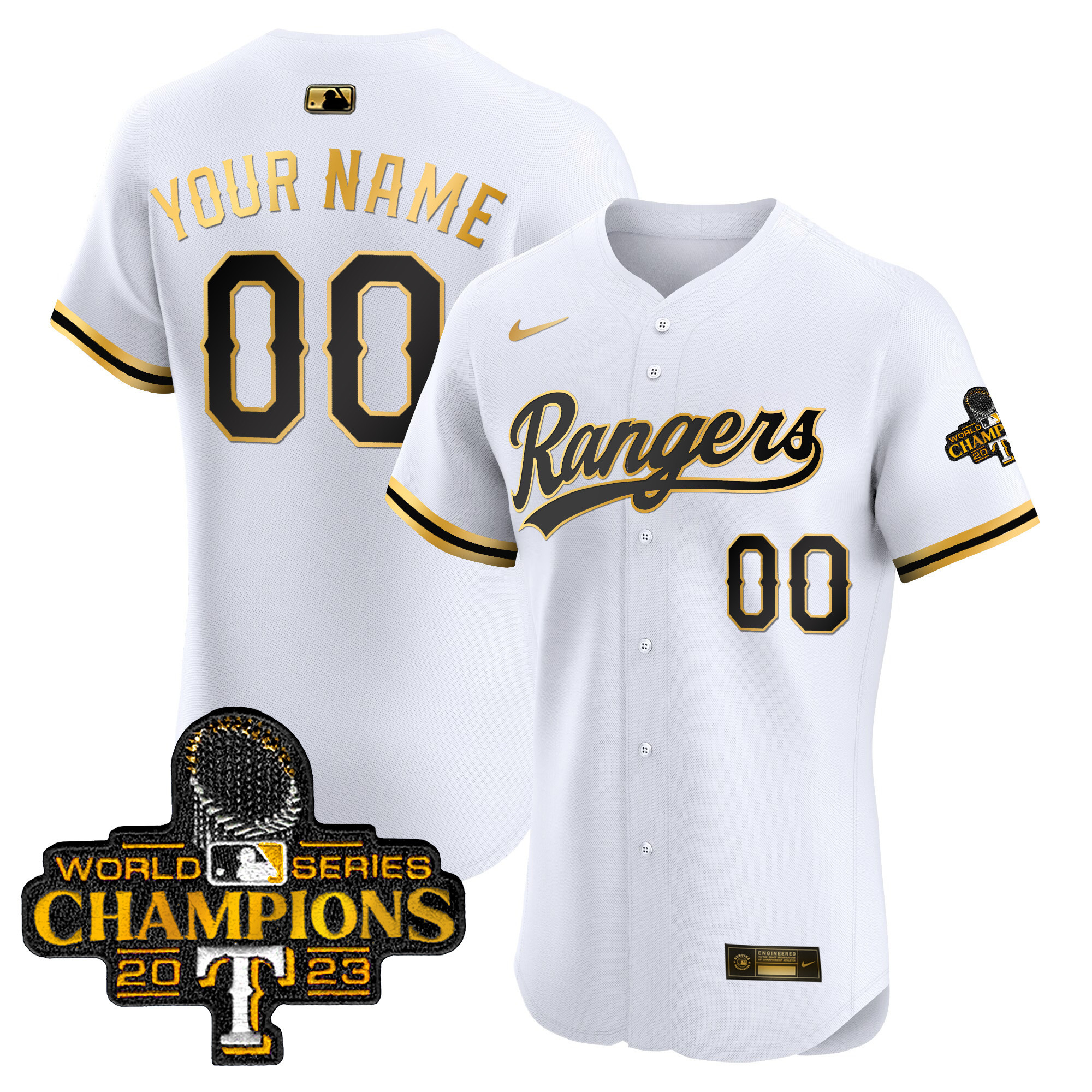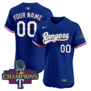 Texas Rangers 2023 World Series Champions Gold Trim Vapor Premier Elite Custom Jersey – All Stitched