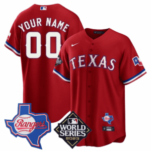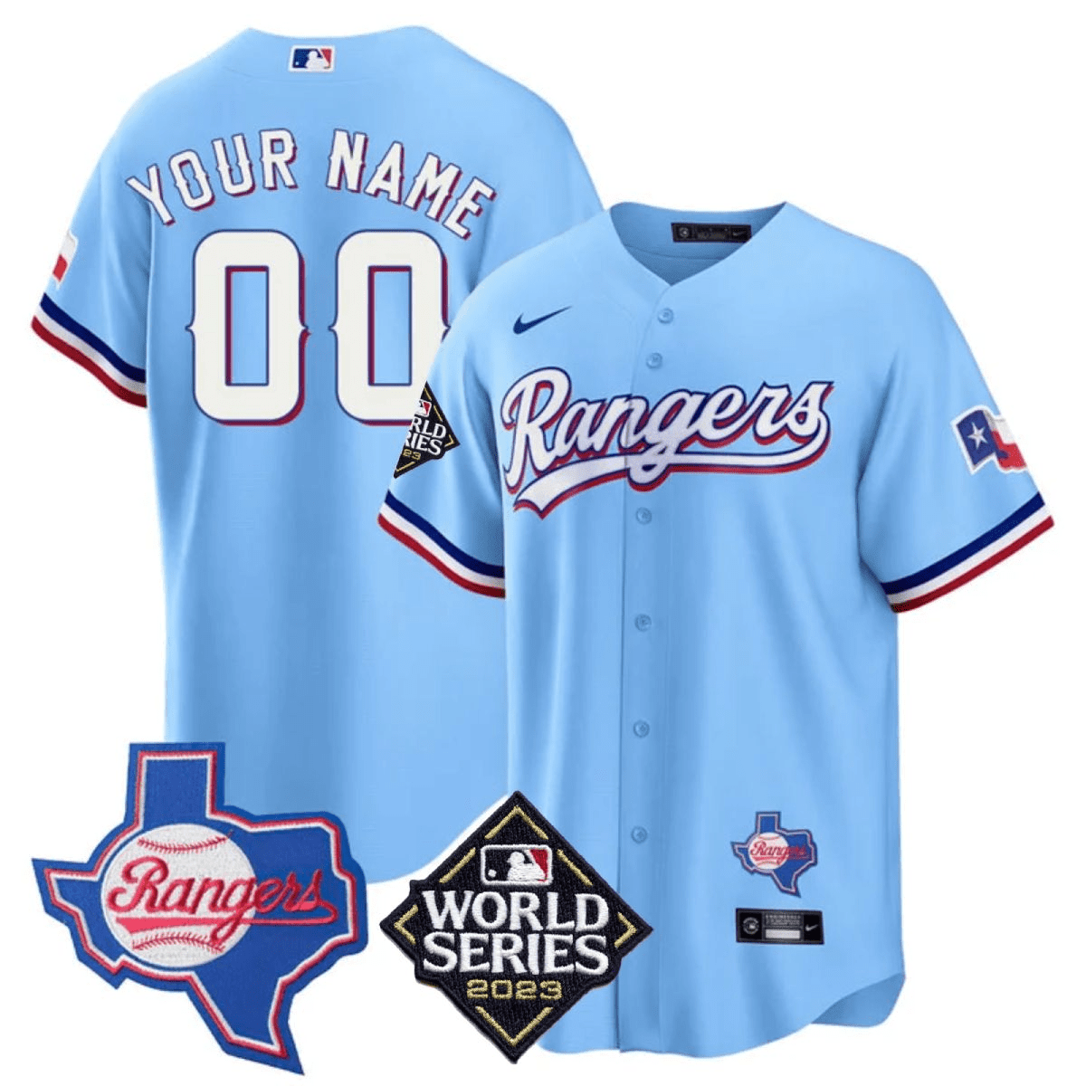 Texas Rangers 2023 World Series & Texas State Patch Gold Custom Jersey V2- All Stitched