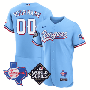 Texas Rangers Texas State & 2023 World Series Patch Custom Jersey – All Stitched