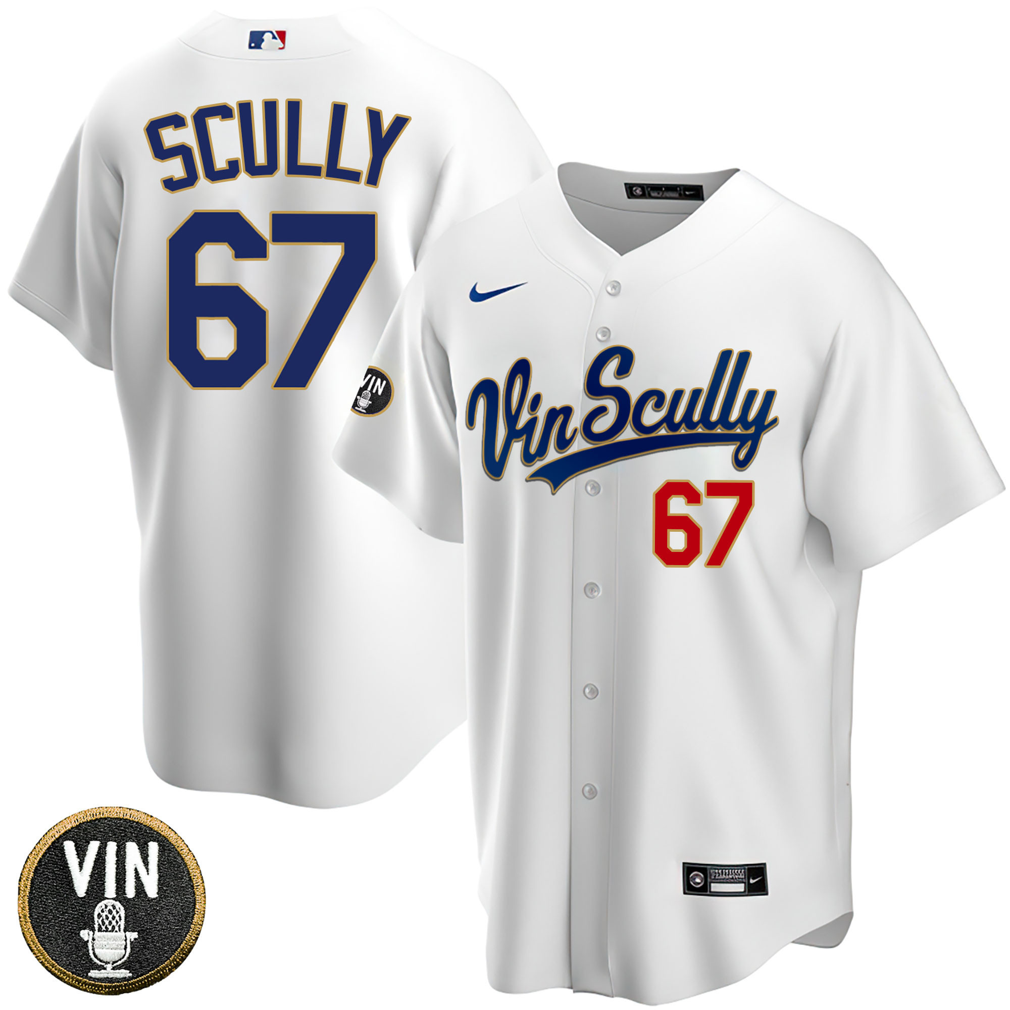 Vin Scully Patch Gold Trim Limited Jersey – All Stitched
