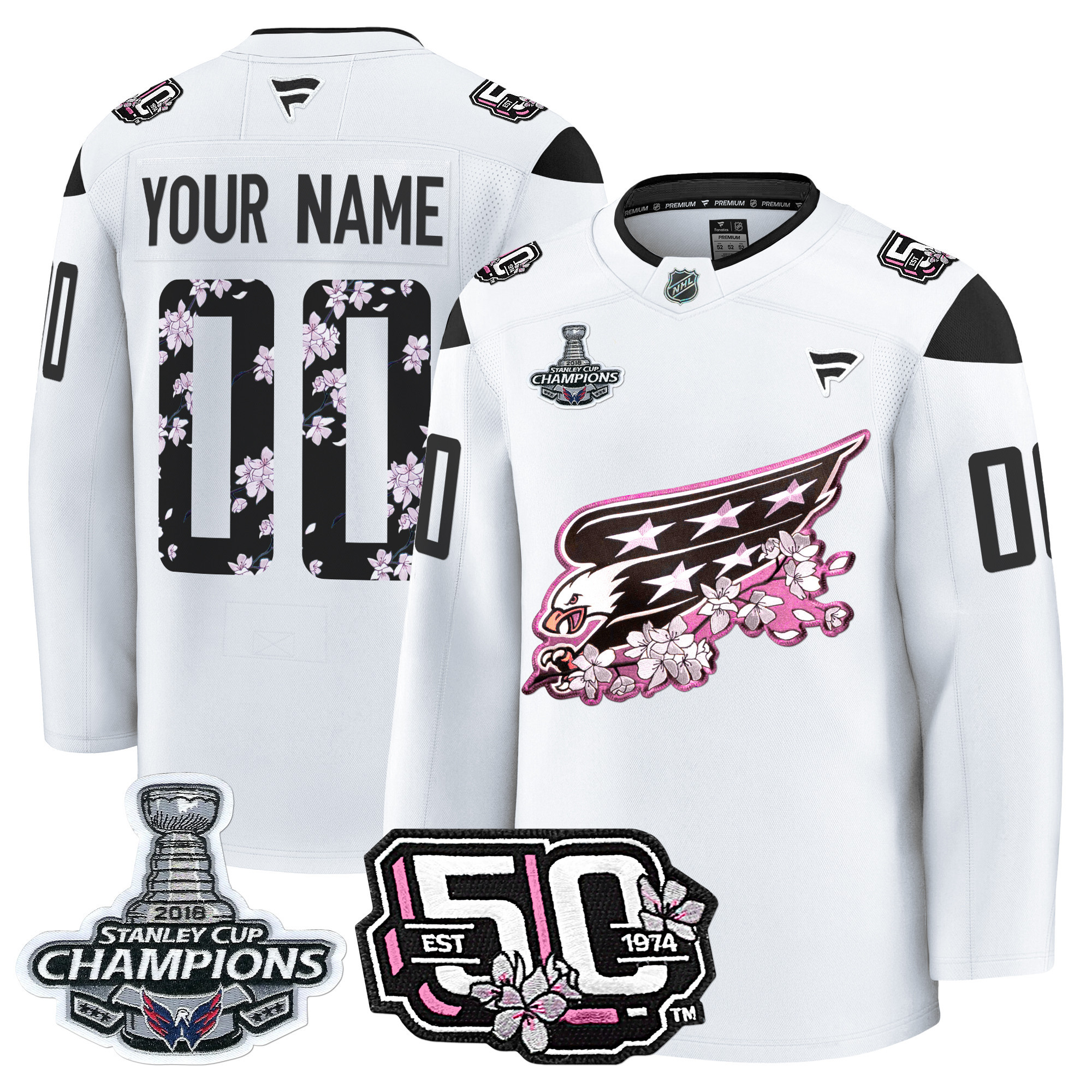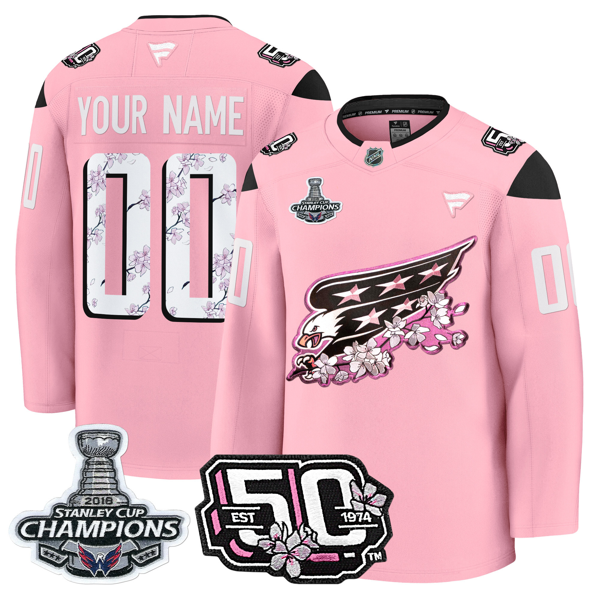Washington Capitals 50th Anniversary & 2018 Stanley Cup Champions Patch Cherry Blossom Premium Custom Jersey – All Stitched