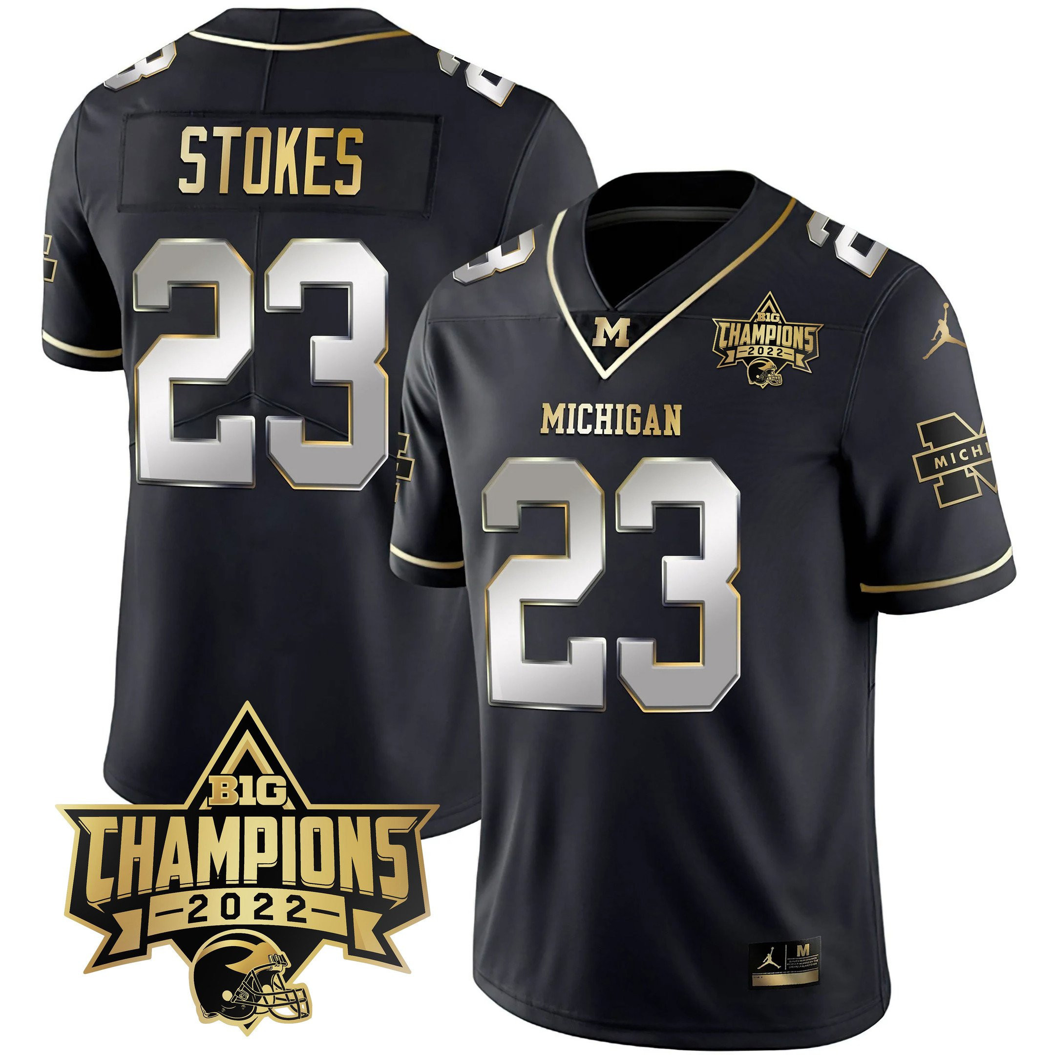 Wolverines Big Champions 2022 Patch Black Limited Vapor Jersey – All Stitched