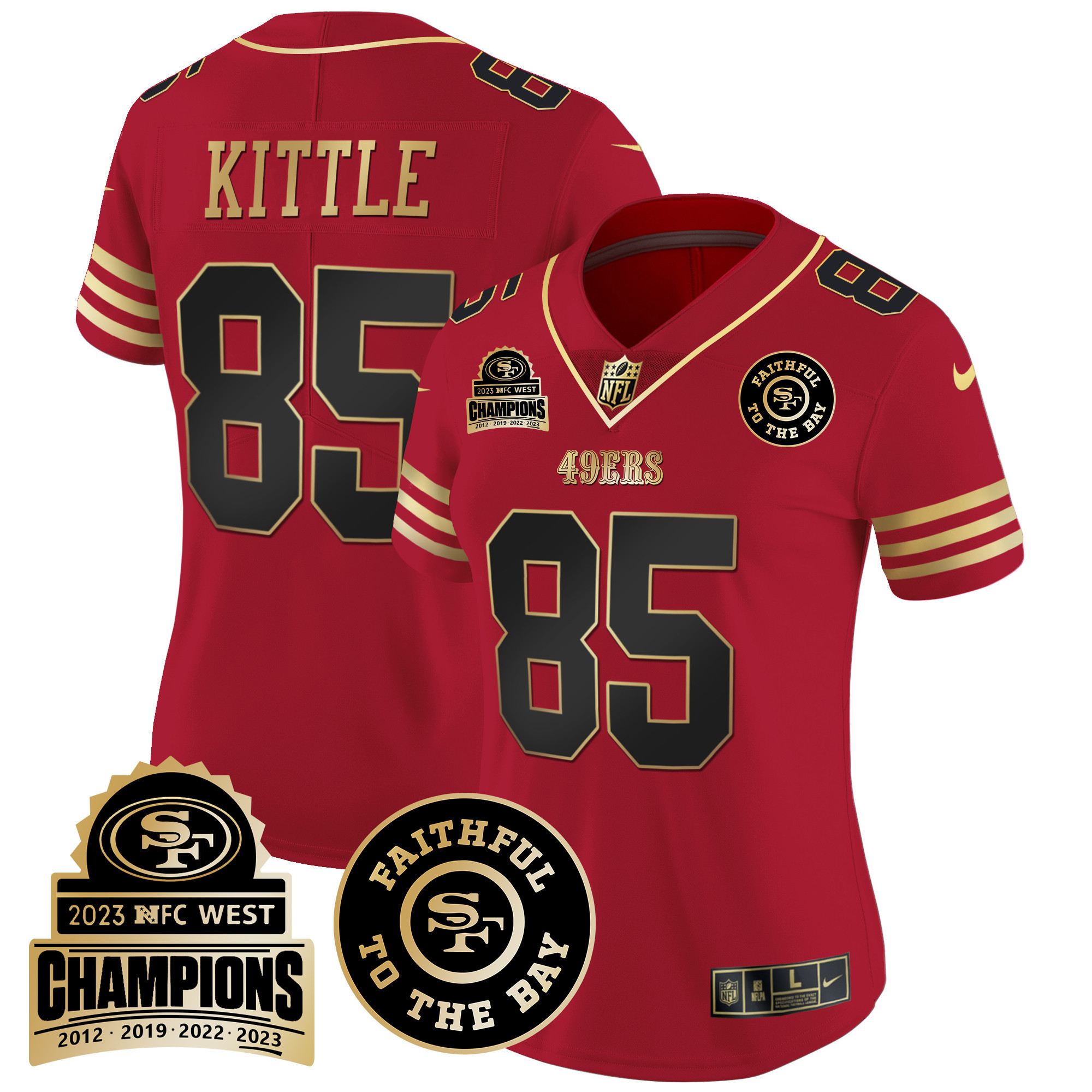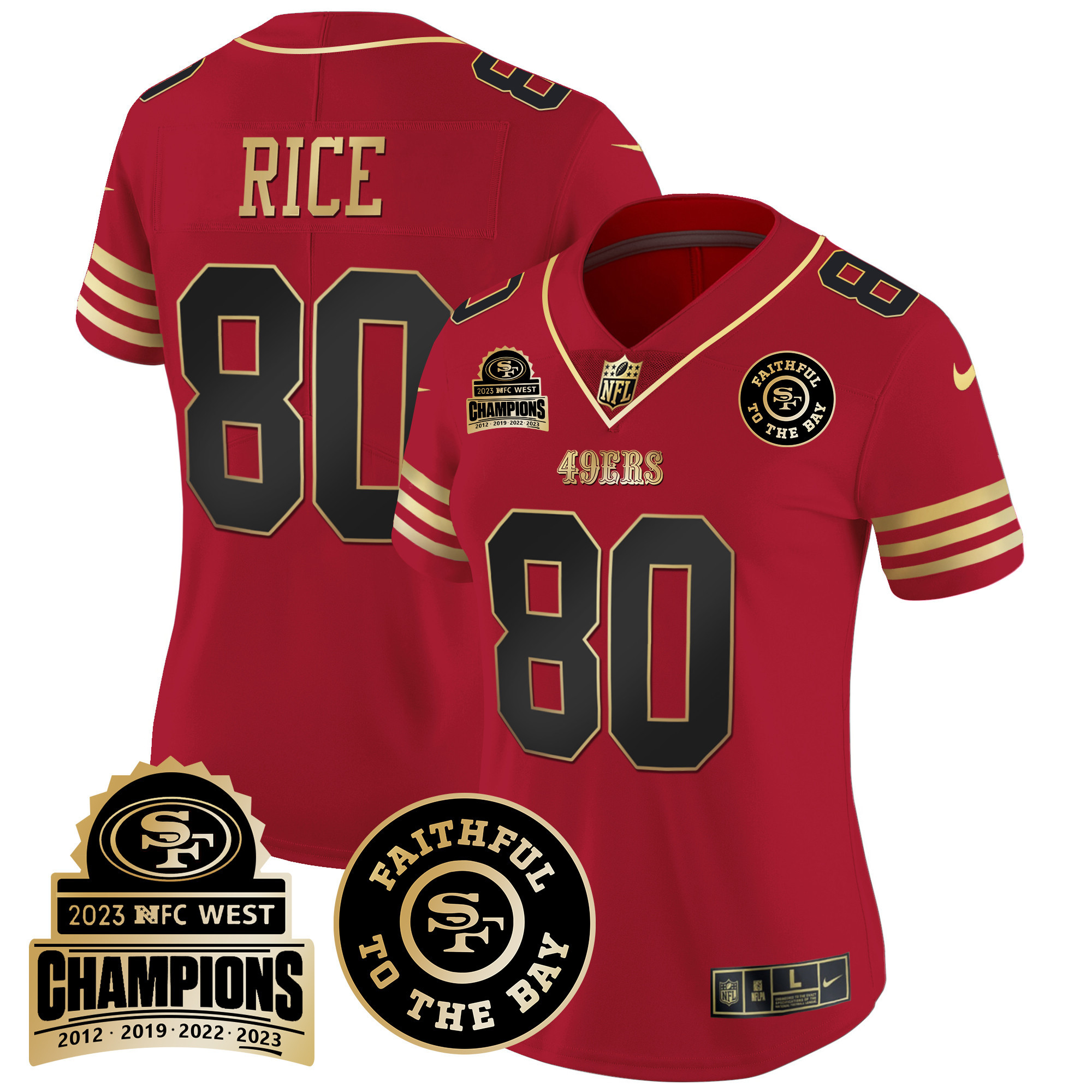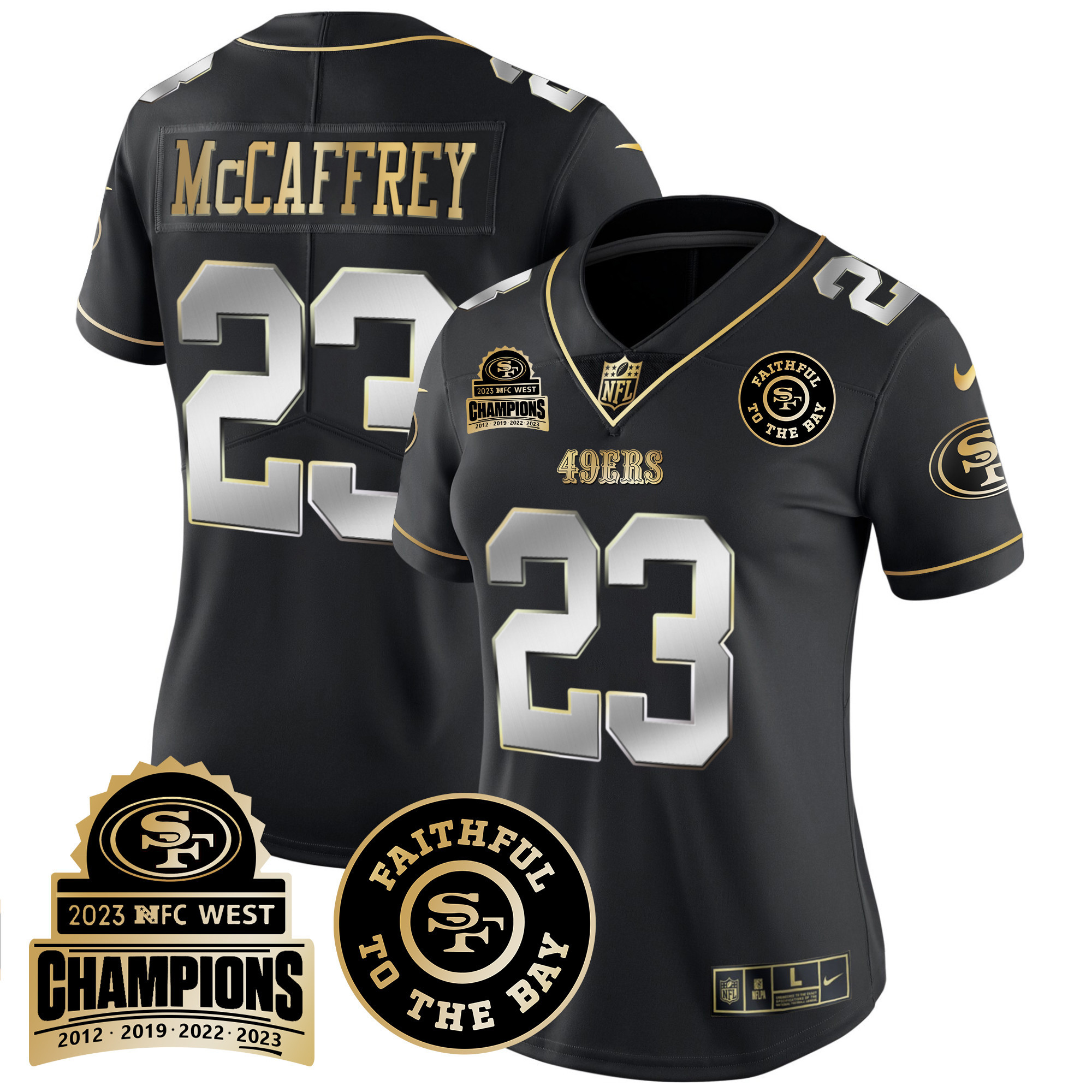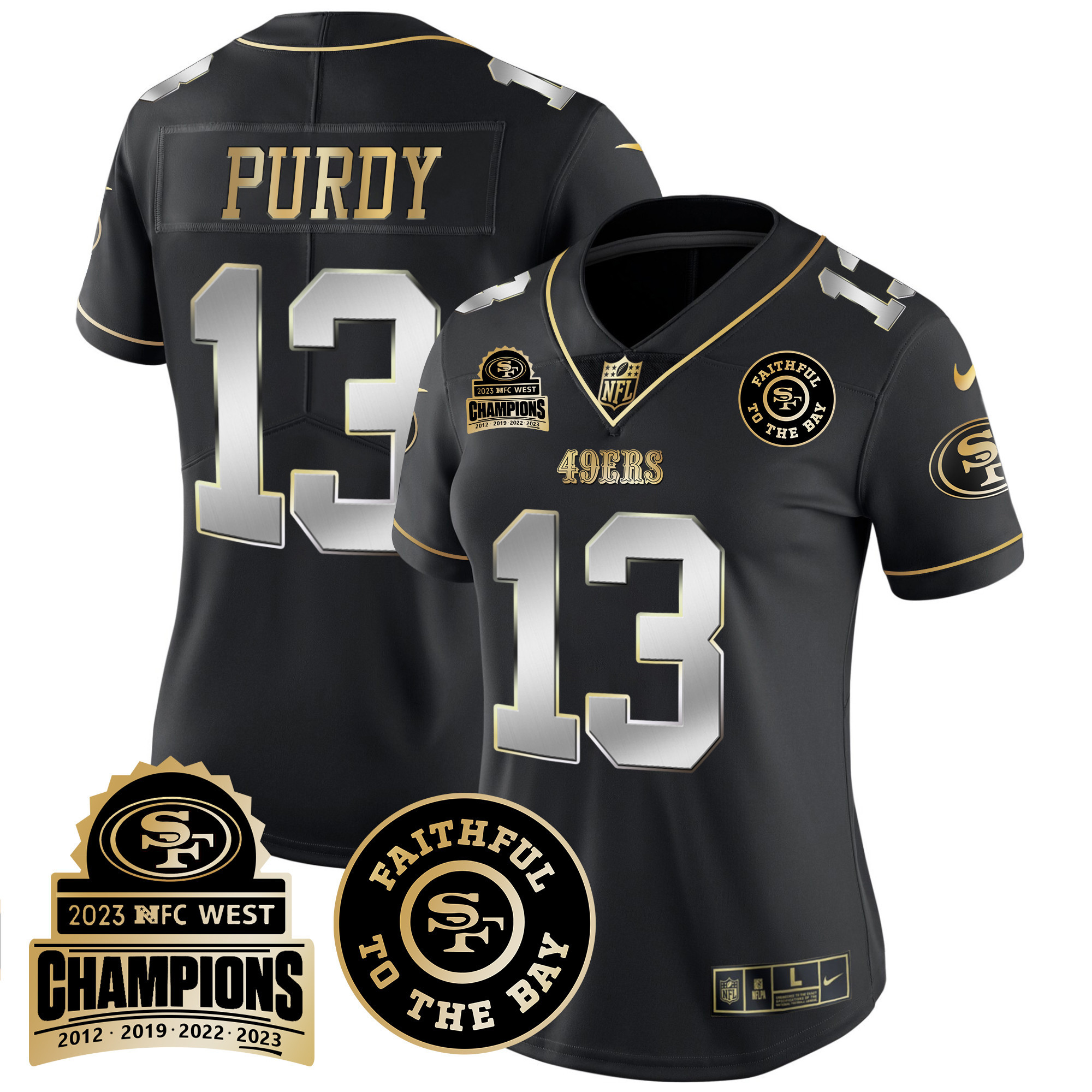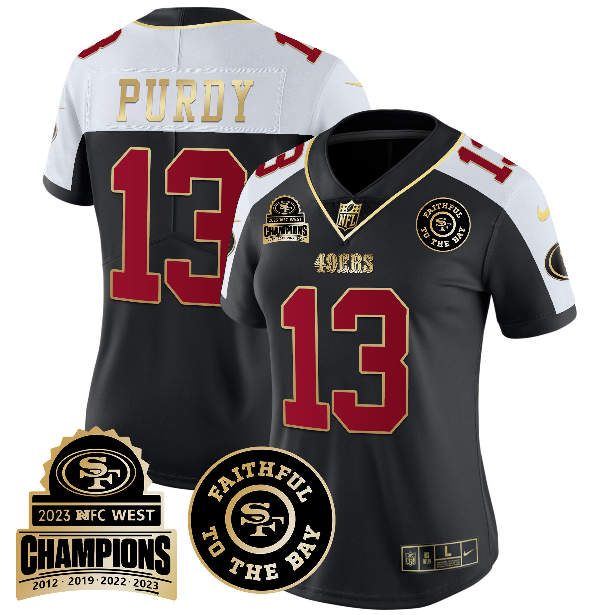 Women’s 49ers 2023 NFC West Champions Patch Vapor Jersey V3 – All Stitched