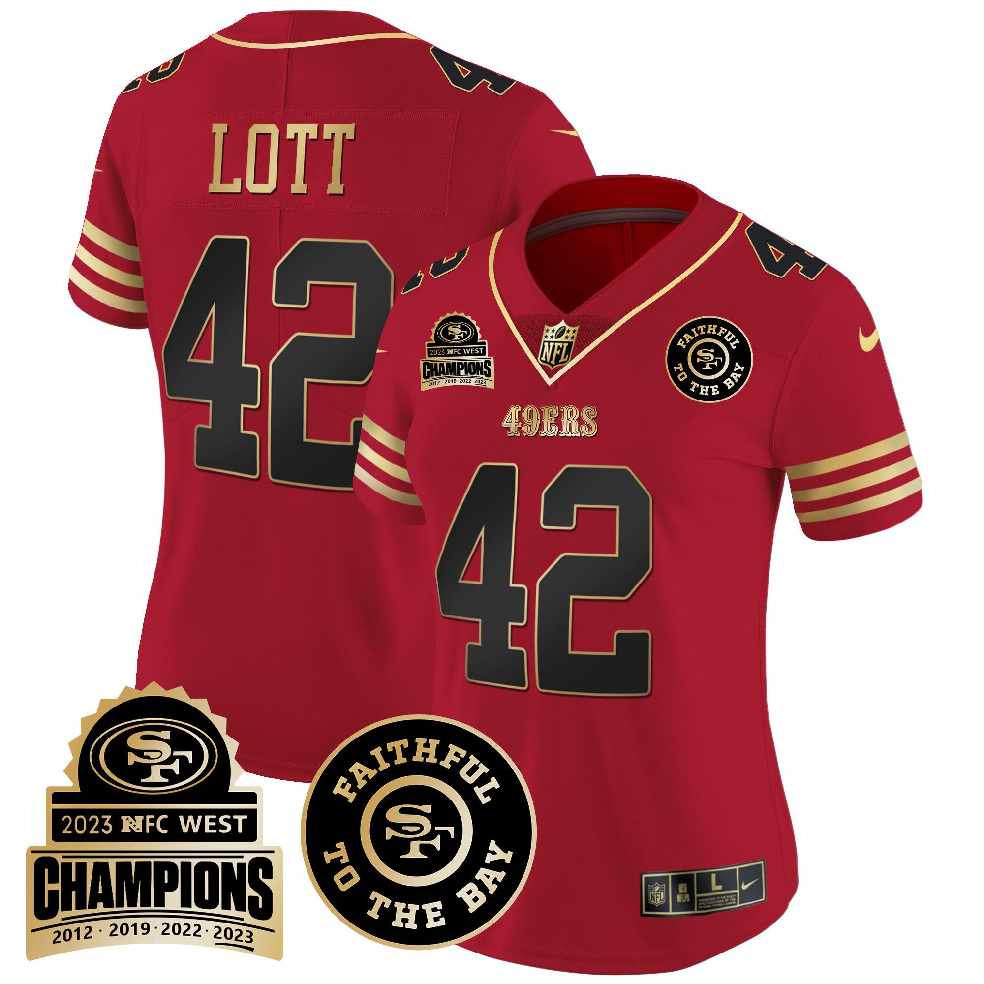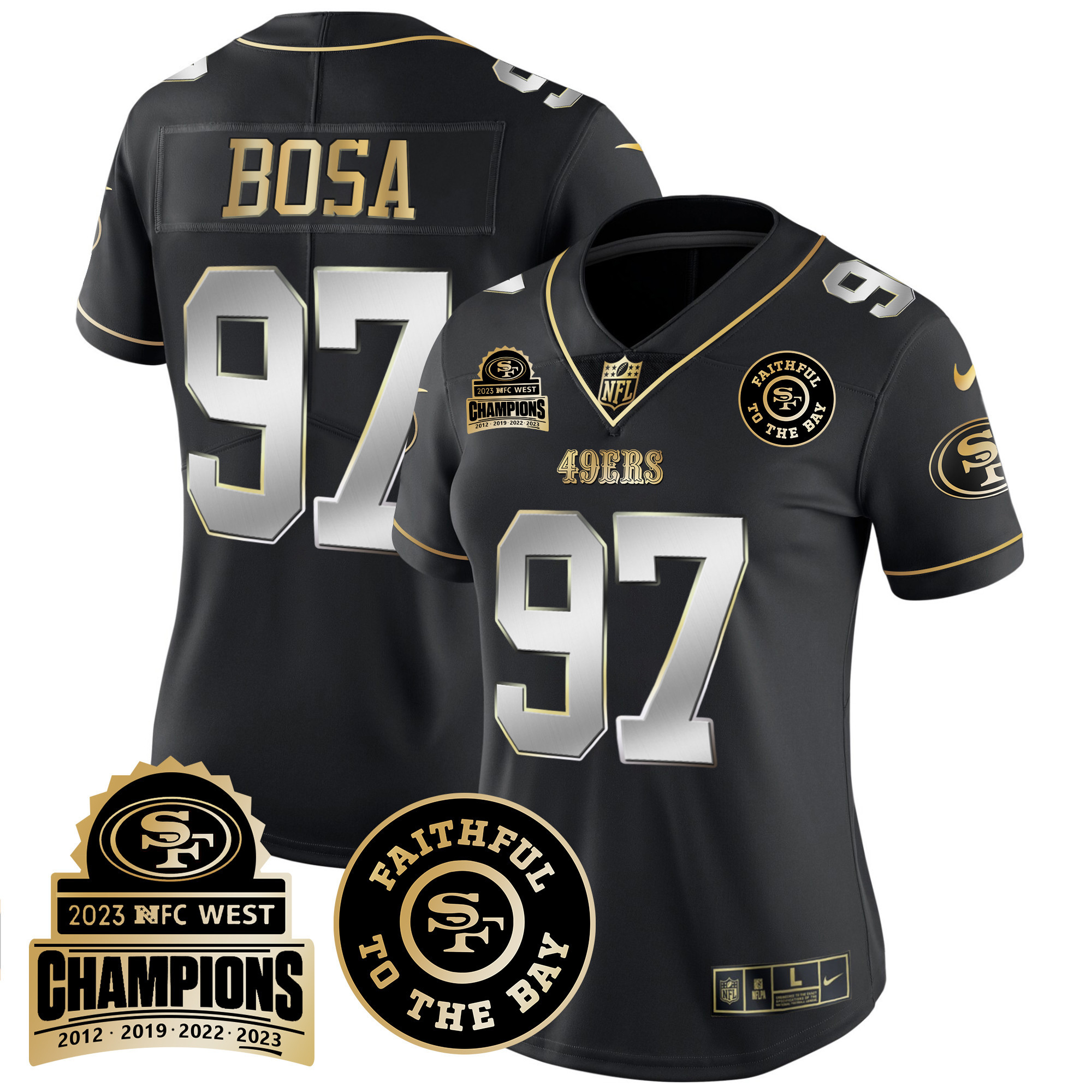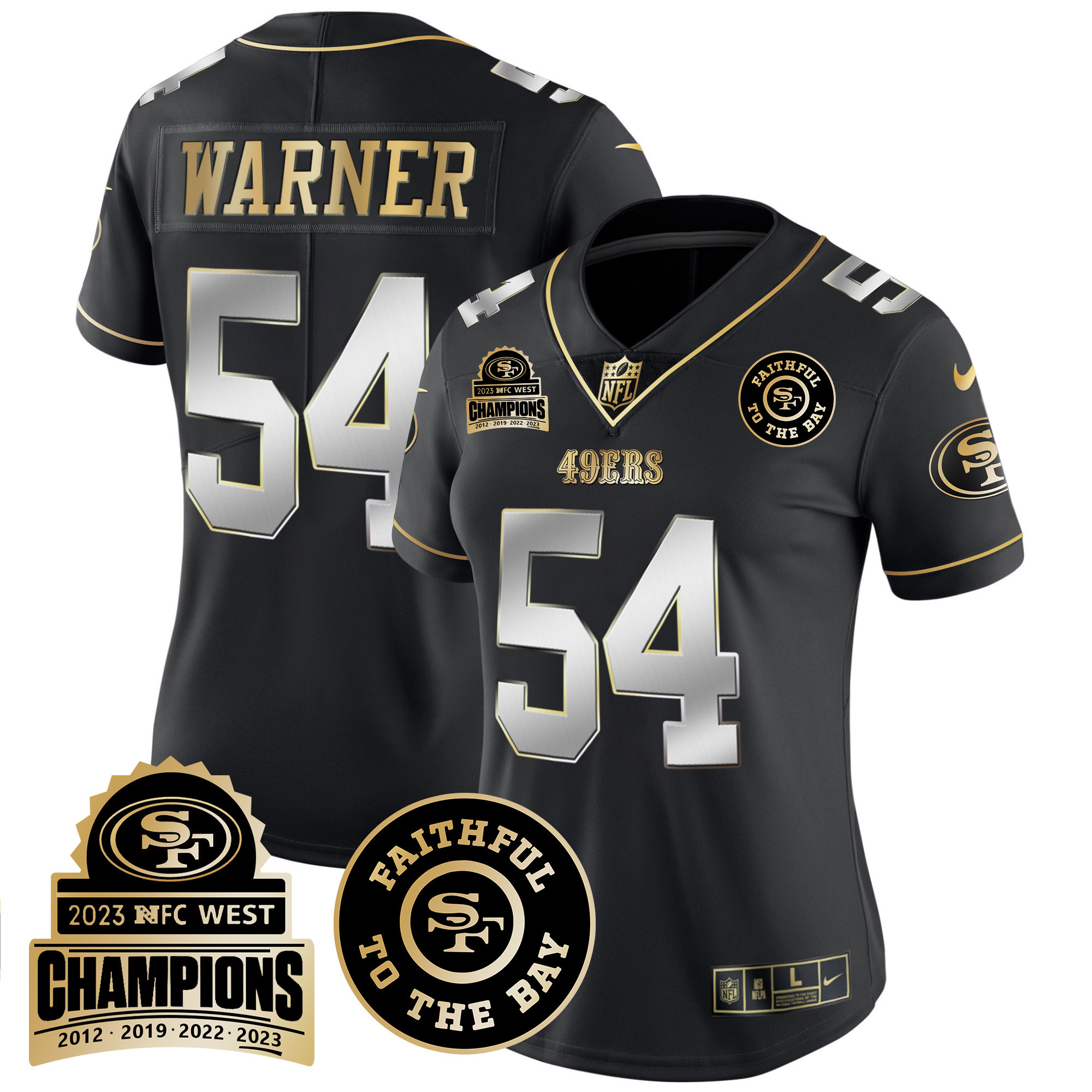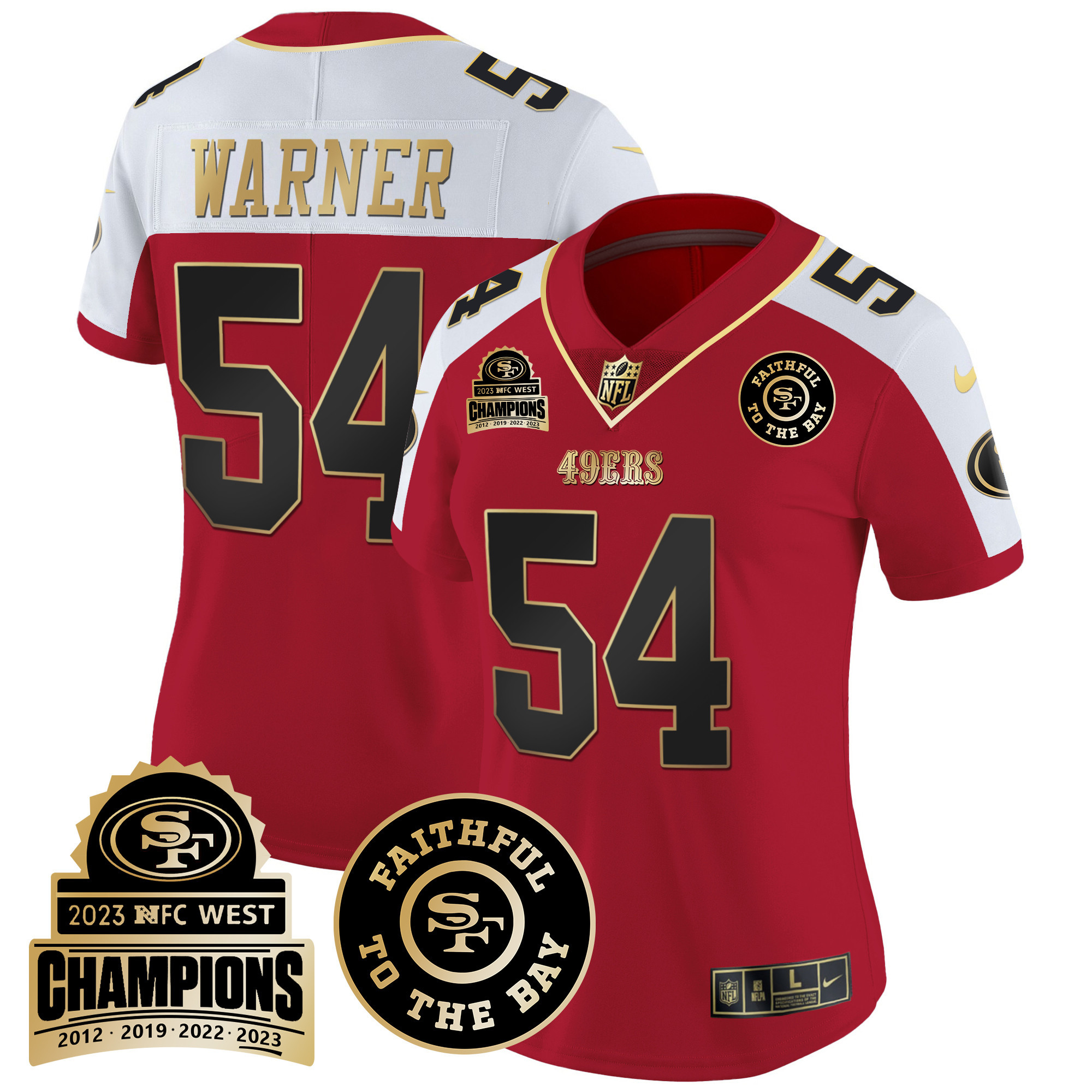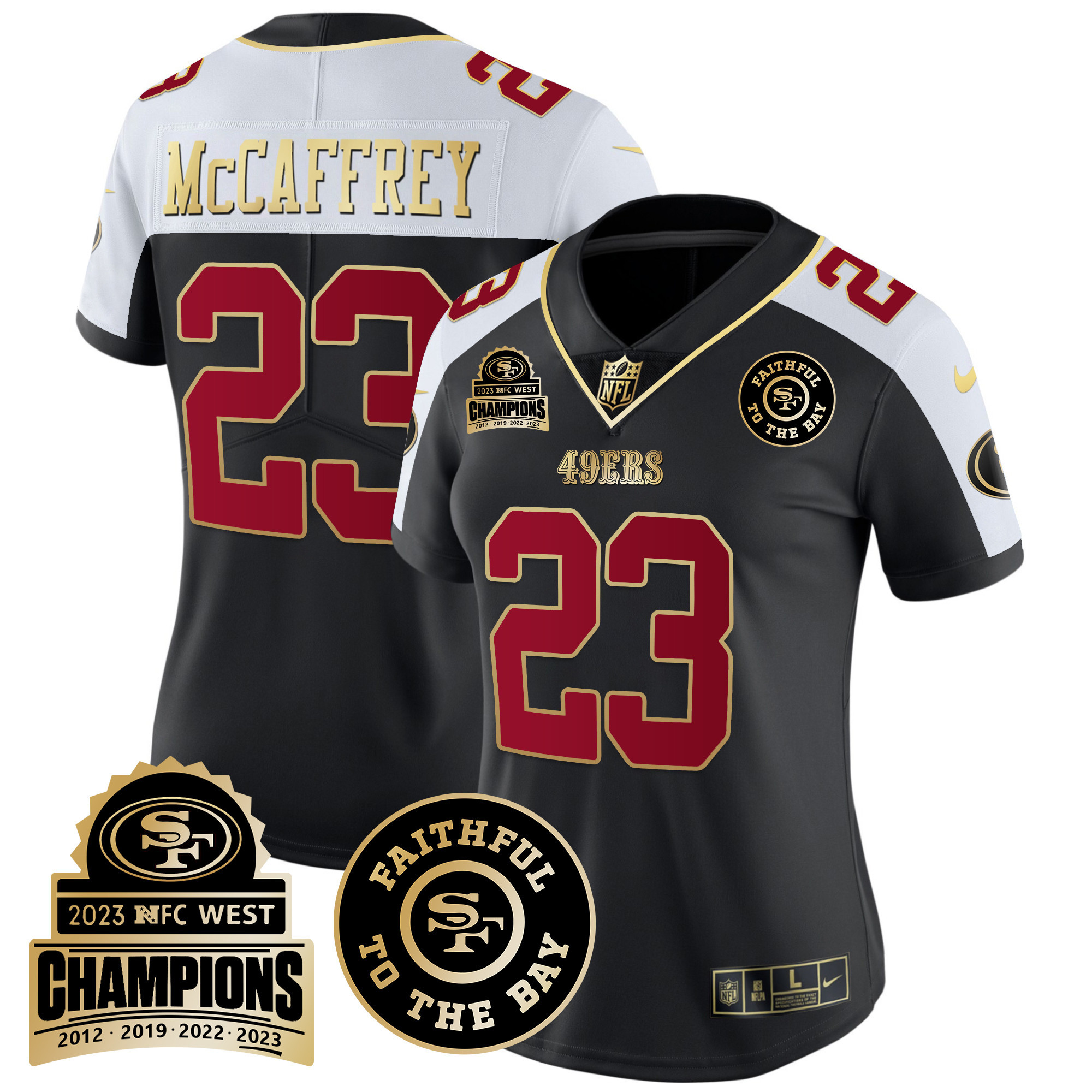 Women’s 49ers 2023 NFC West Champions Patch Vapor Jersey V3 – All Stitched
