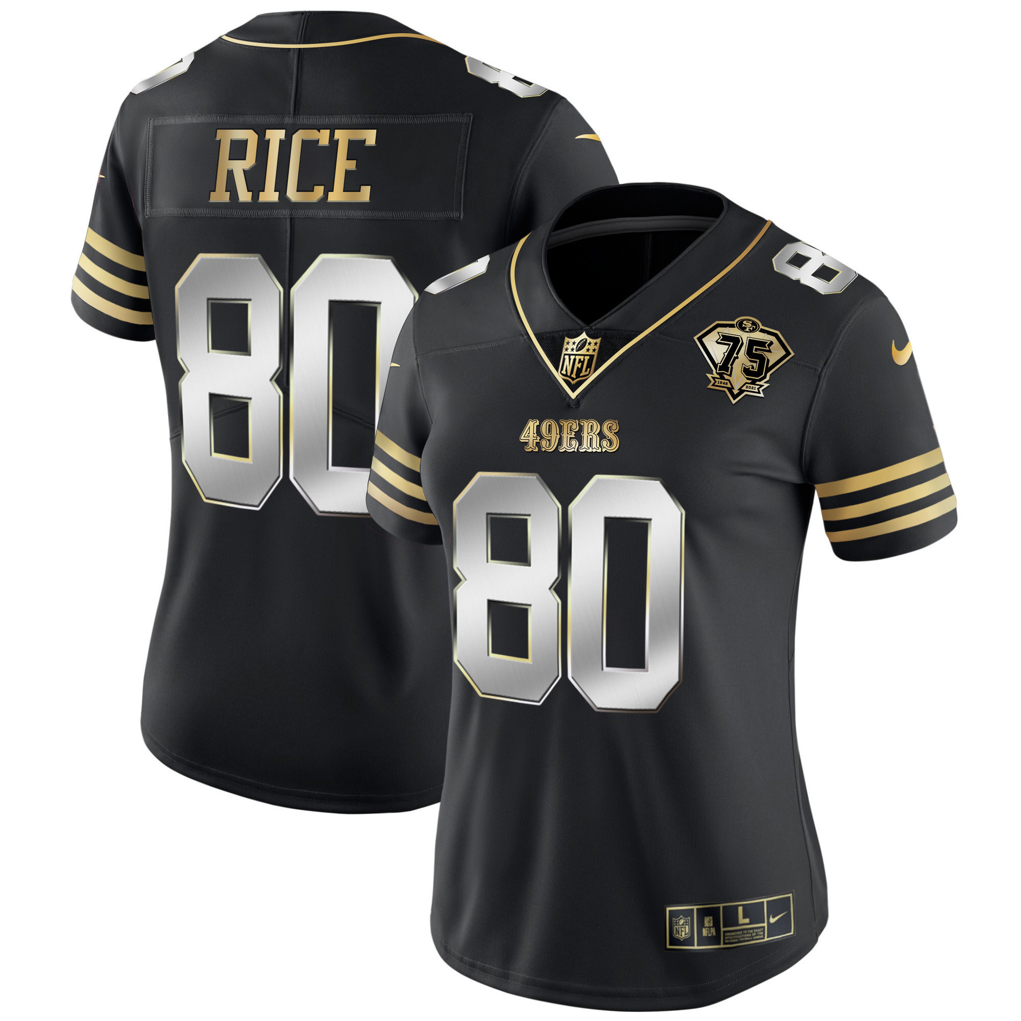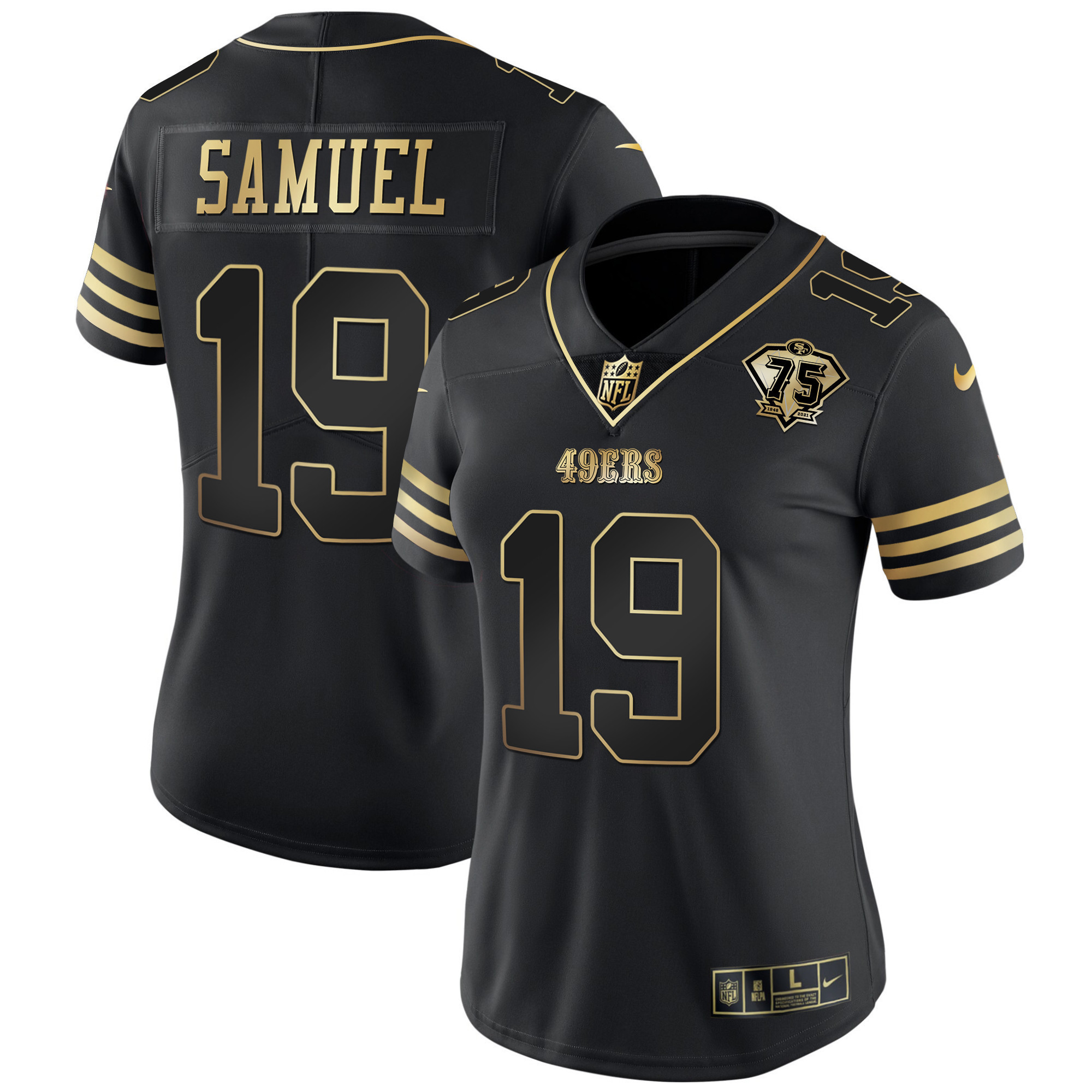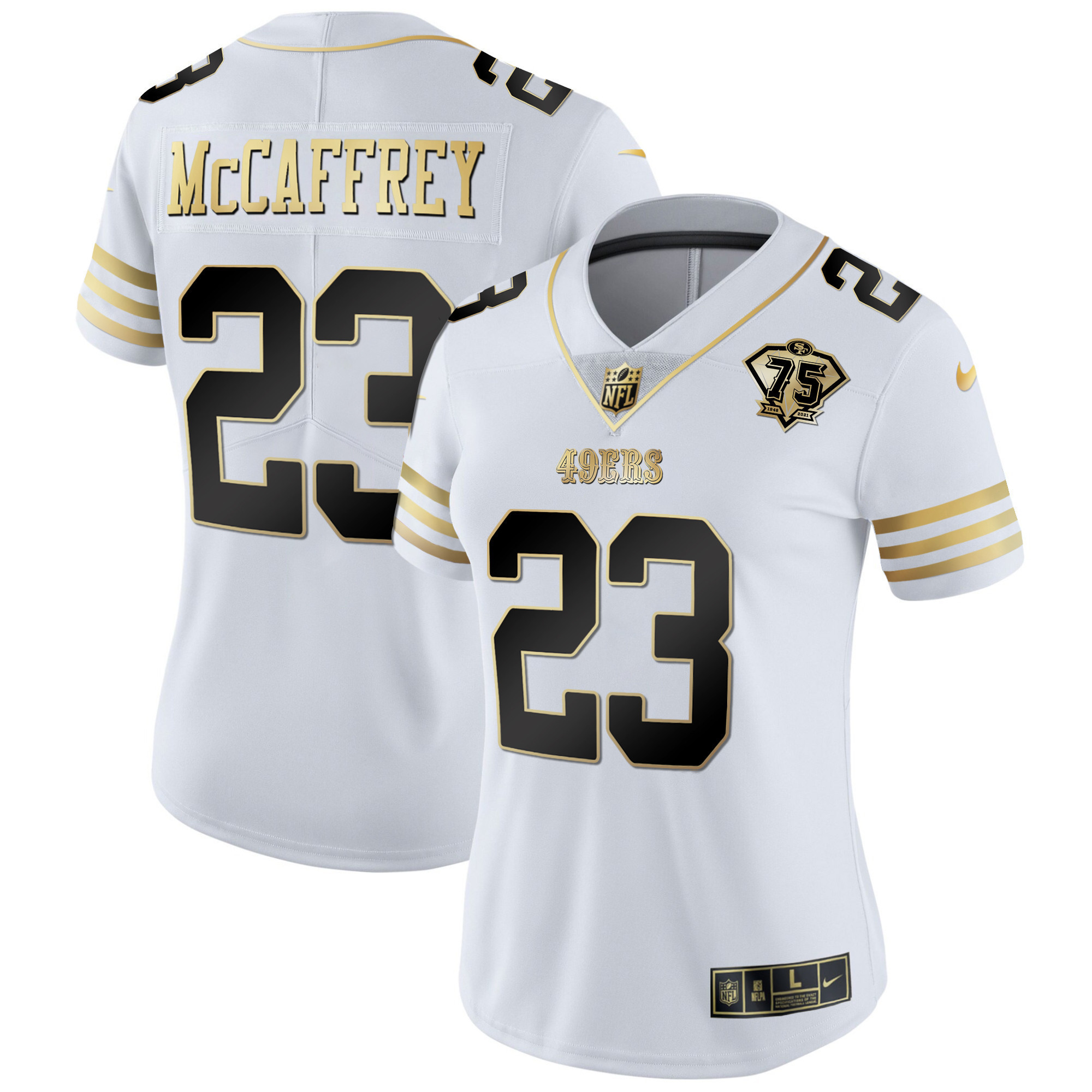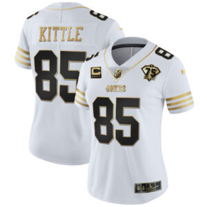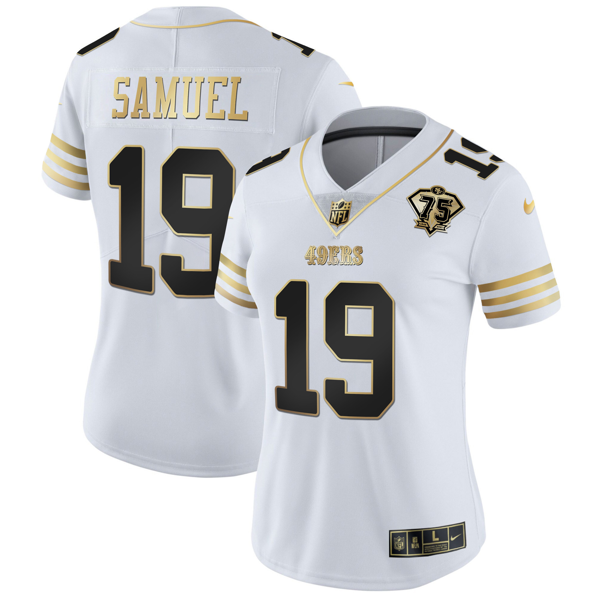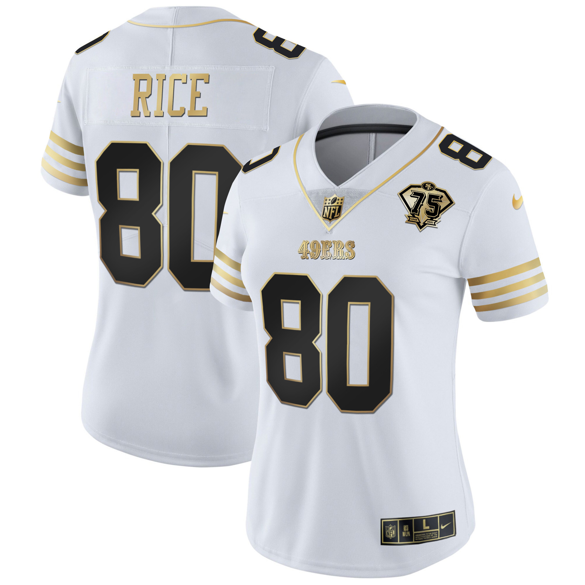 Women’s 49ers 75th Anniversary Patch Vapor Gold Jersey – All Stitched