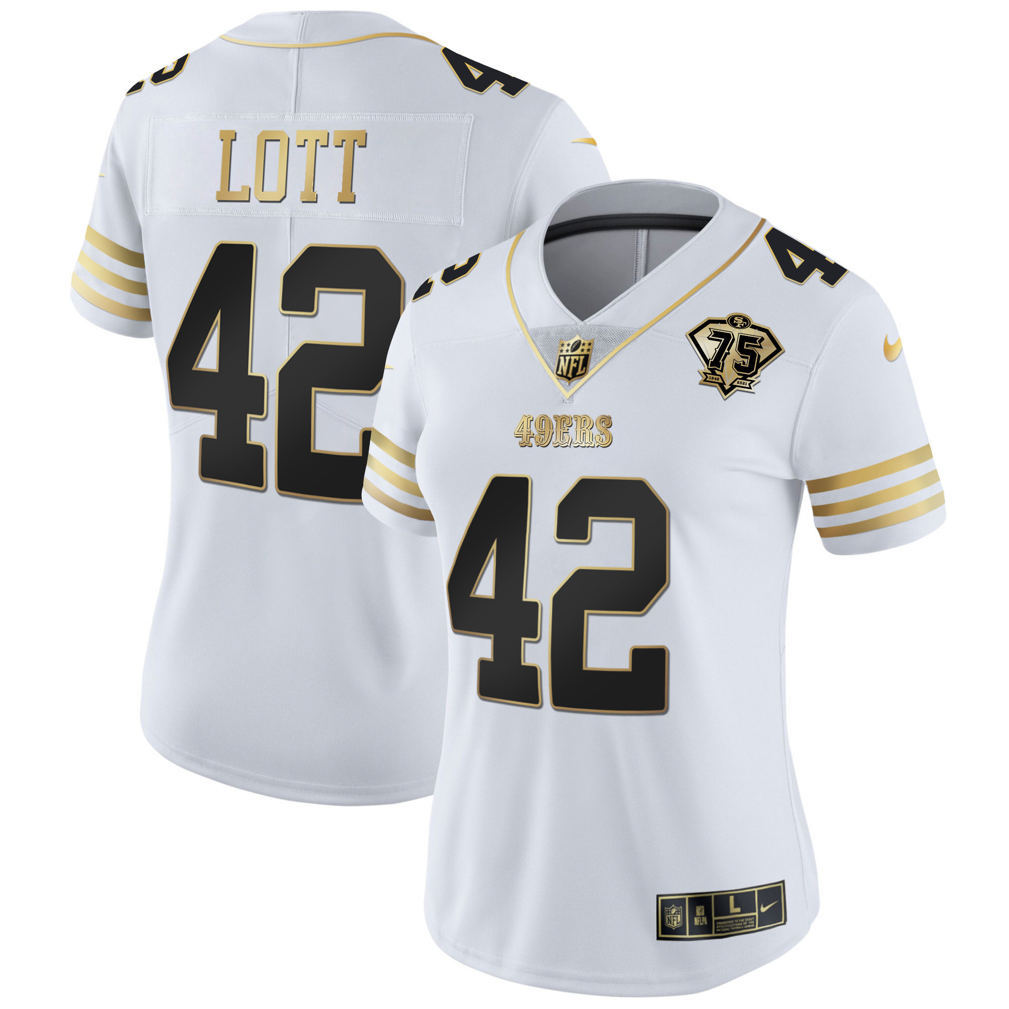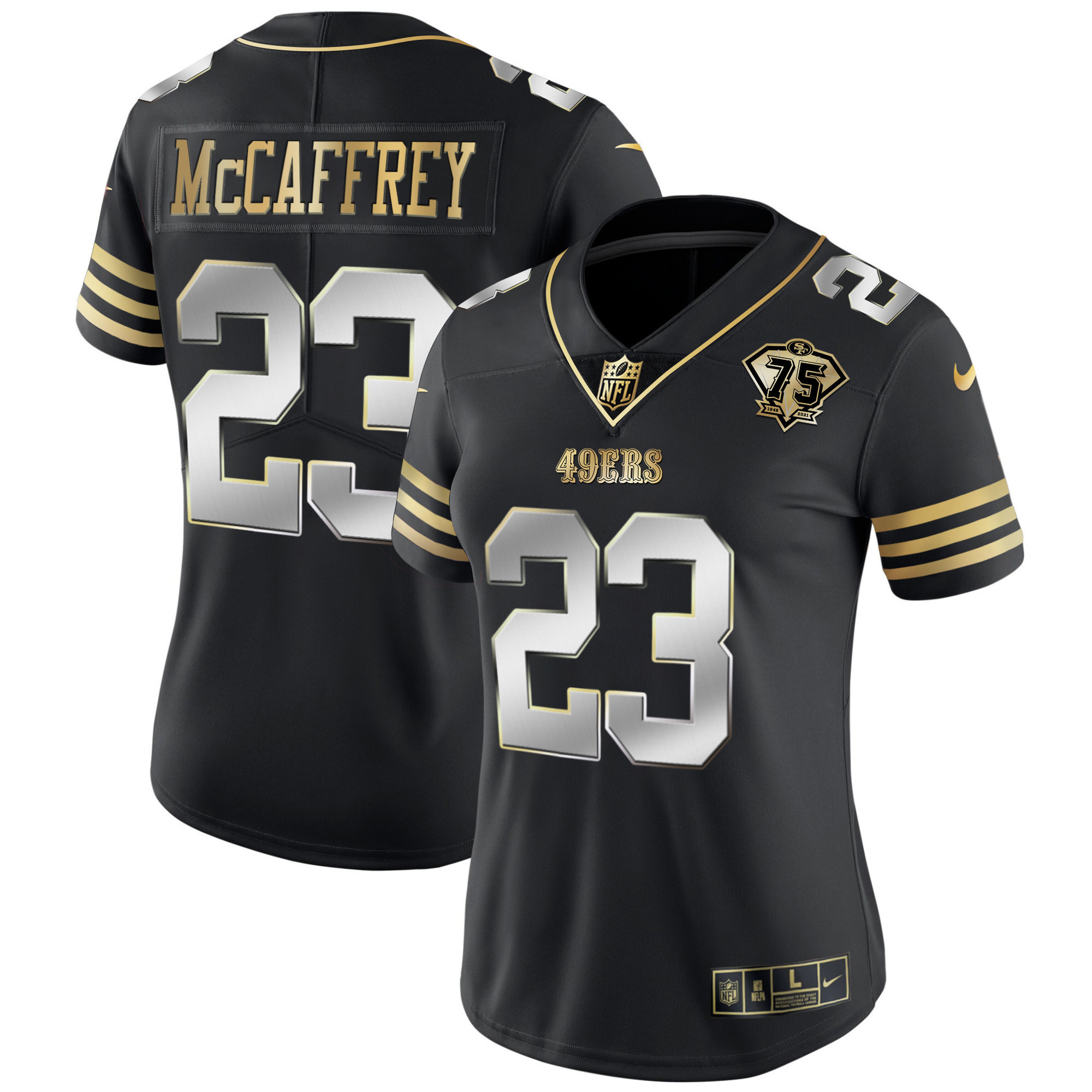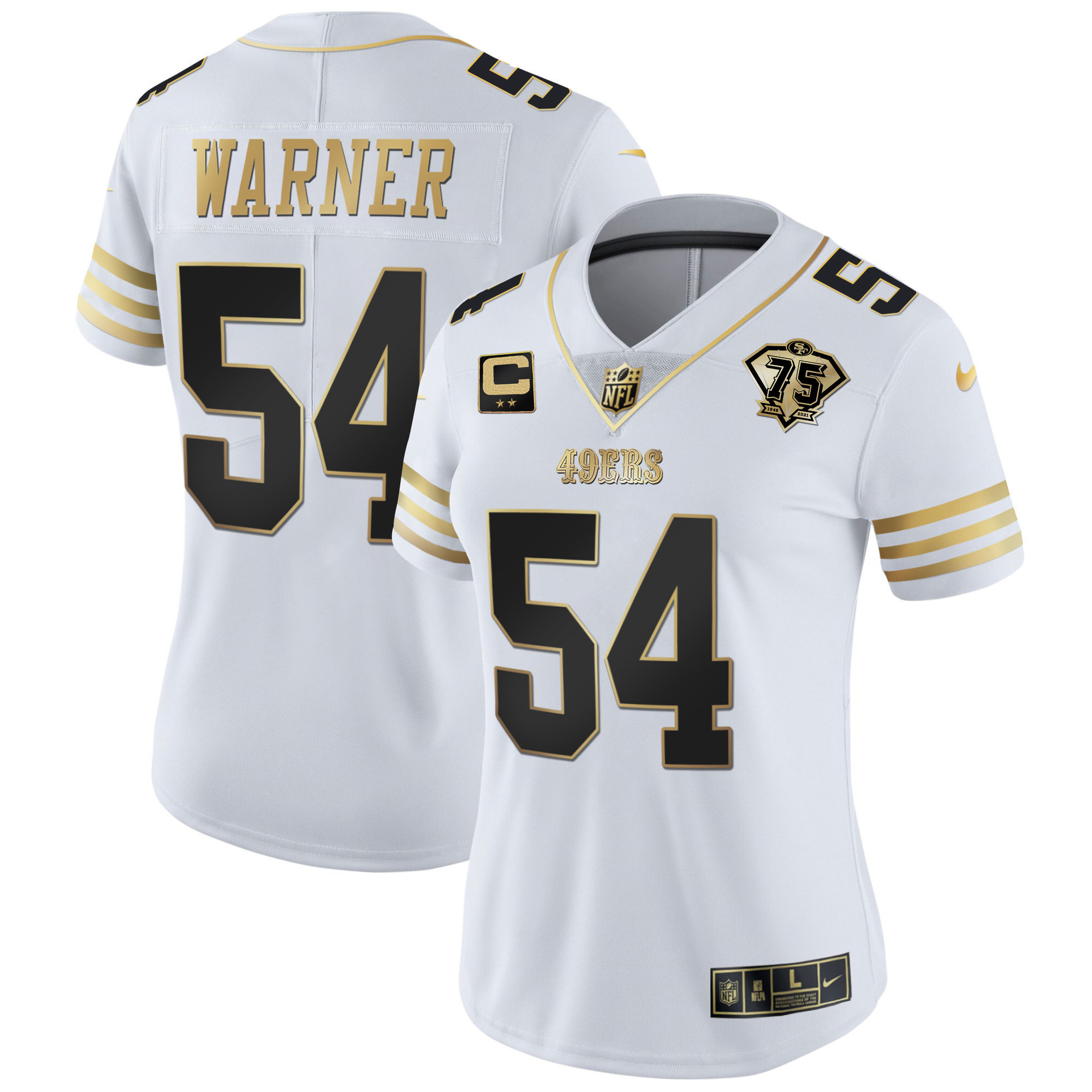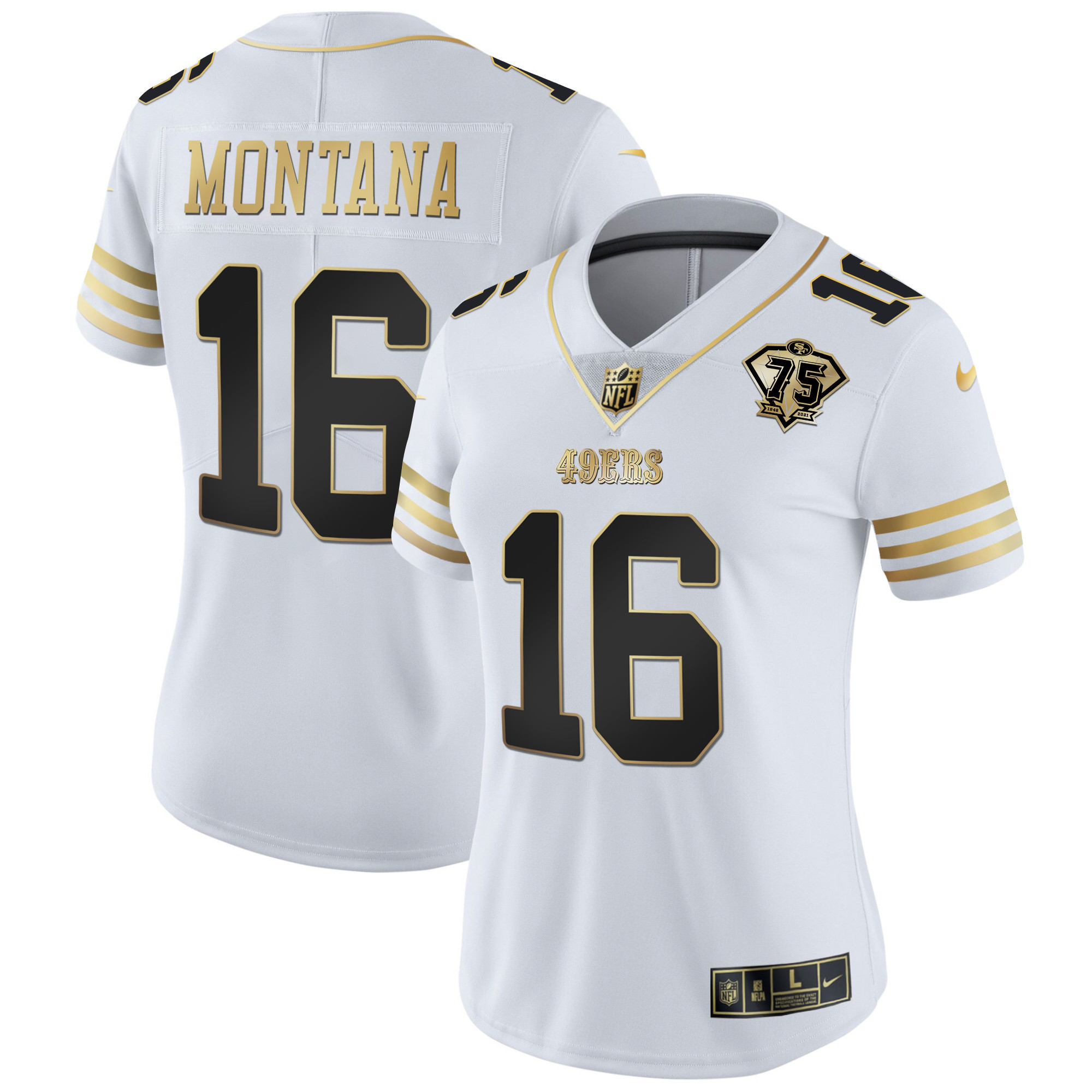 Women’s 49ers 75th Anniversary Patch Vapor Gold Jersey – All Stitched