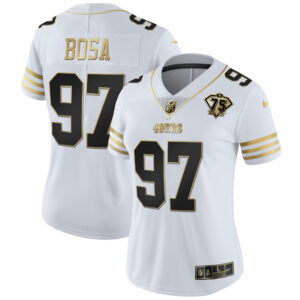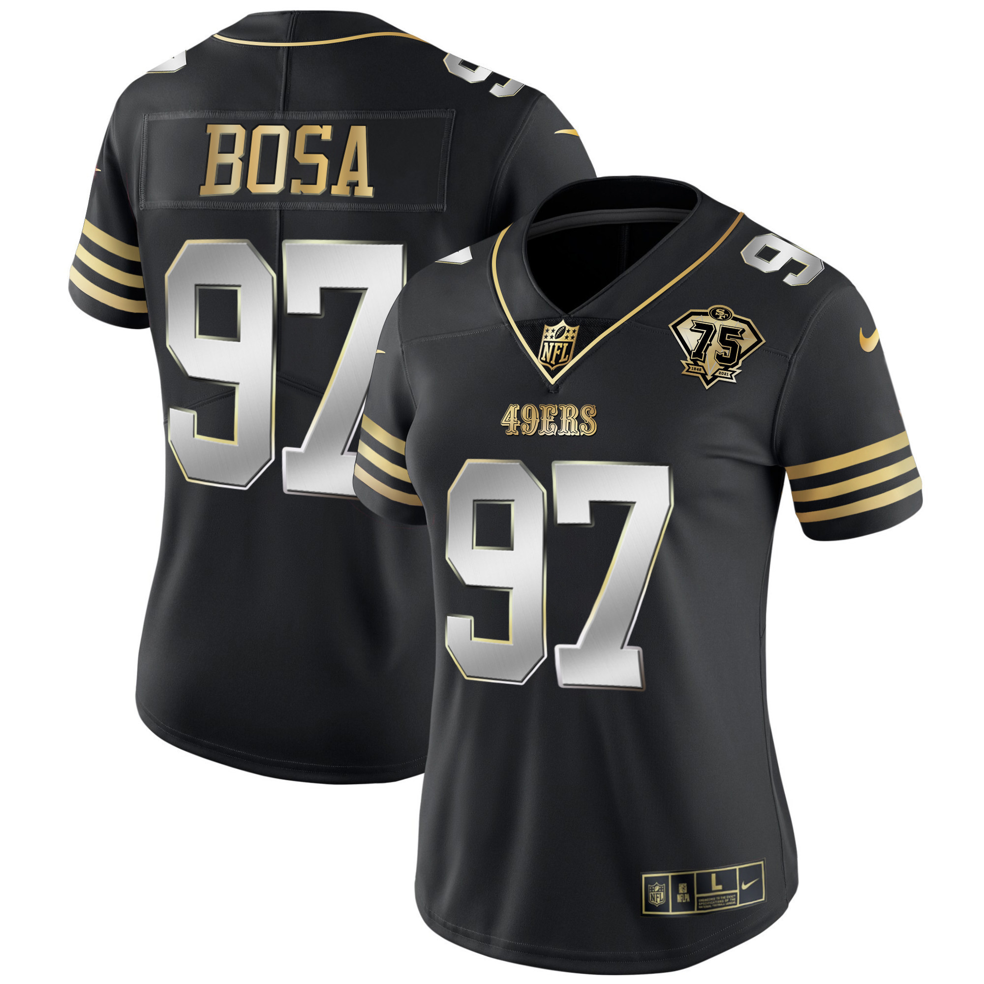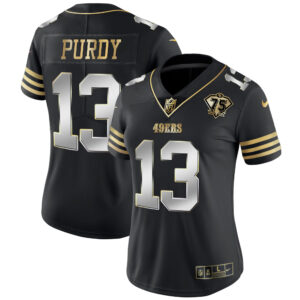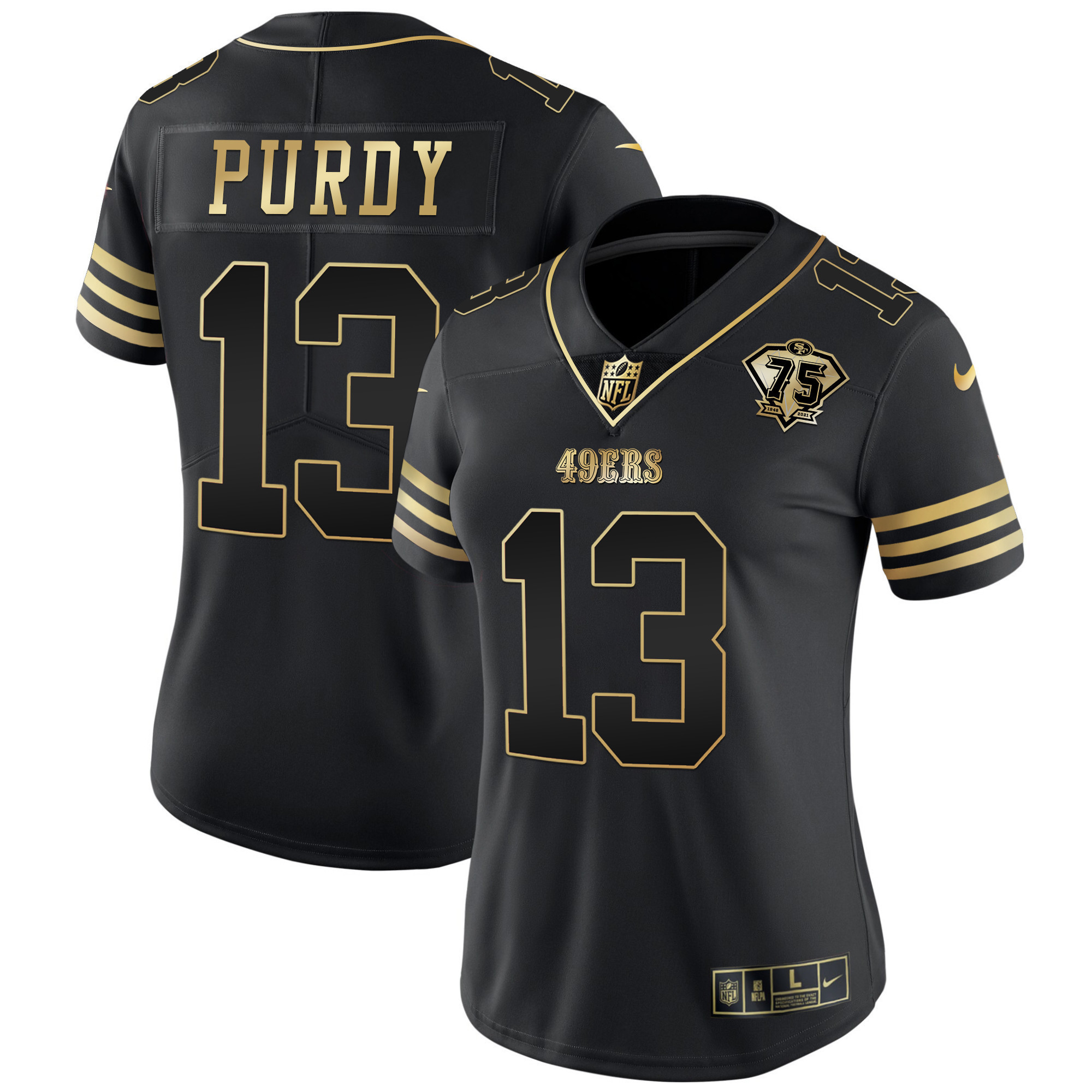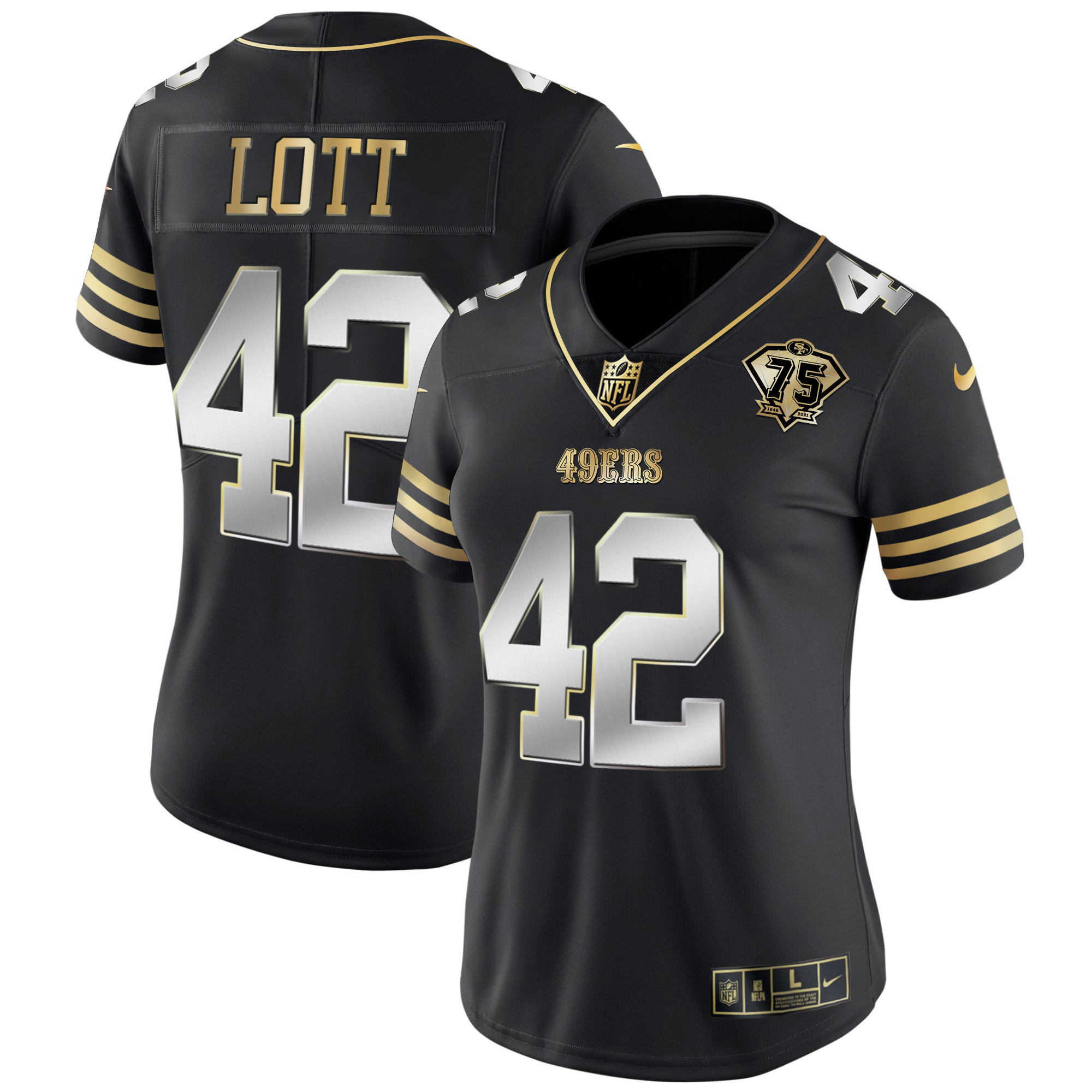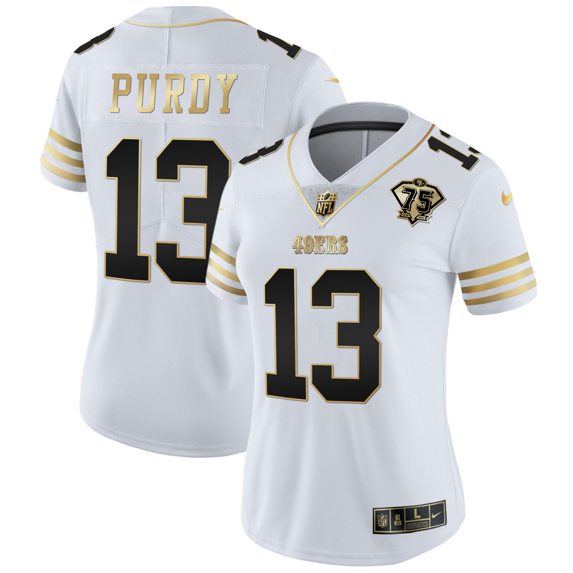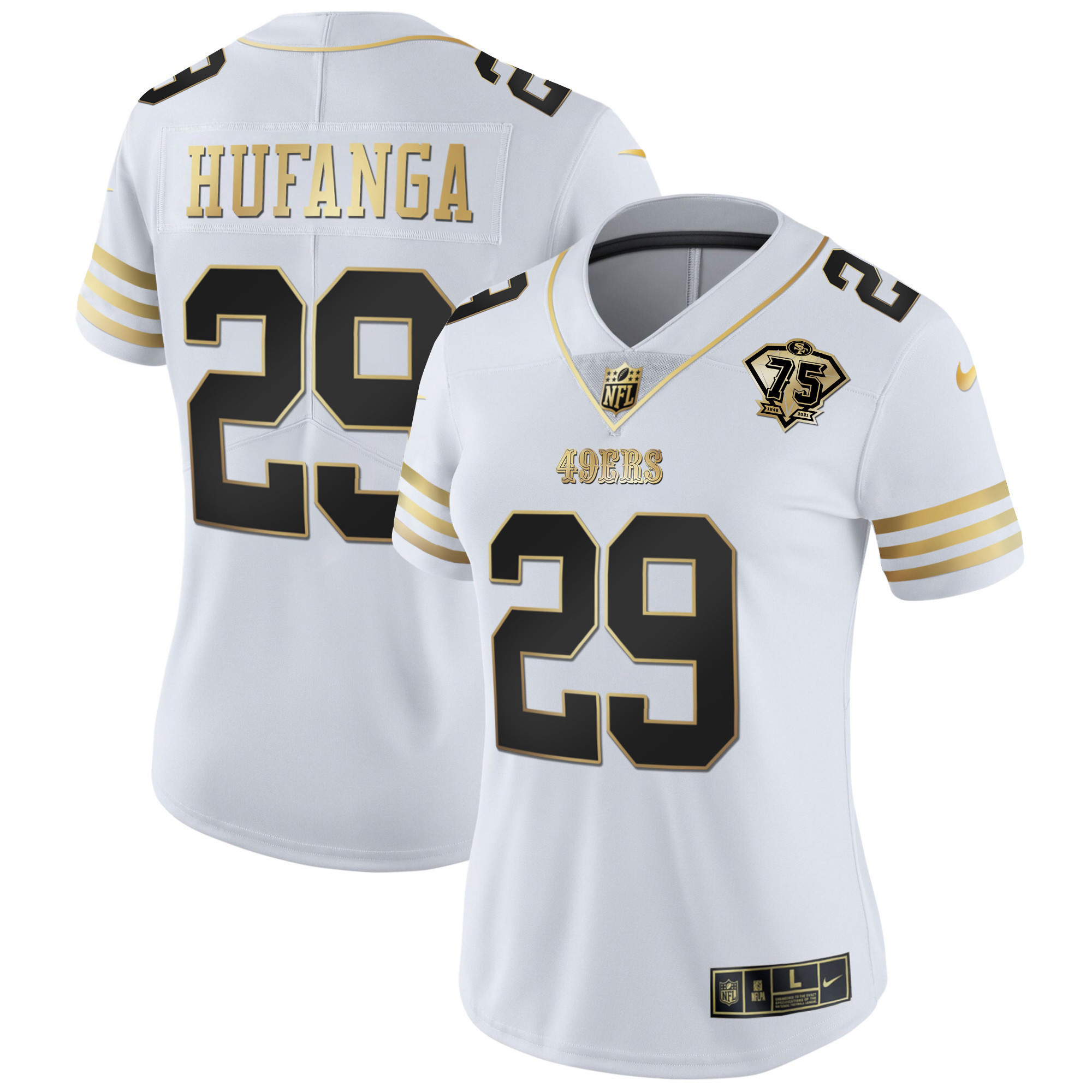 Women’s 49ers 75th Anniversary Patch Vapor Gold Jersey – All Stitched