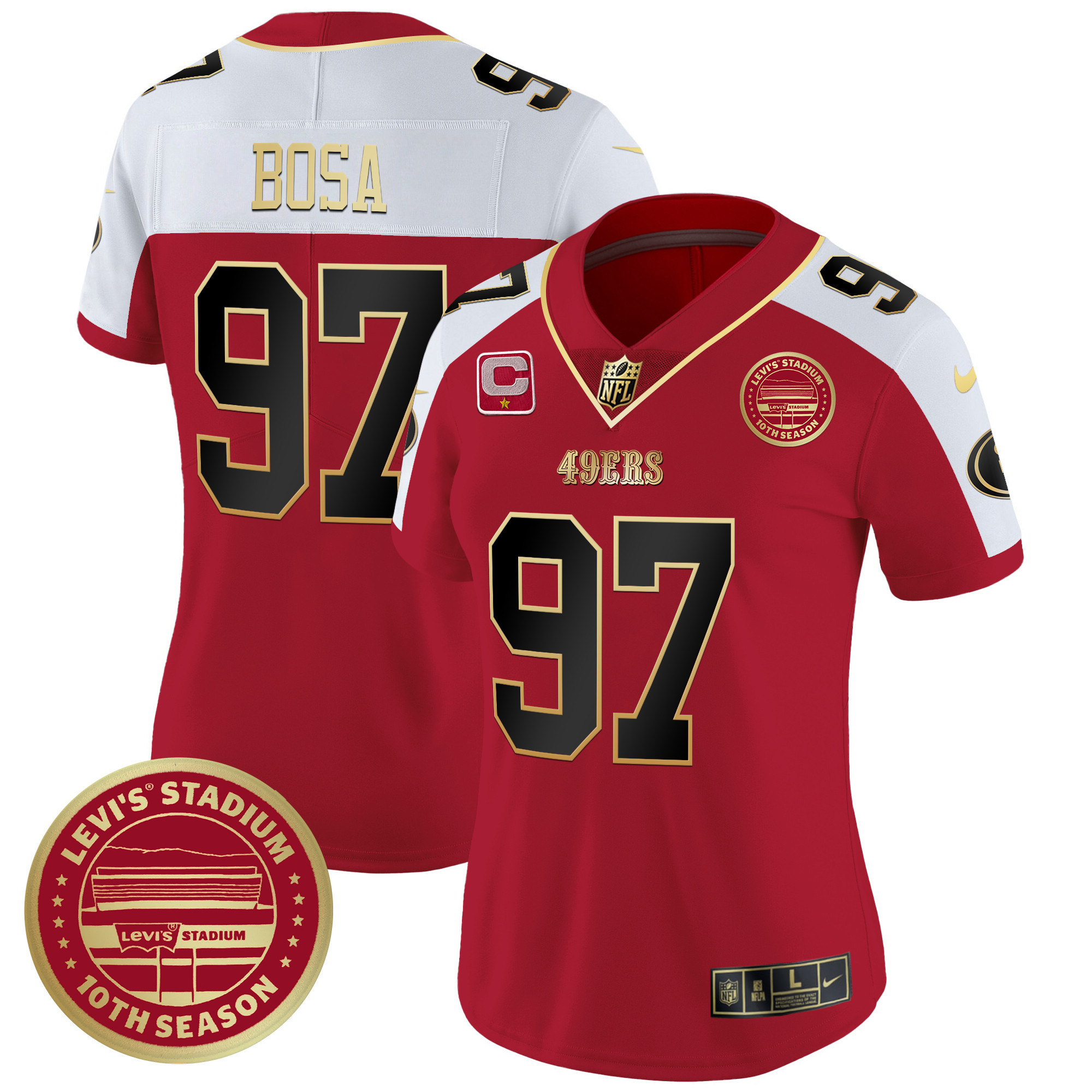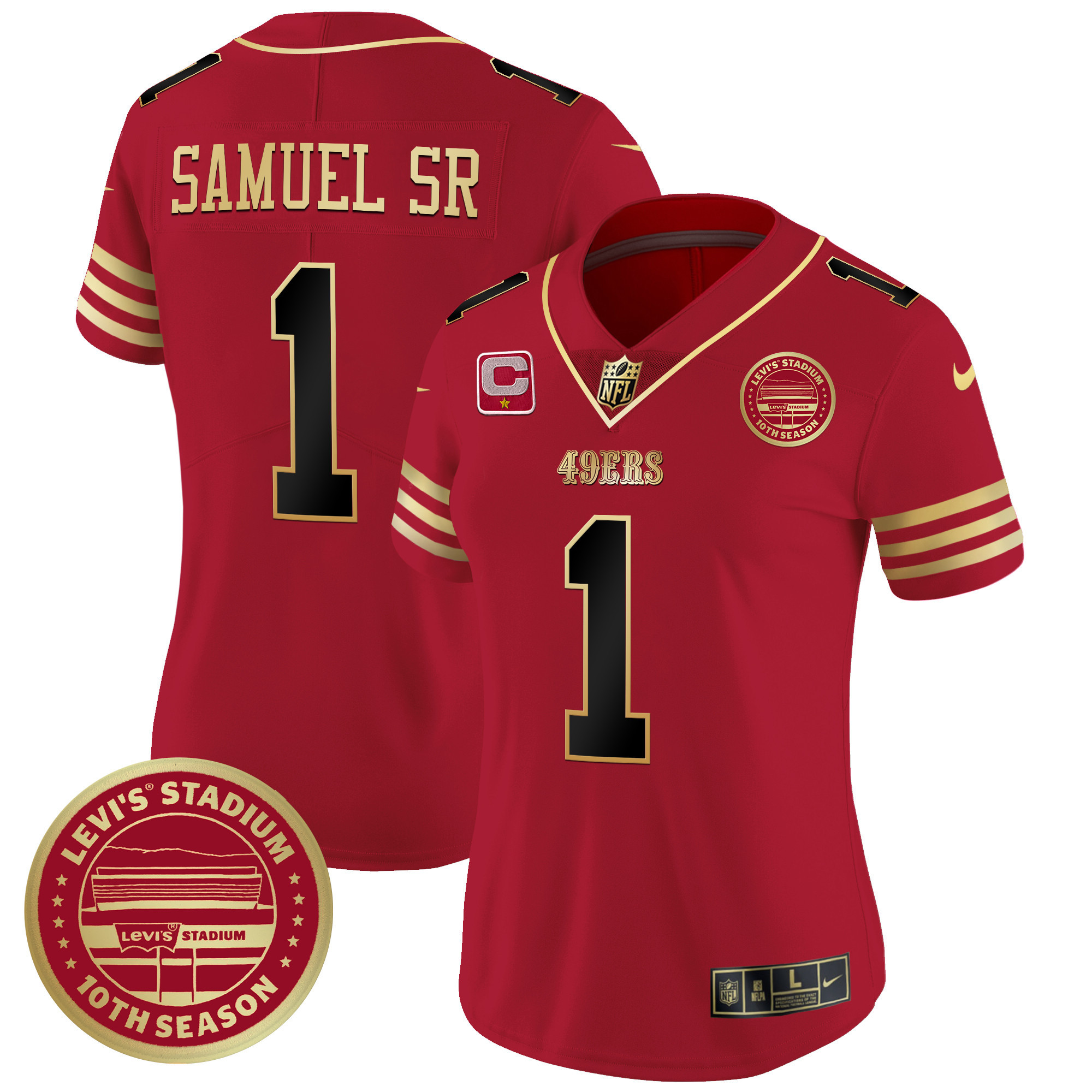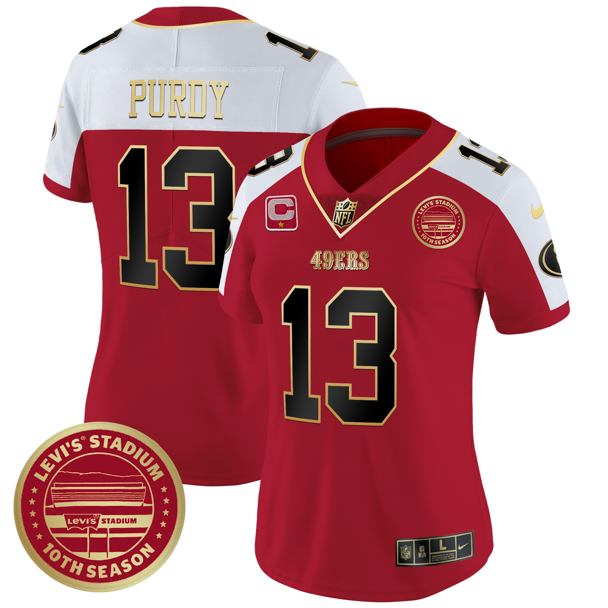 Women’s 49ers Levi’S Stadium 10th Season Patch Vapor Limited Jersey – All Stitched