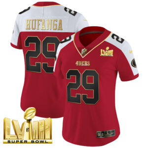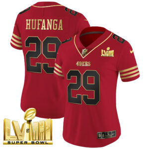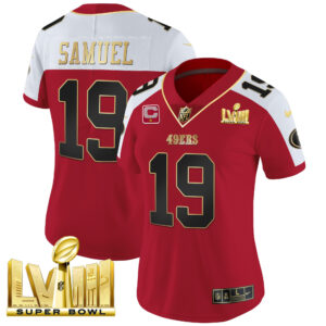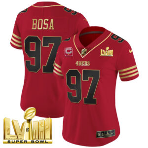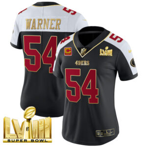 Women’s 49ers Super Bowl LVIII Gold Patch Vapor Jersey – All Stitched