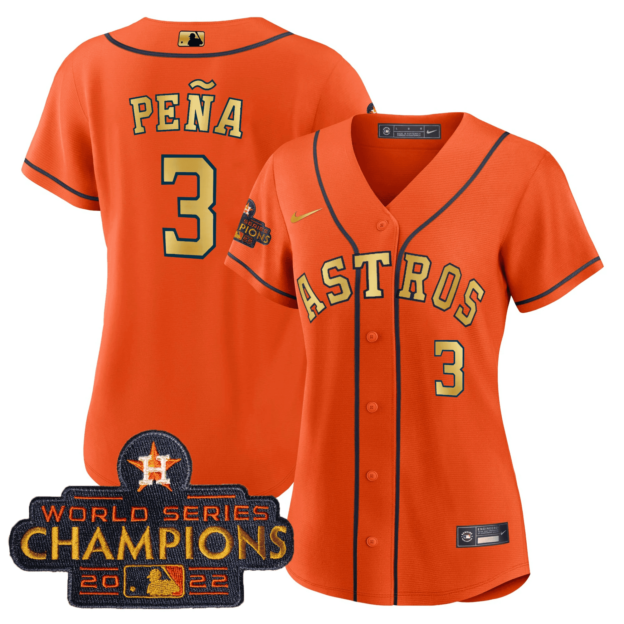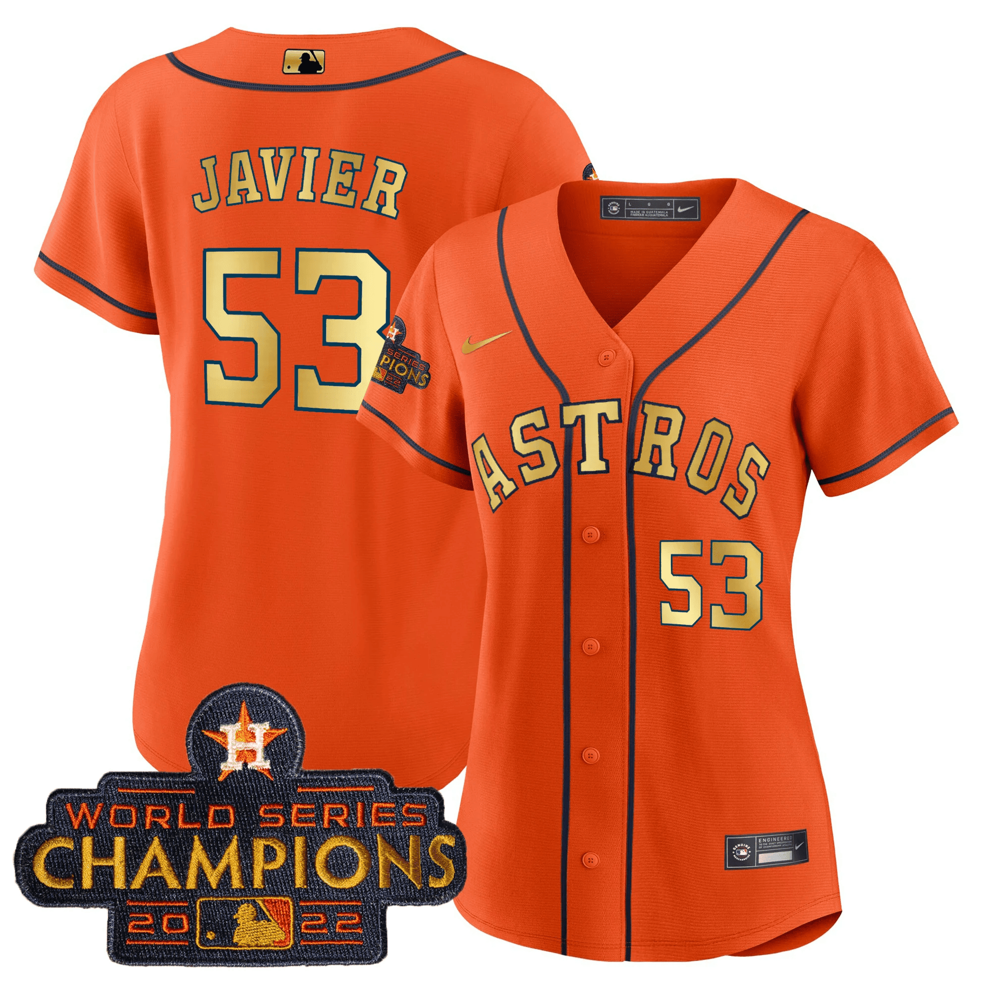 Women’s Astros 2023 Champions Orange Gold Jersey – All Stitched