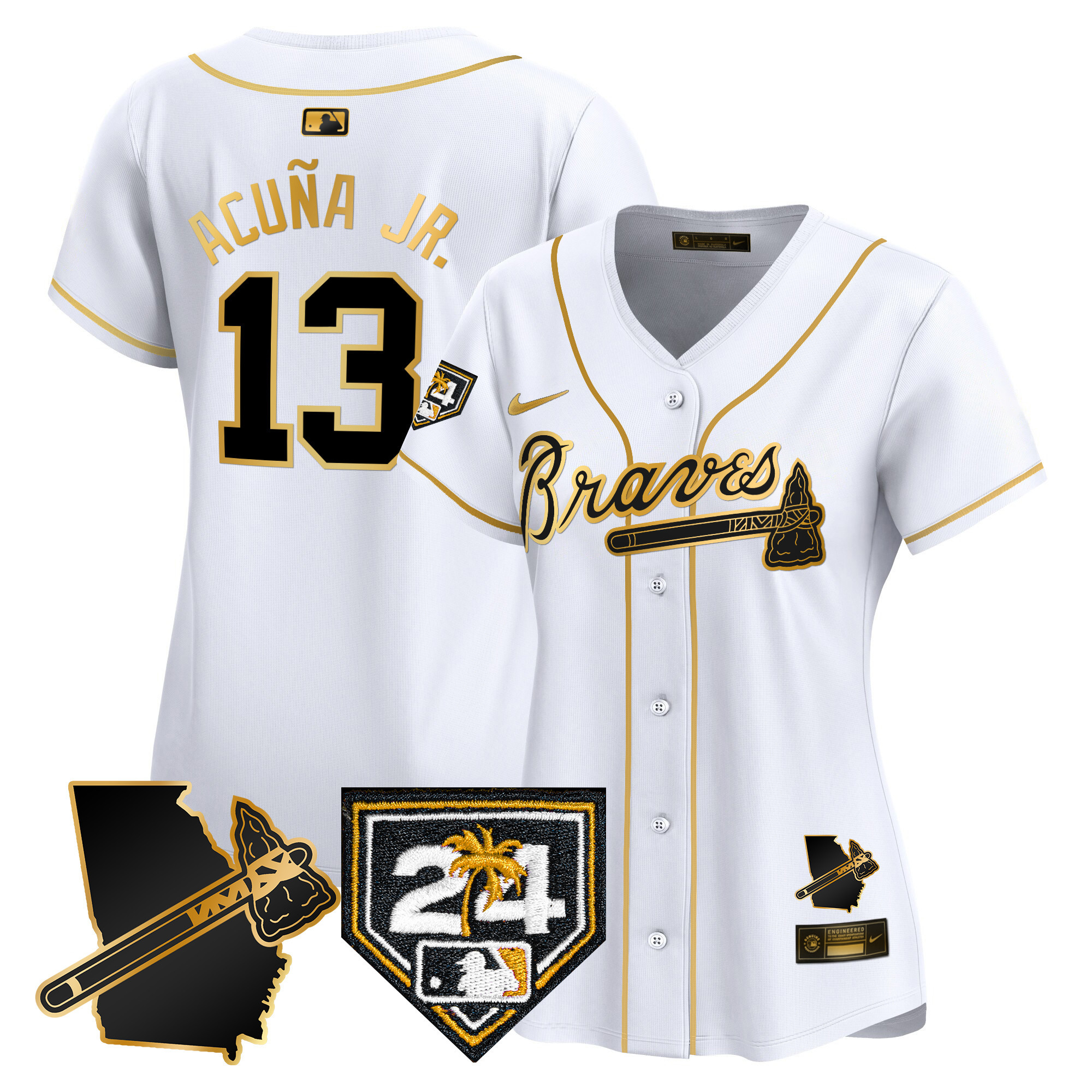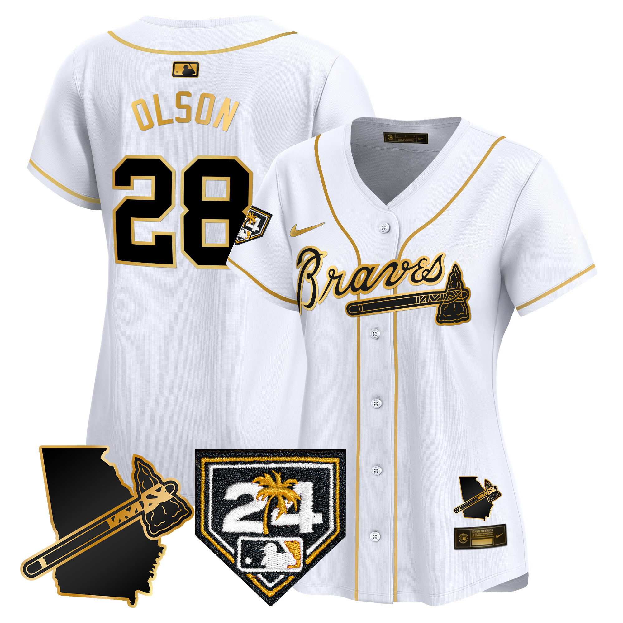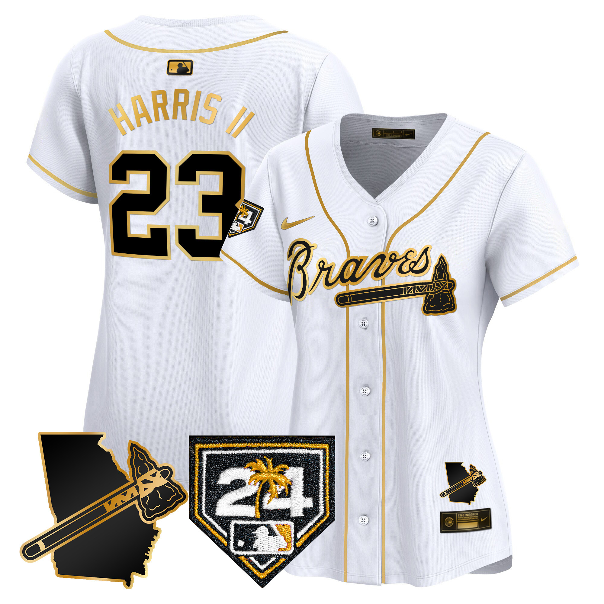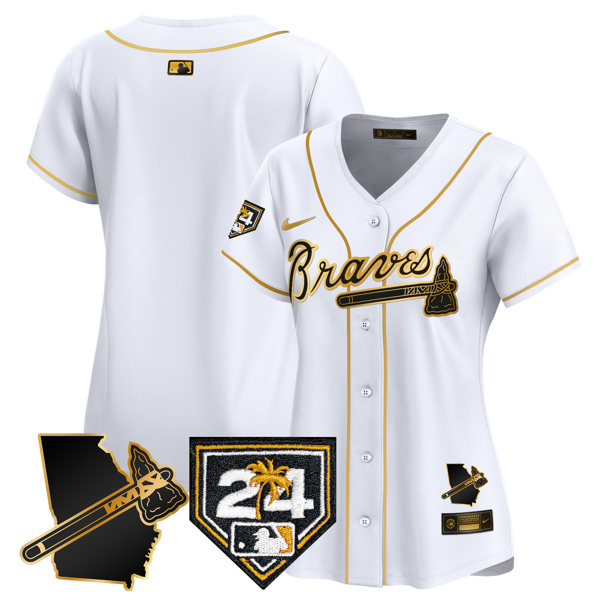 Women’s Atlanta Braves 2024 Spring Training & Georgia Patch Vapor Premier Limited Jersey – All Stitched