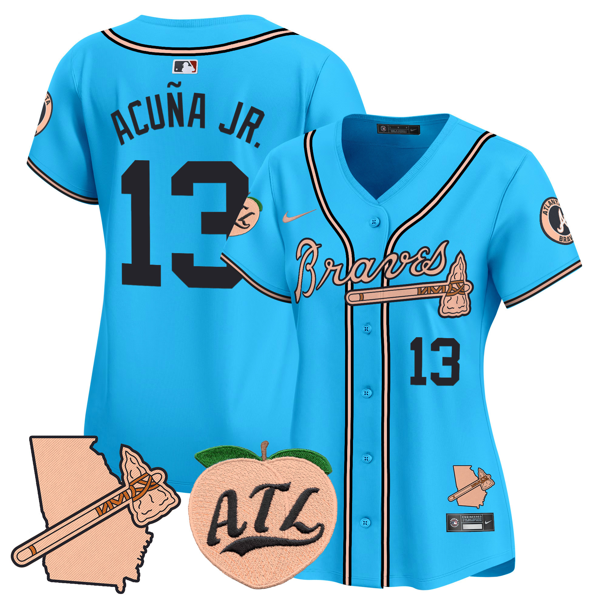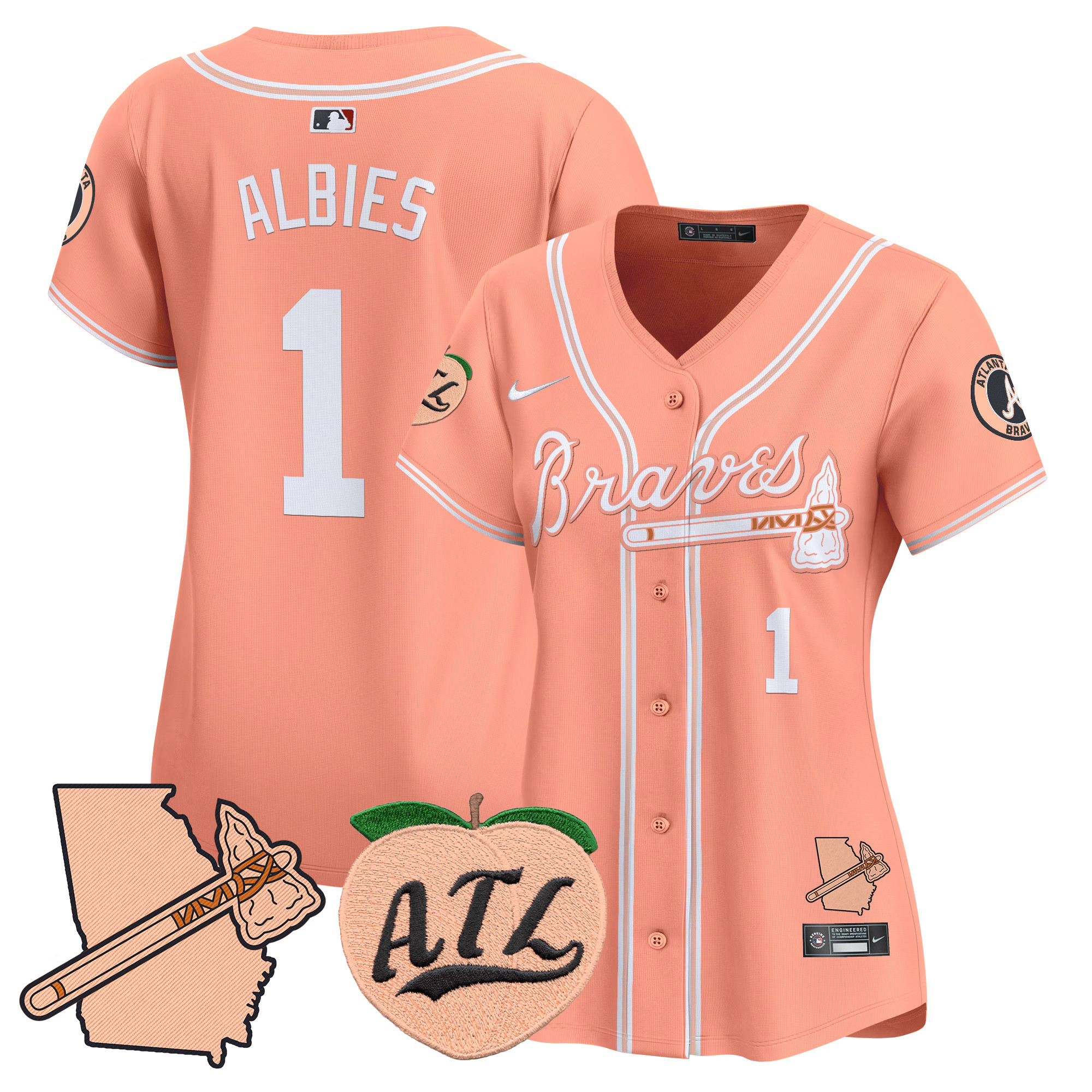 Women’s Atlanta Braves Peach Vapor Premier Limited Jersey – All Stitched