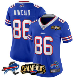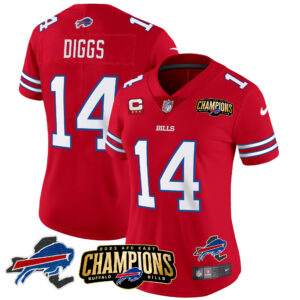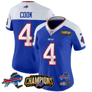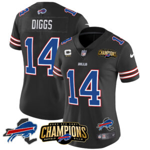 Women’s Bills 2023 AFC East Champions Patch Gold Vapor Jersey V2 – All Stitched