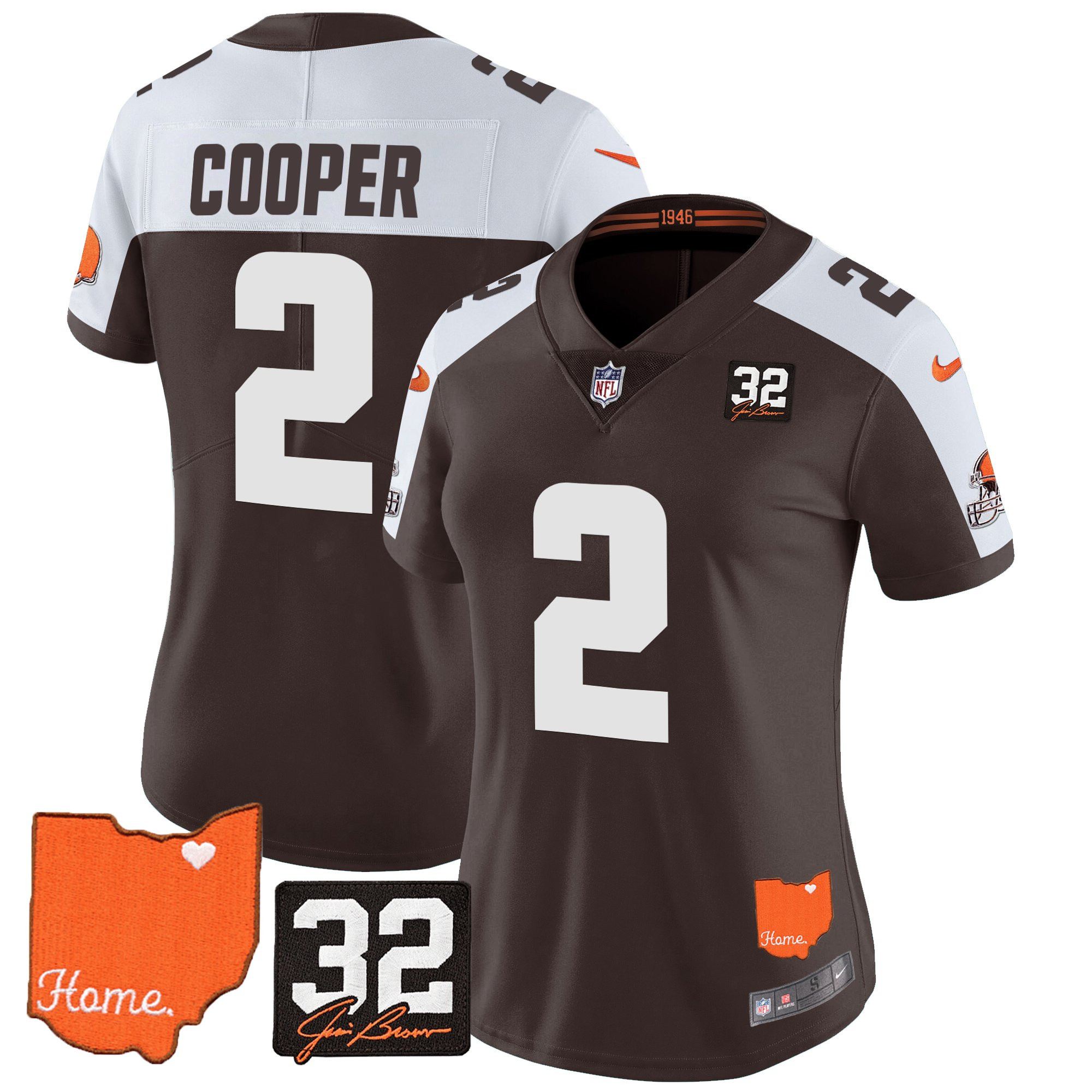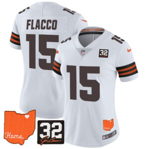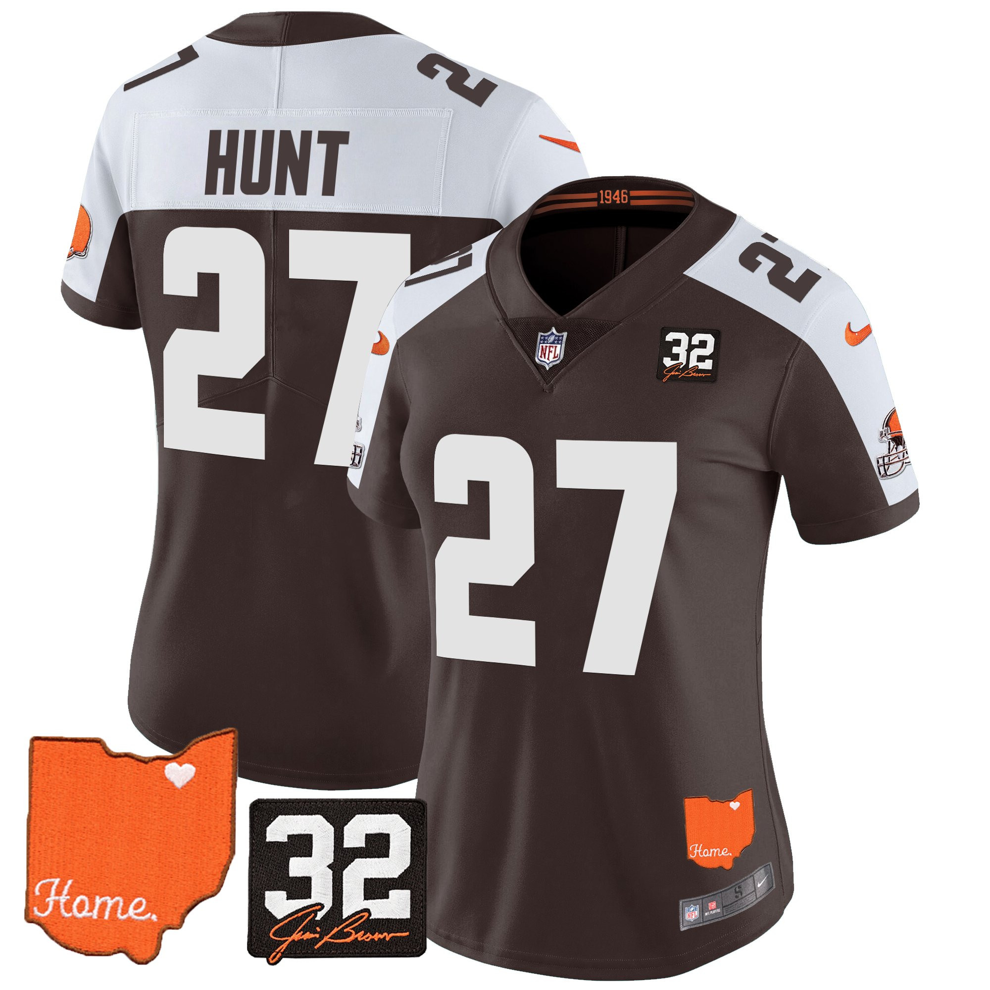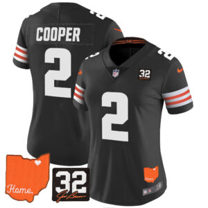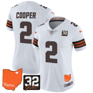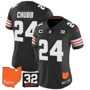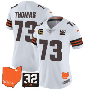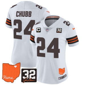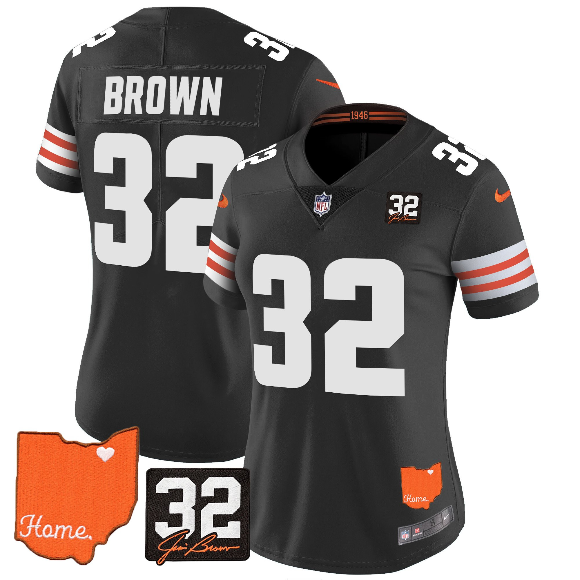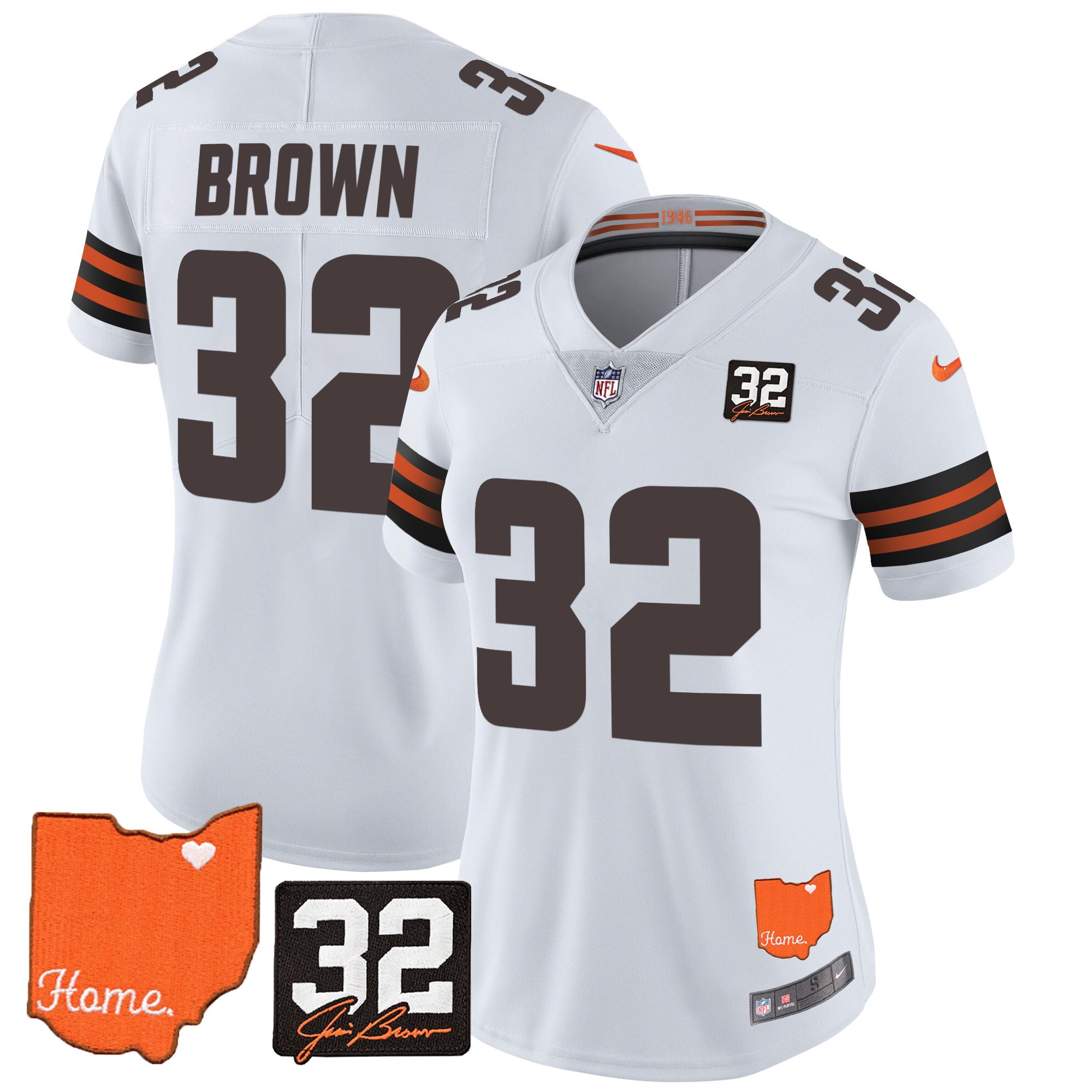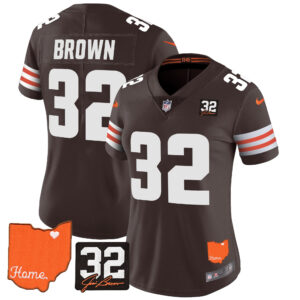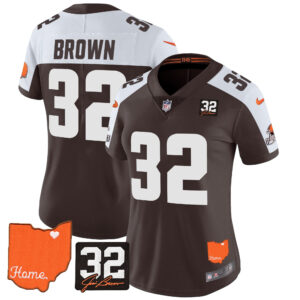 Women’s Browns #32 Jim Brown Memorial & Home Patch Vapor Limited Jersey – All Stitched
