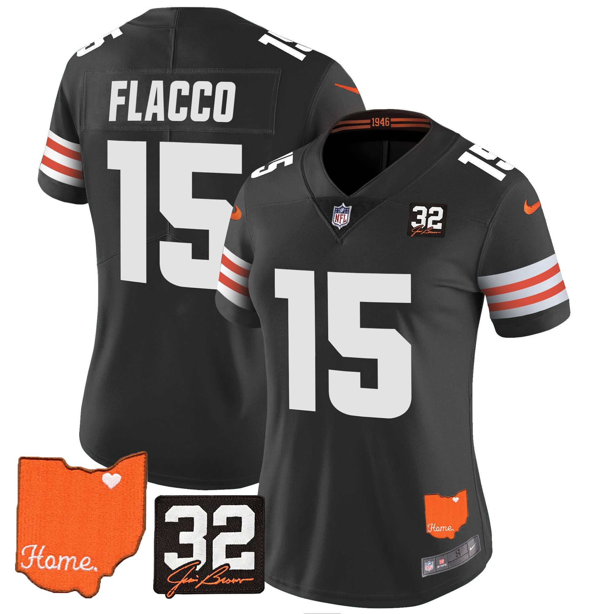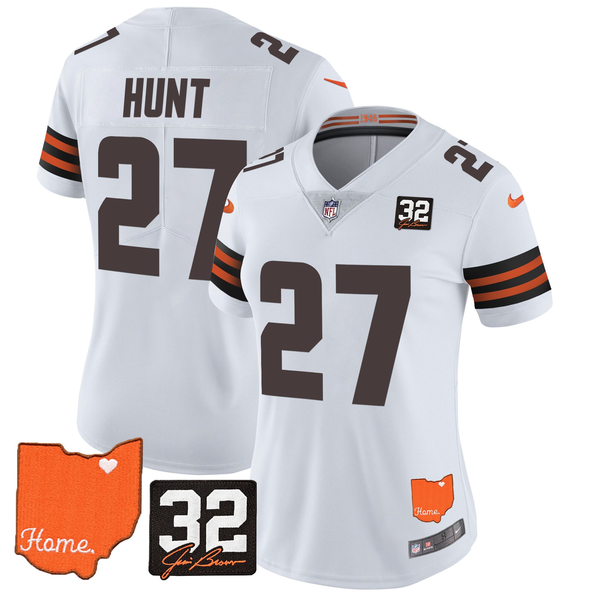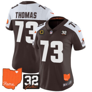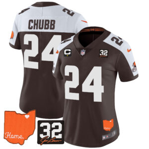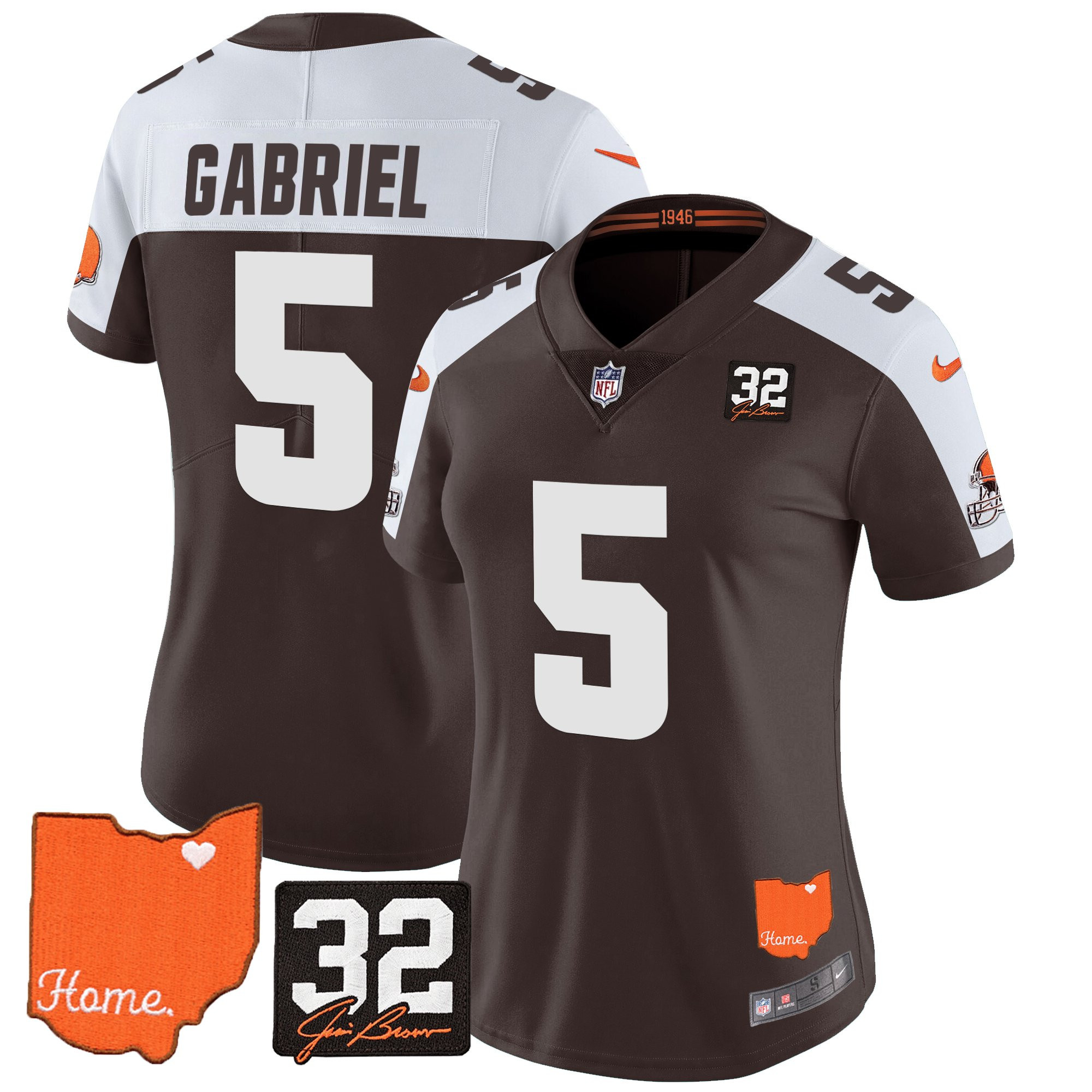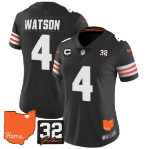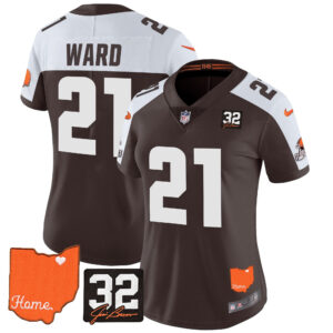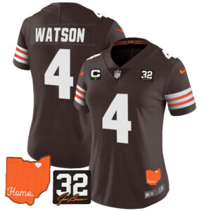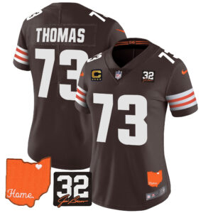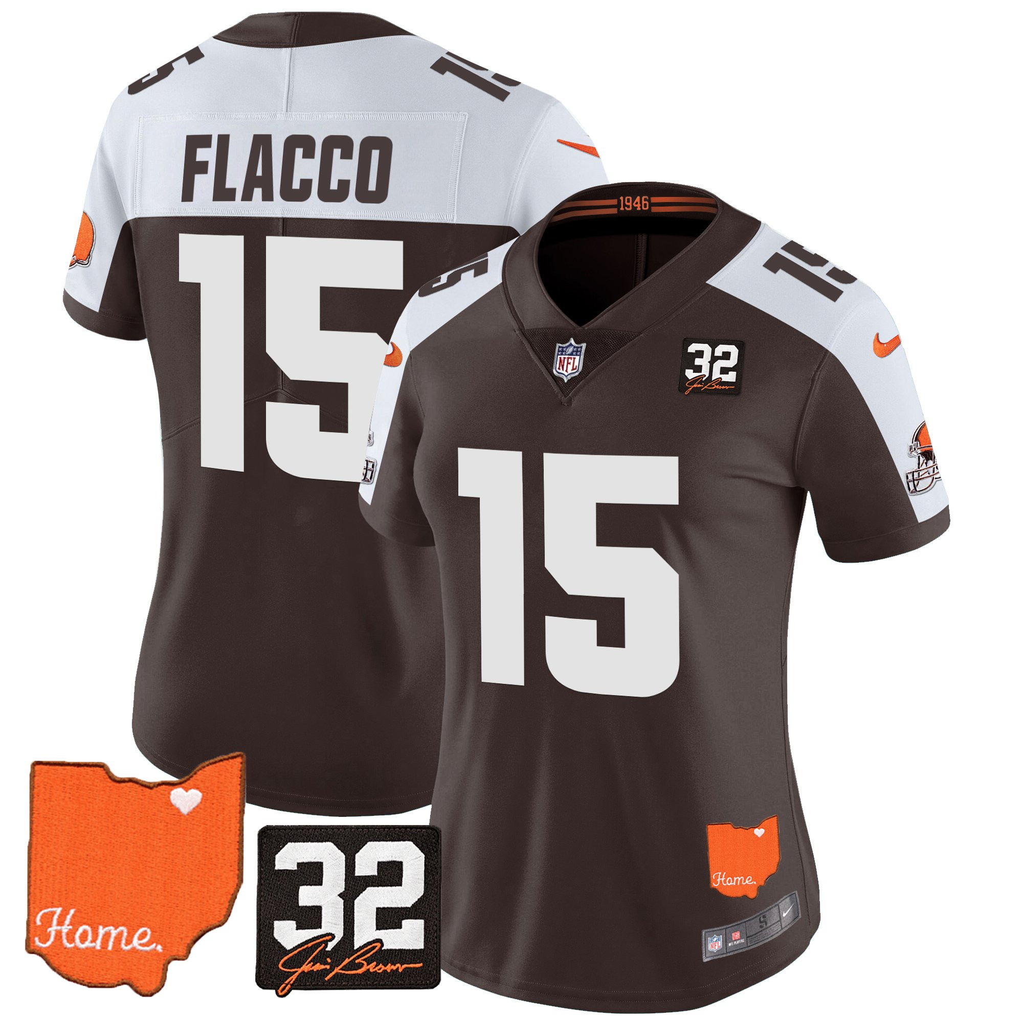 Women’s Browns #32 Jim Brown Memorial & Home Patch Vapor Limited Jersey – All Stitched