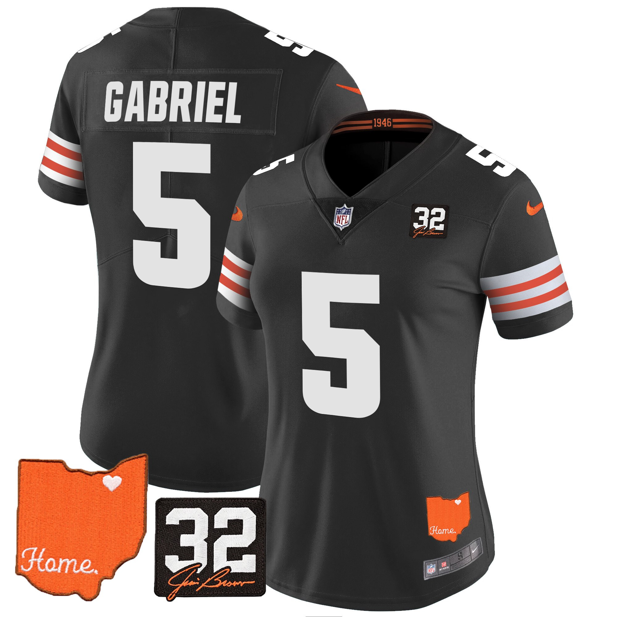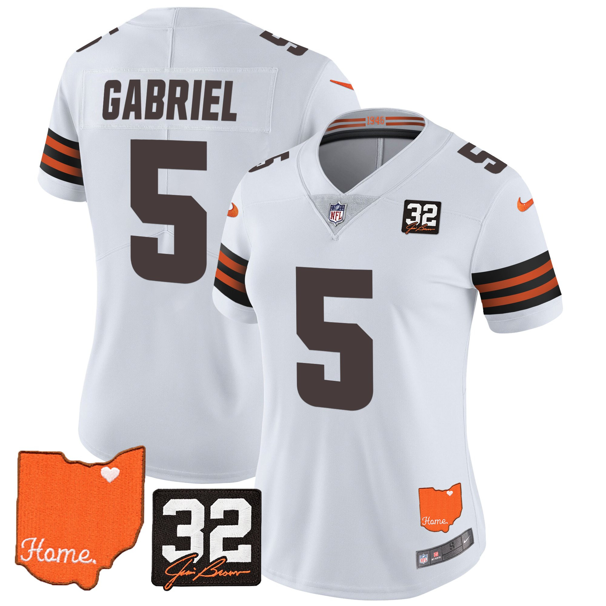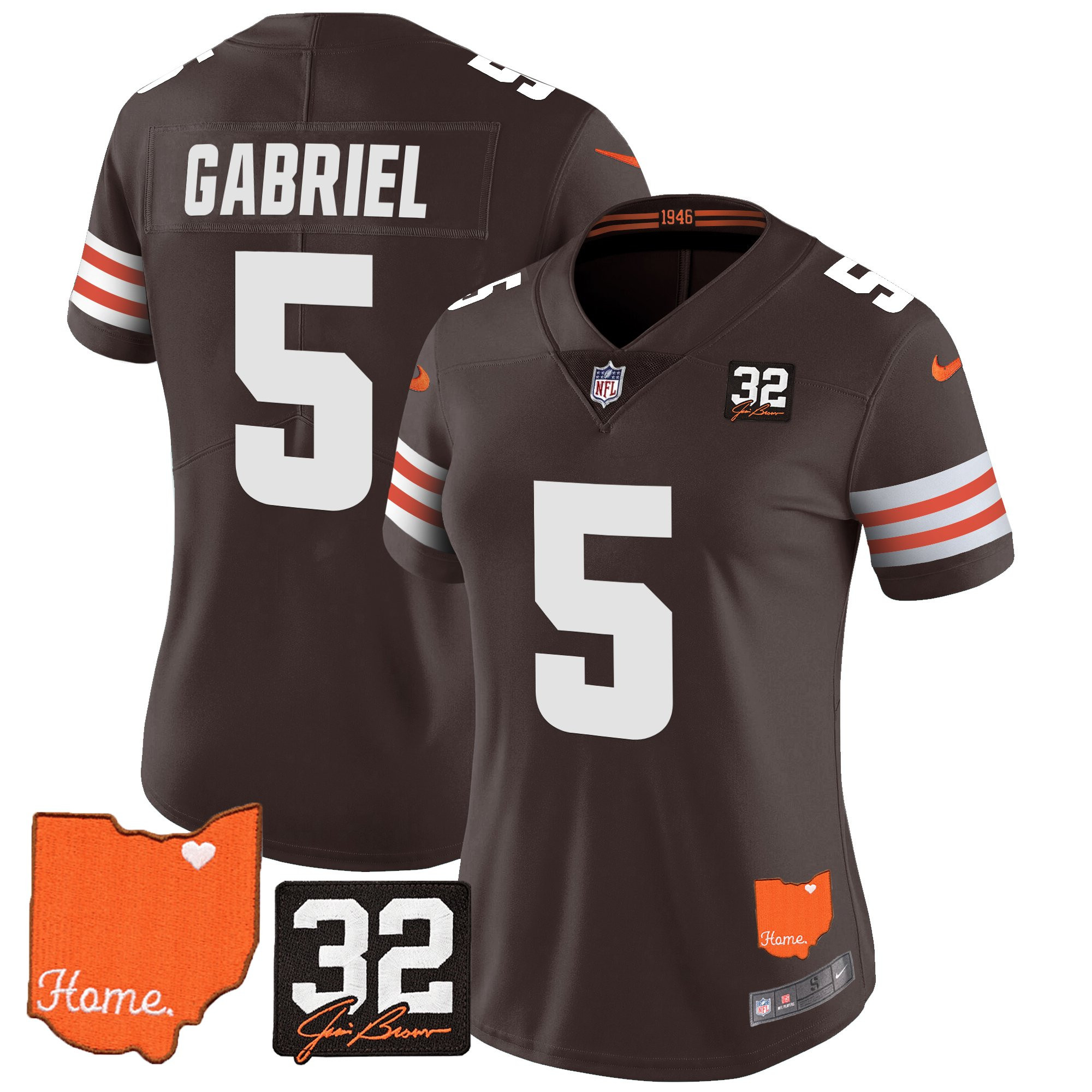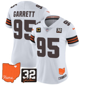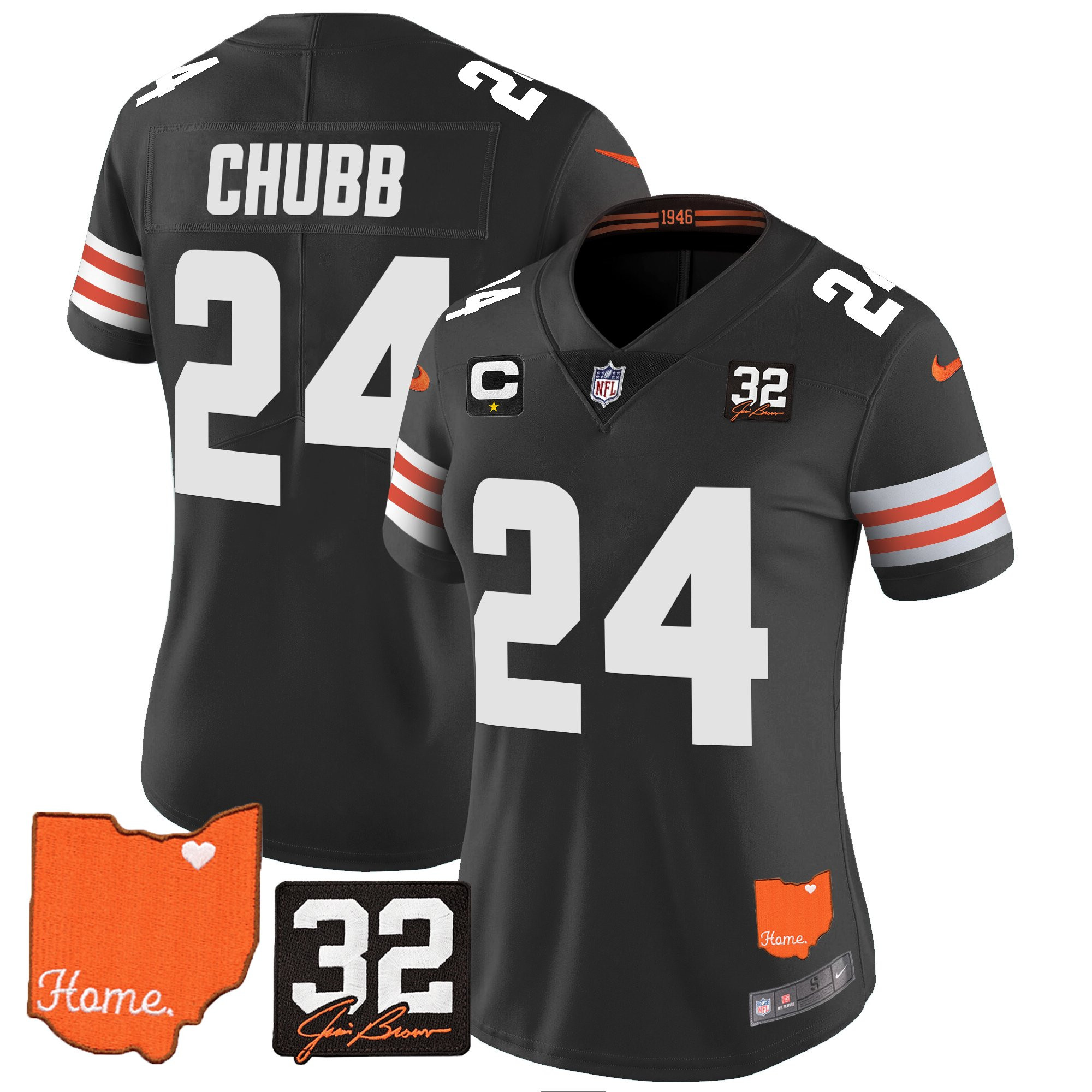 Women’s Browns #32 Jim Brown Memorial & Home Patch Vapor Limited Jersey – All Stitched