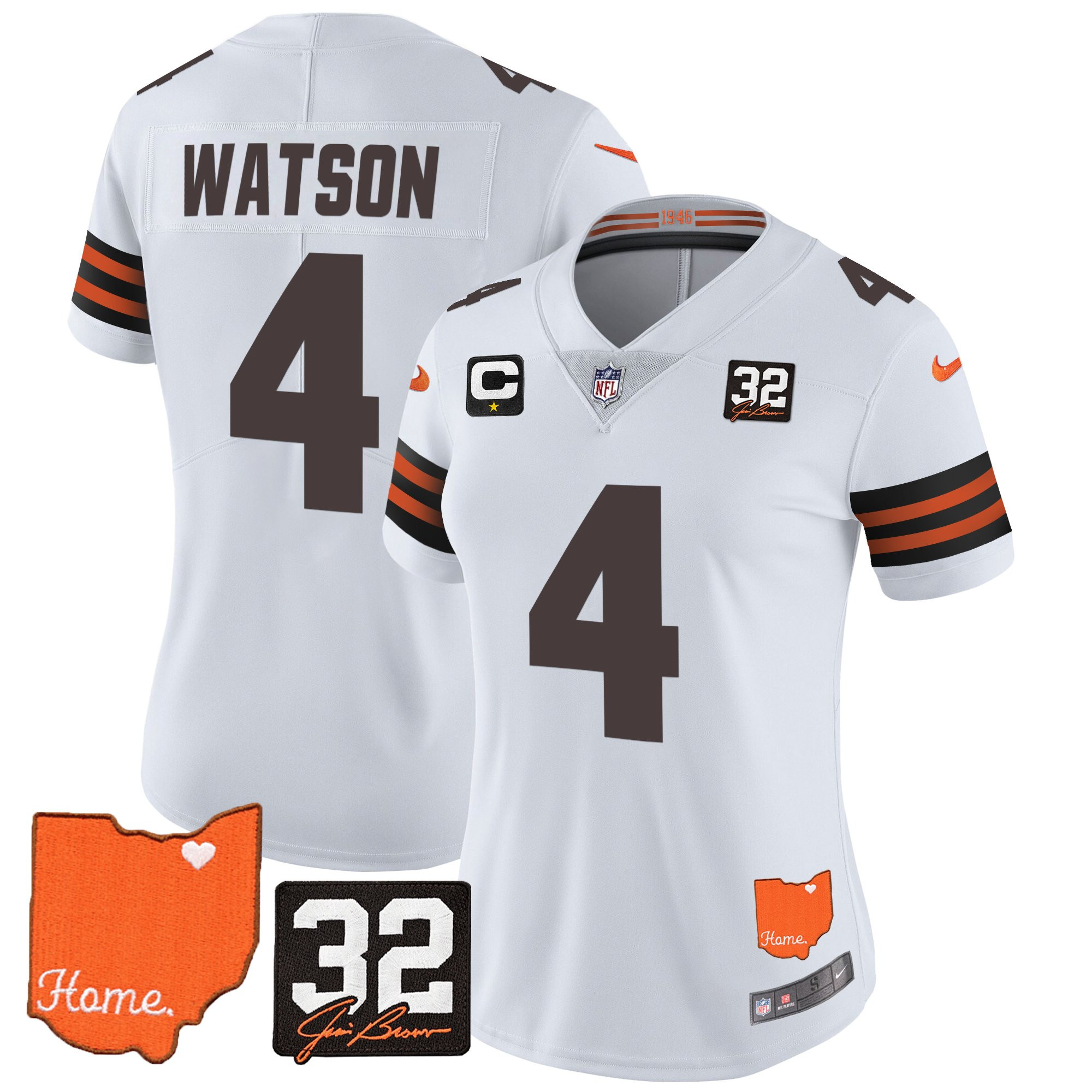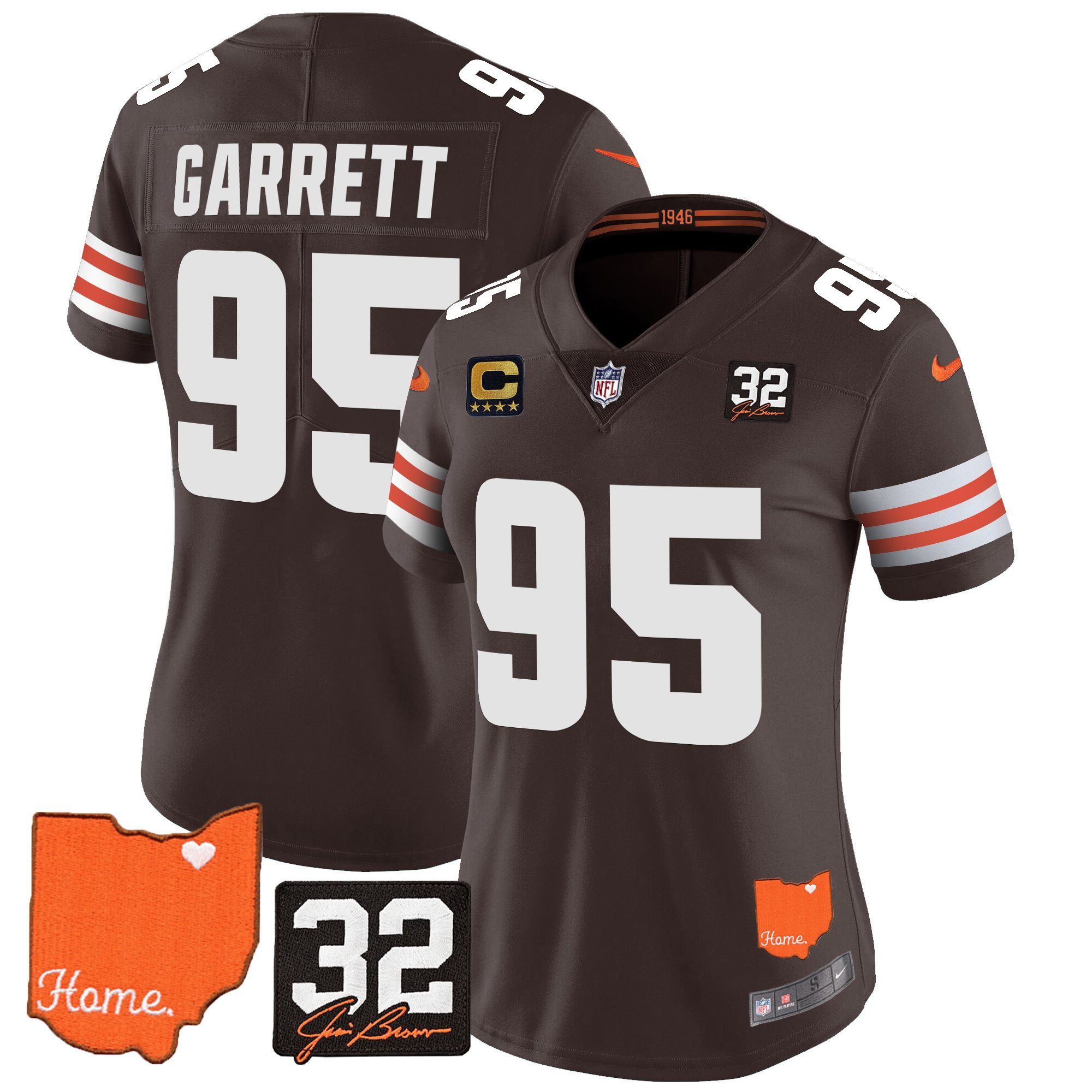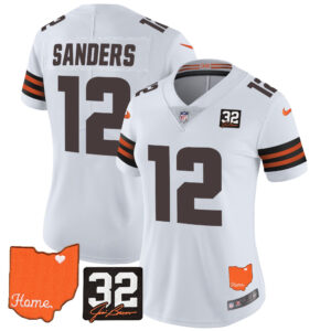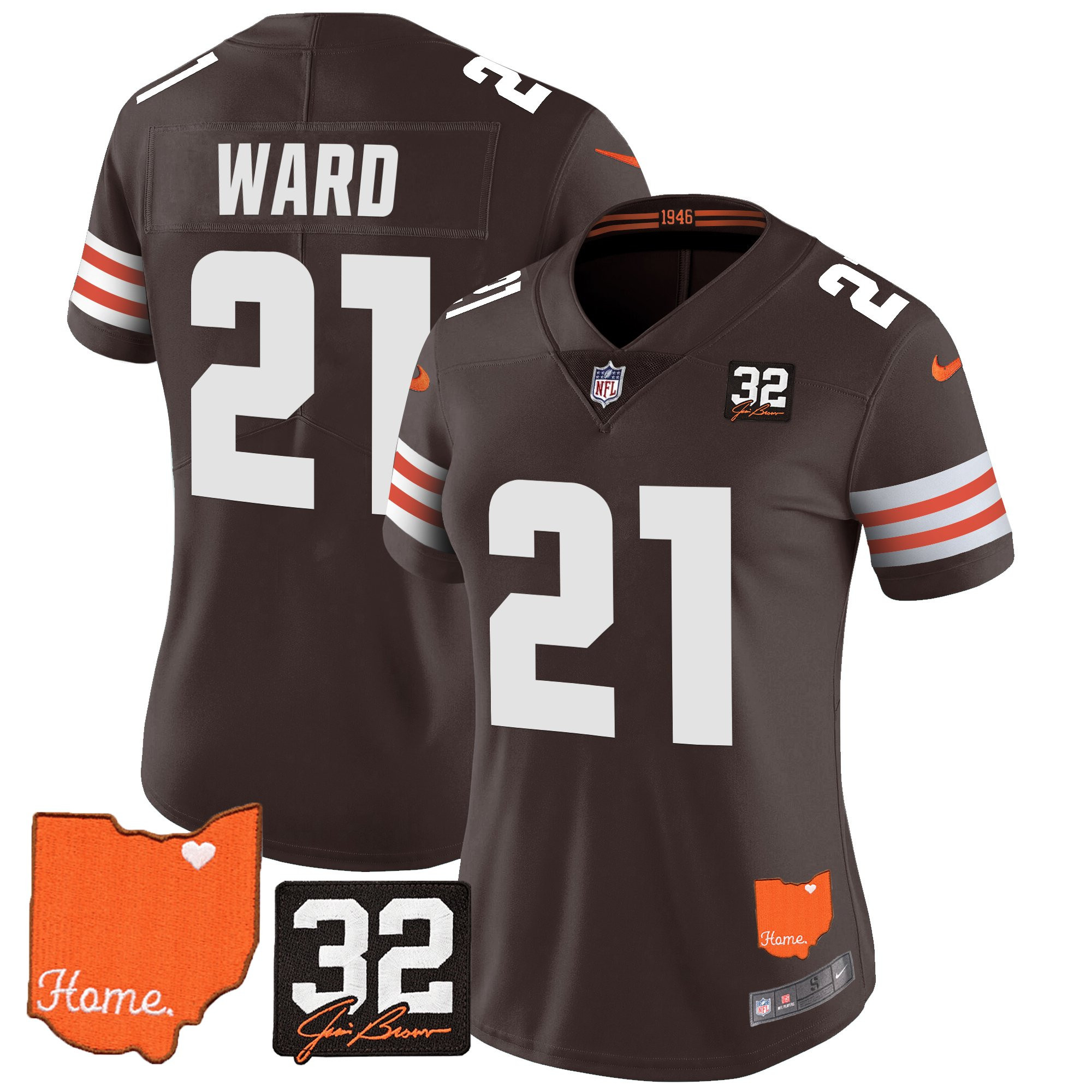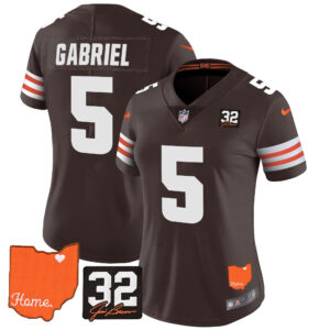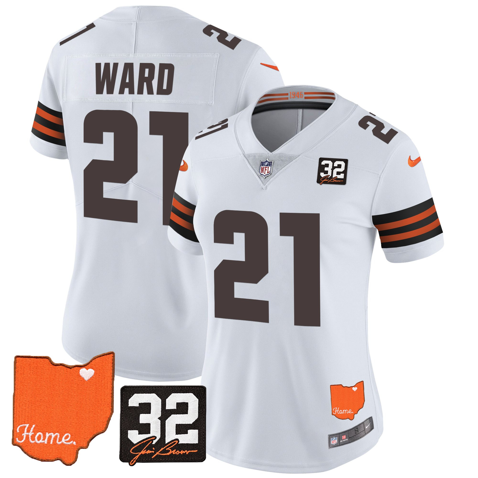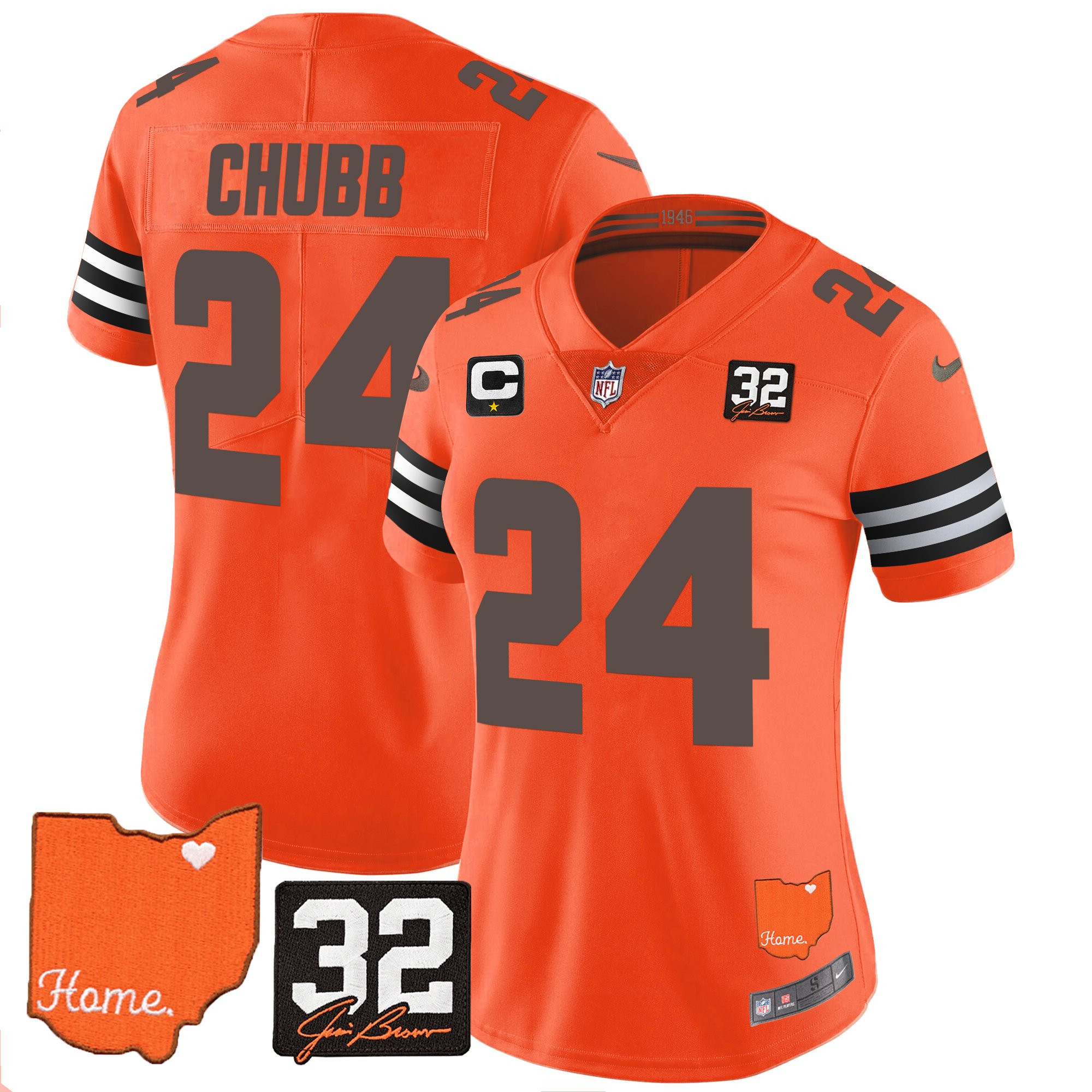 Women’s Browns #32 Jim Brown Memorial & Home Patch Vapor Limited Jersey – All Stitched