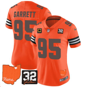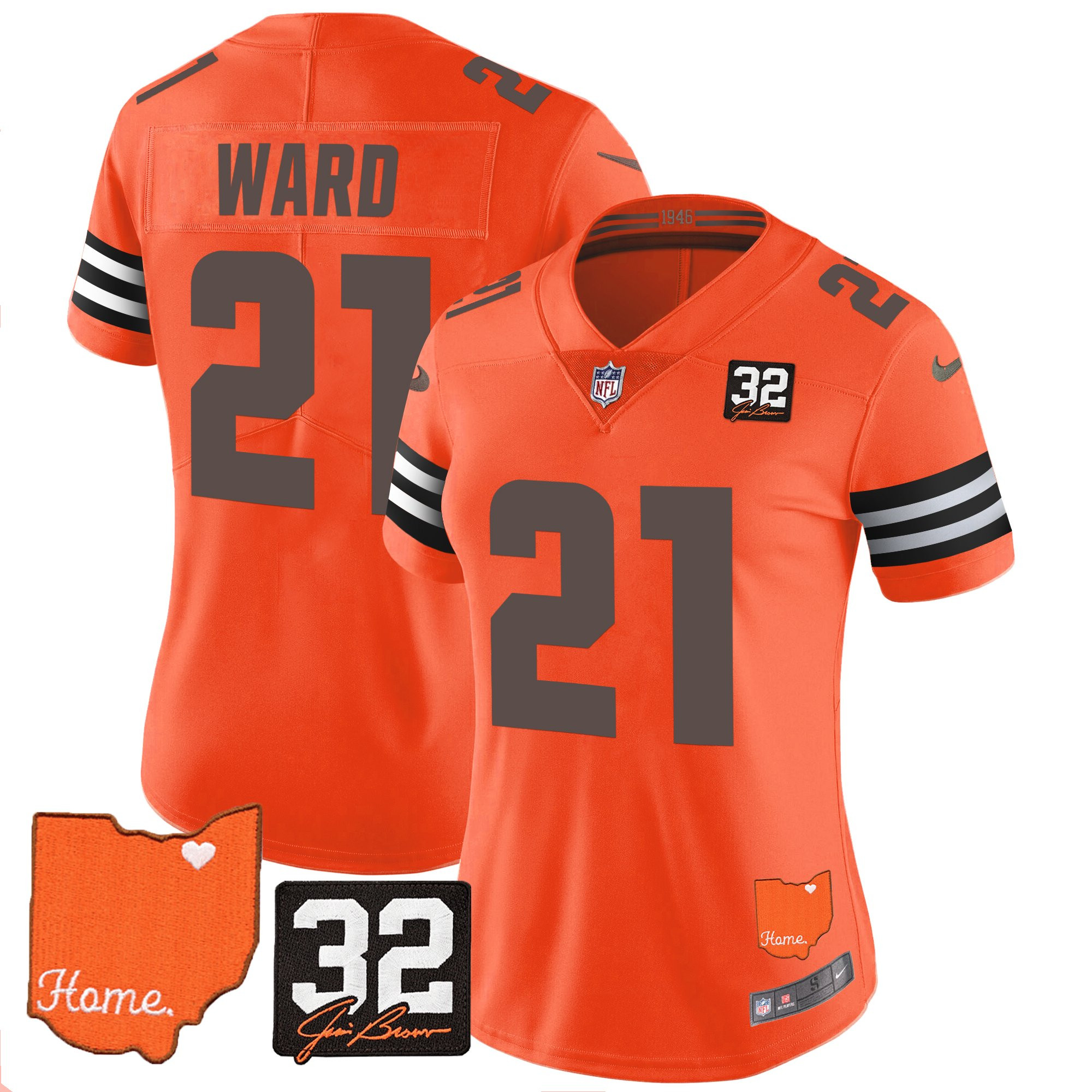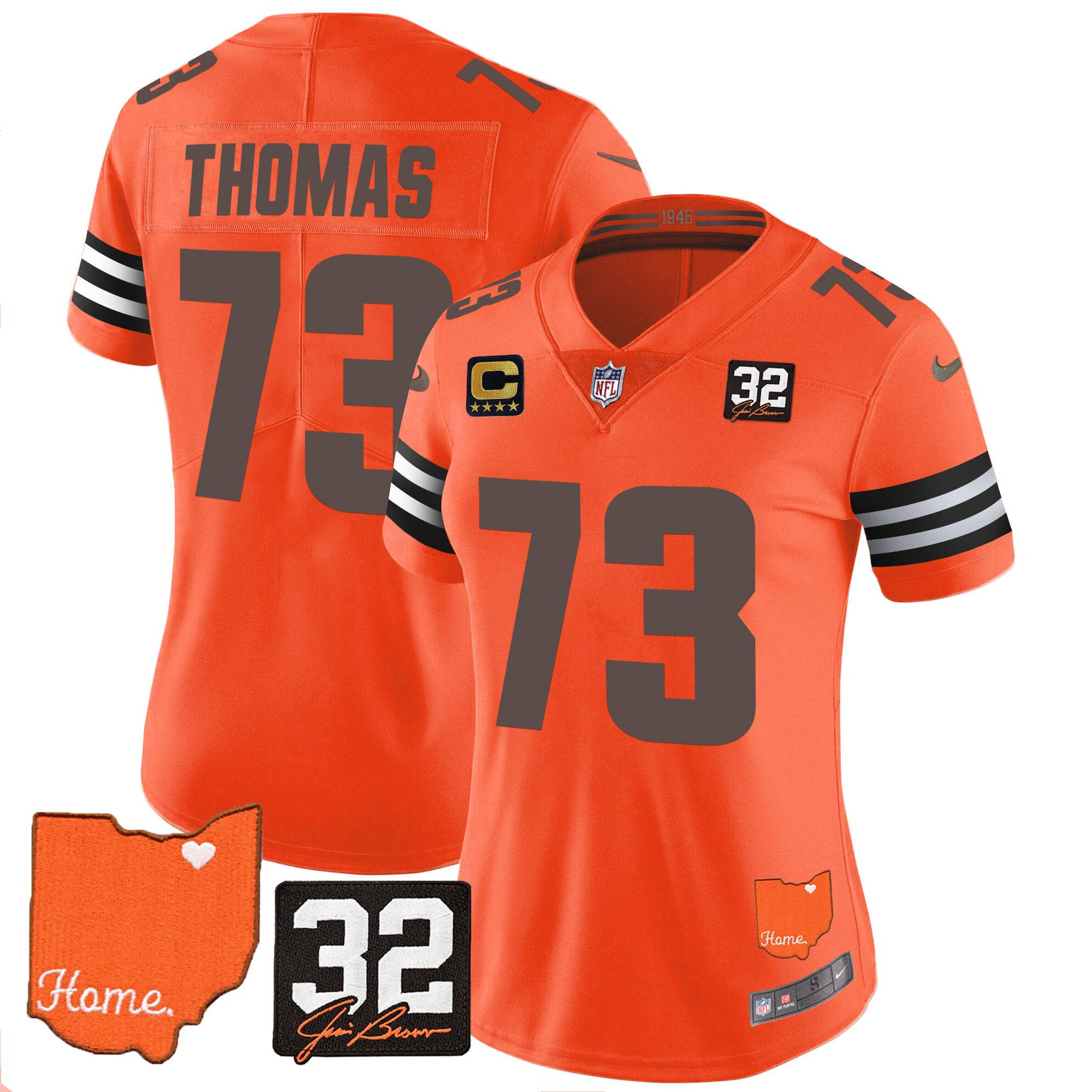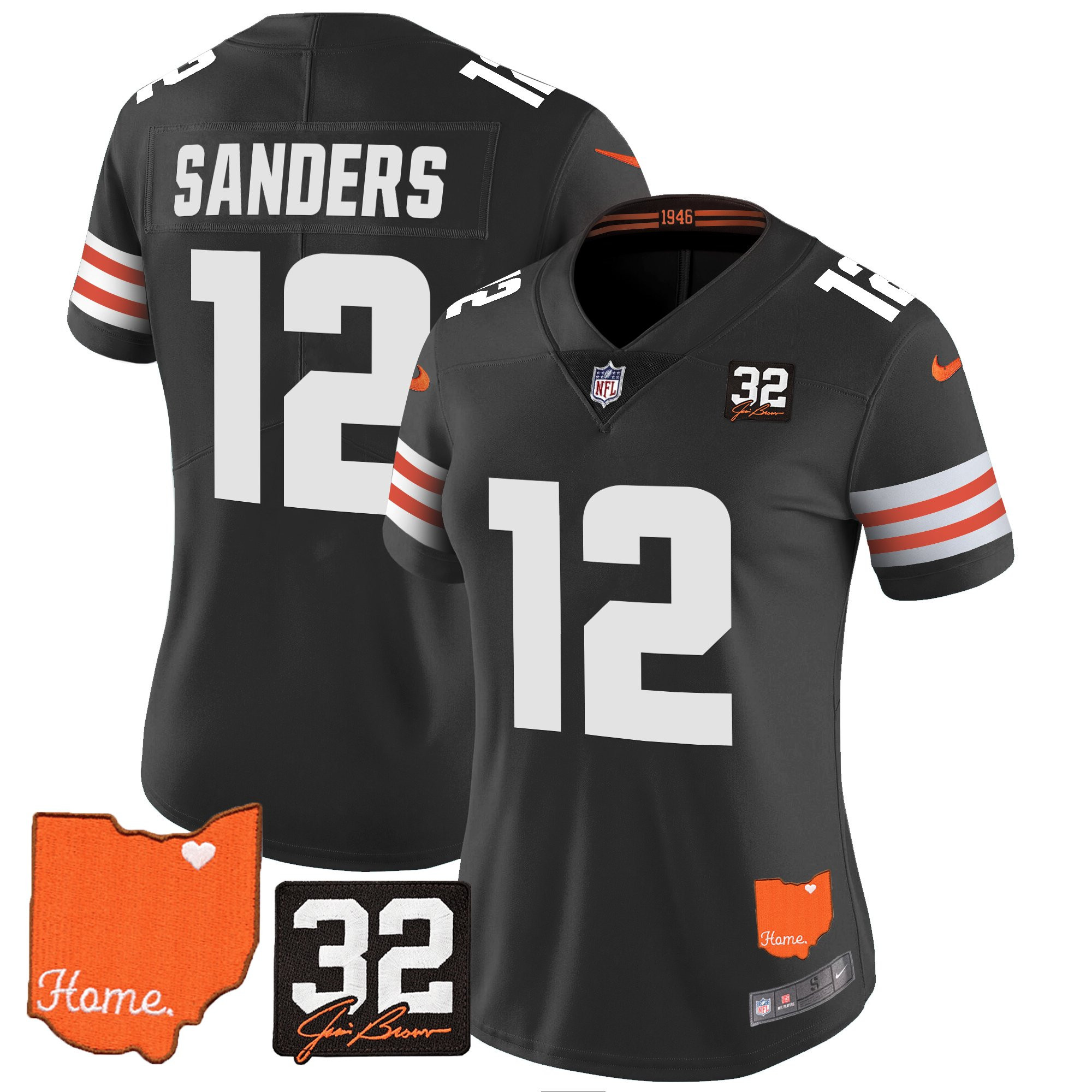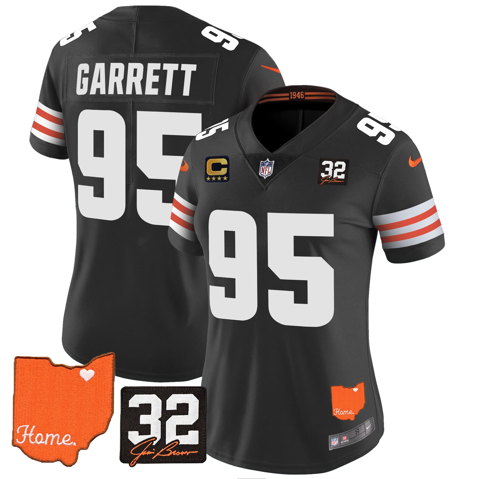 Women’s Browns #32 Jim Brown Memorial & Home Patch Vapor Limited Jersey – All Stitched