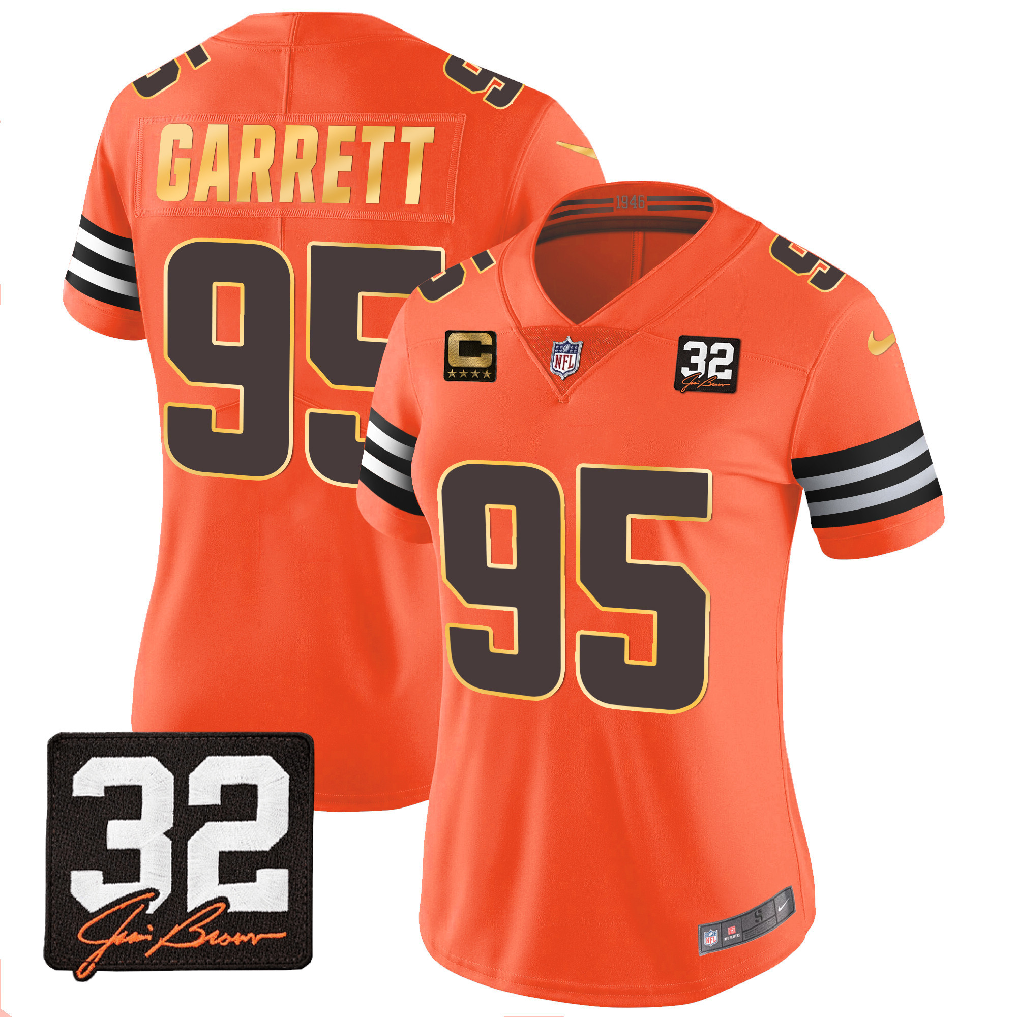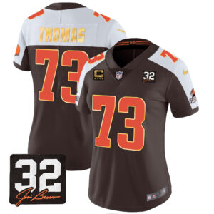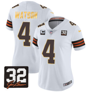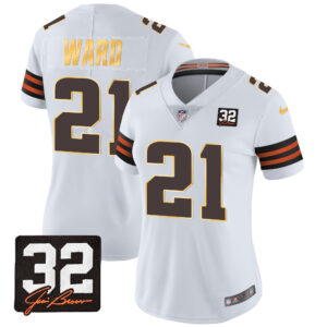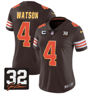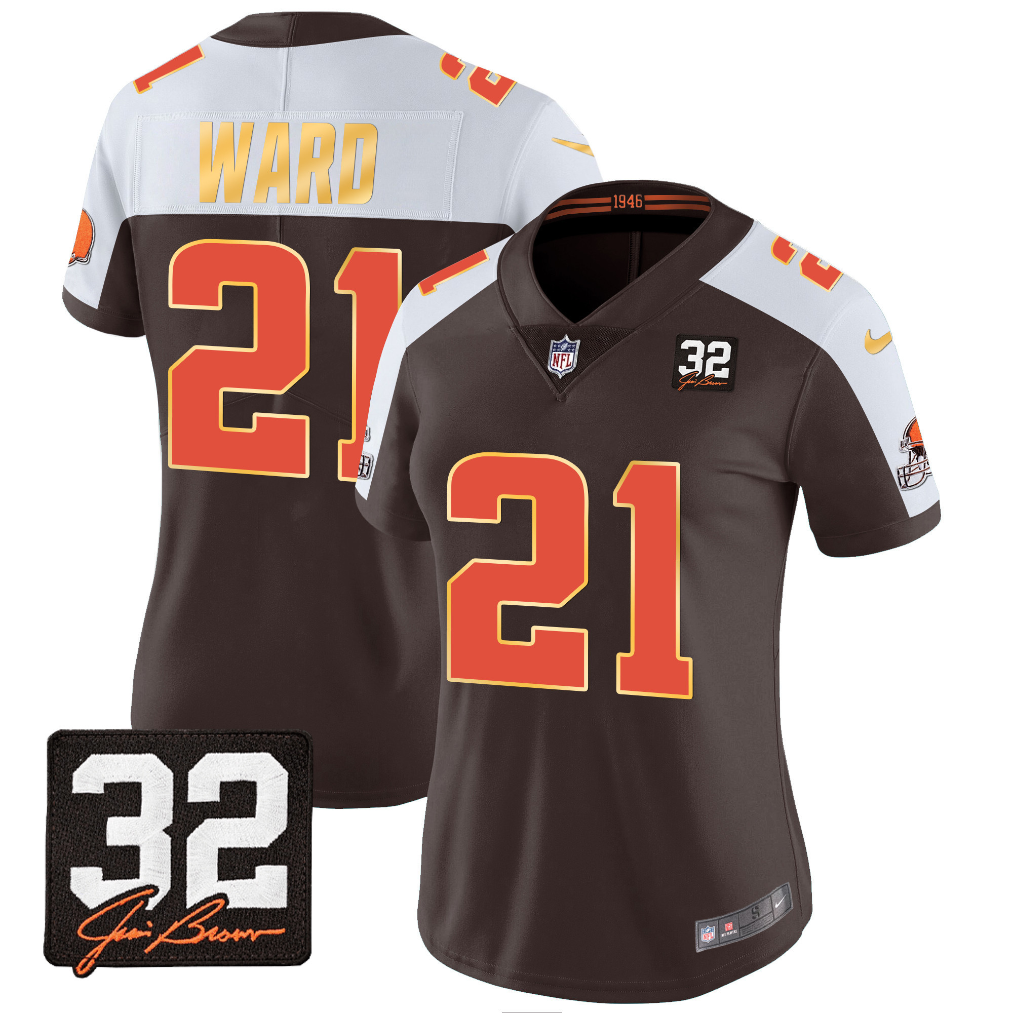 Women’s Browns #32 Jim Brown Memorial Patch Gold Trim Jersey – All Stitched