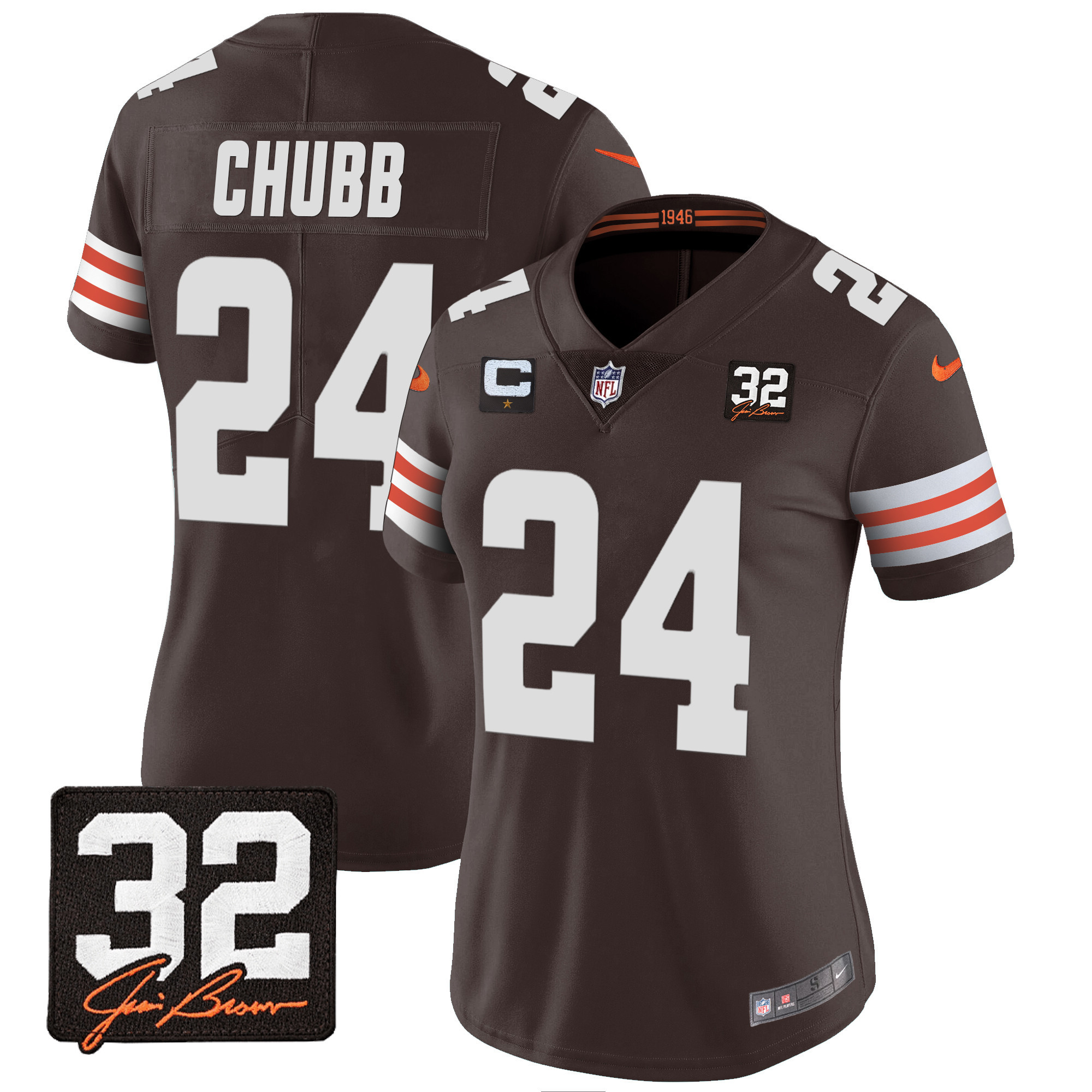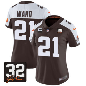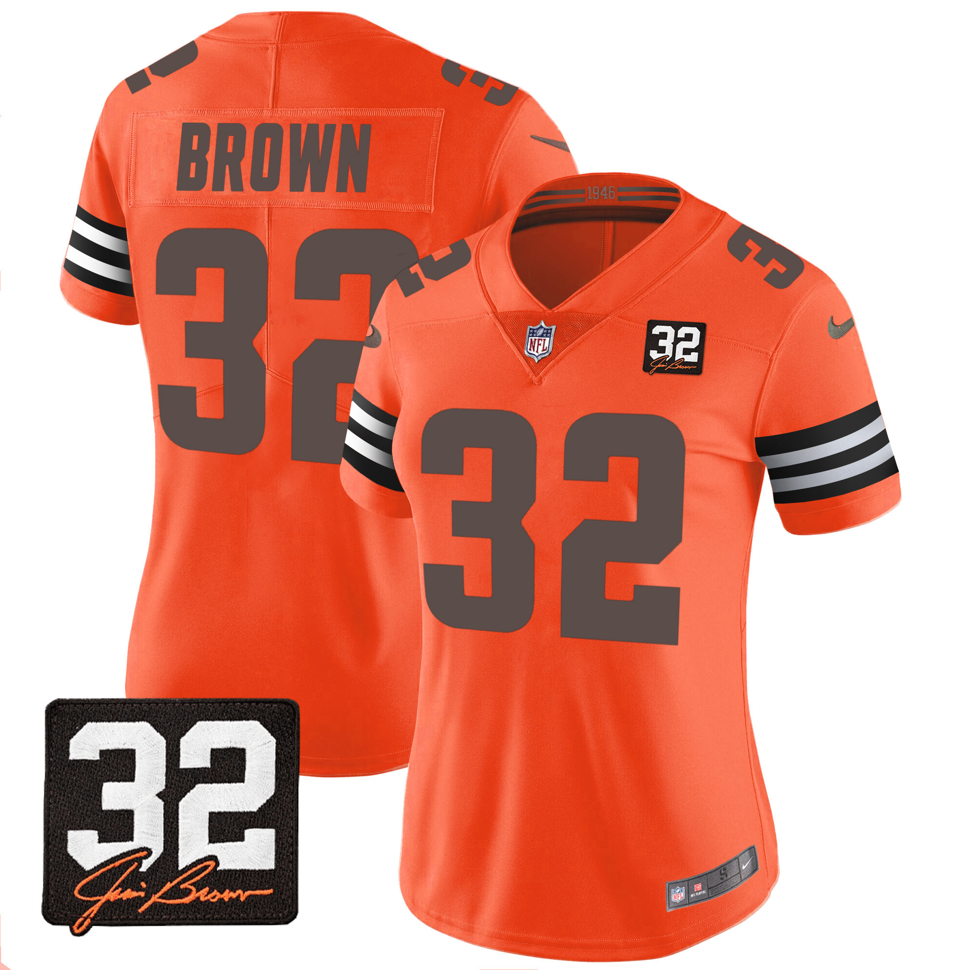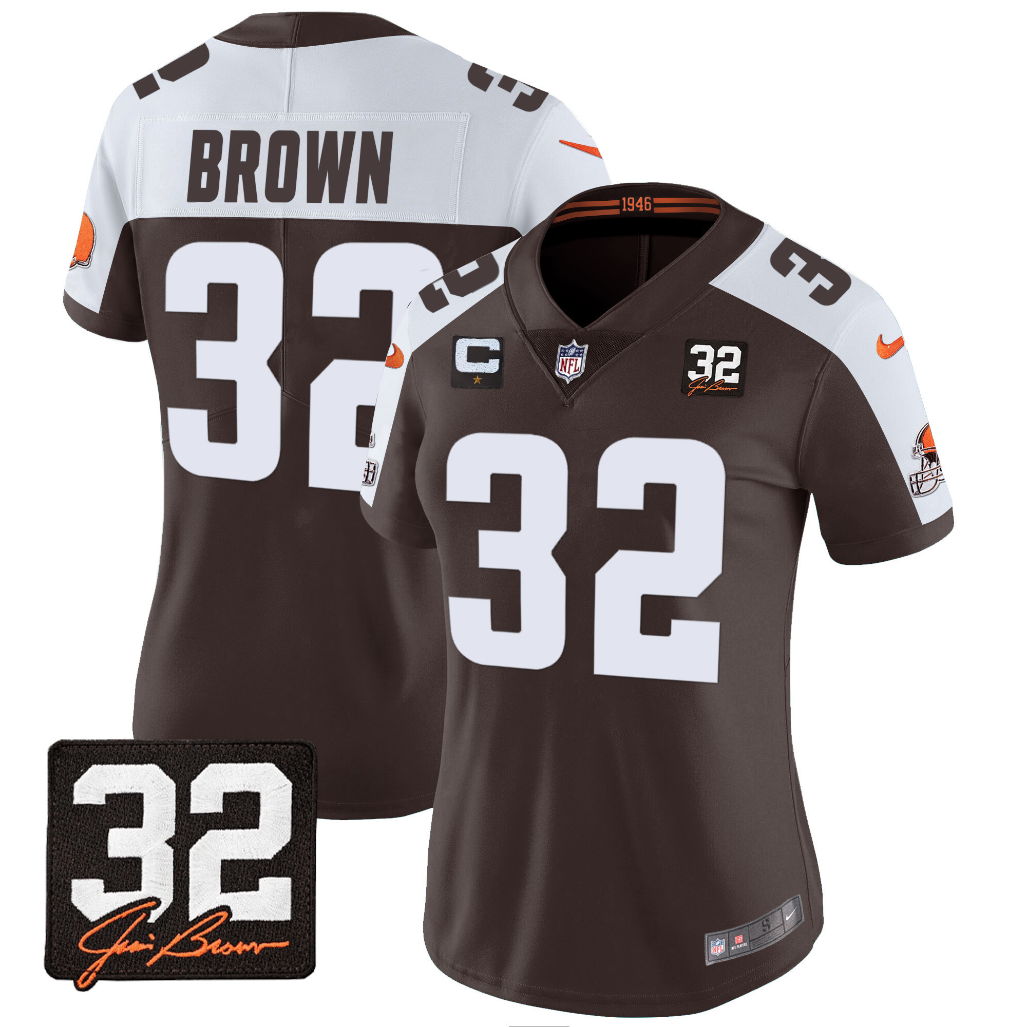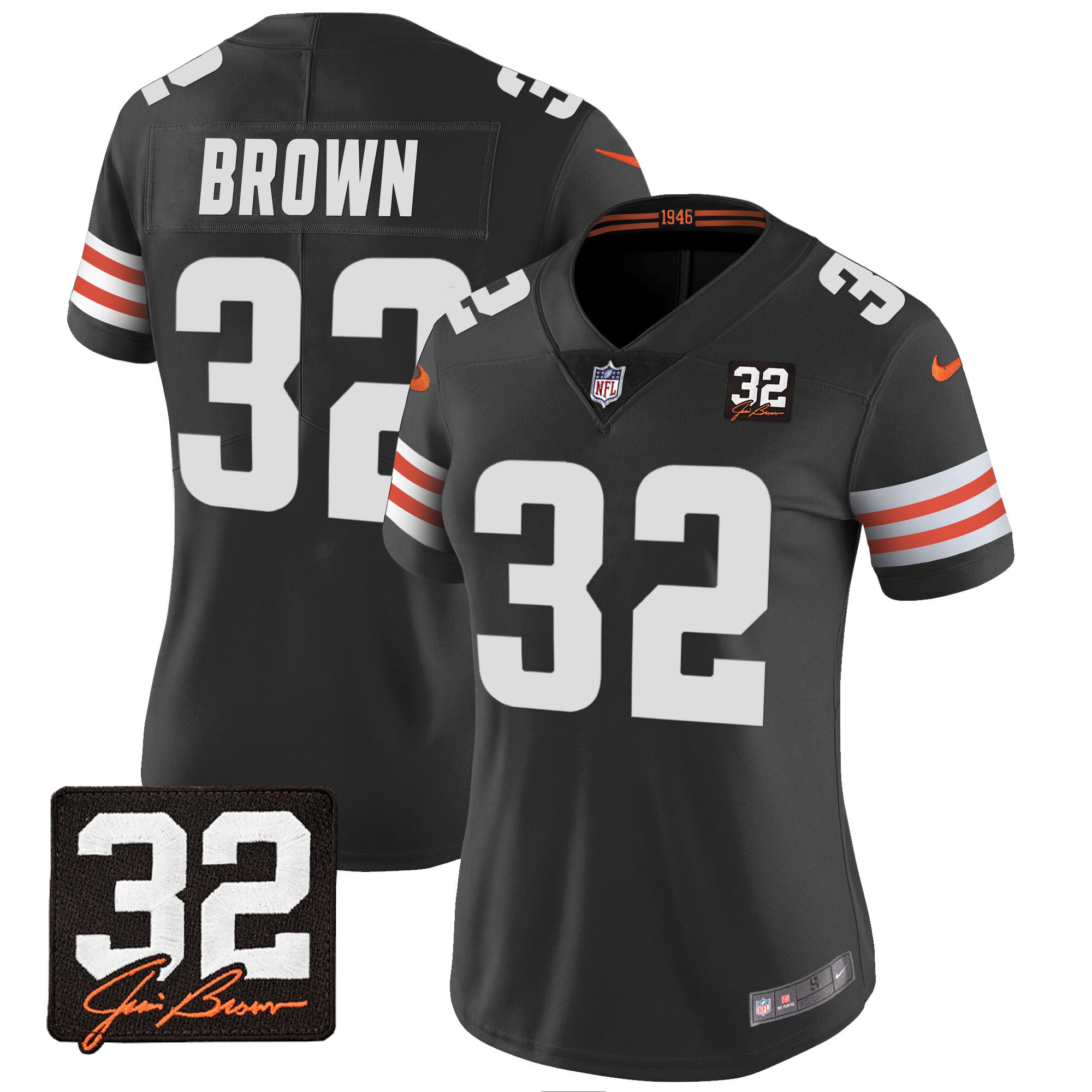 Women’s Browns #32 Jim Brown Memorial Patch Jersey – All Stitched