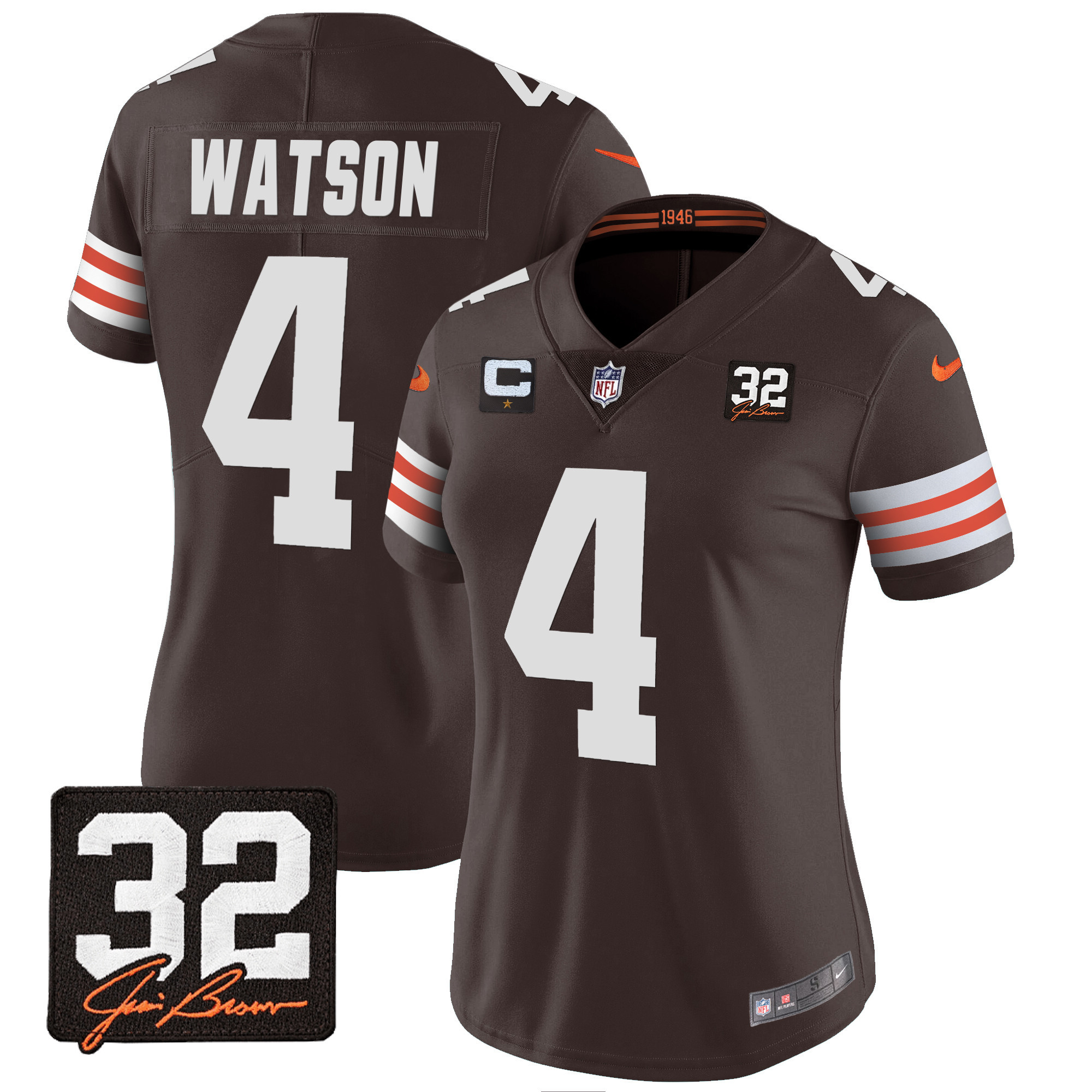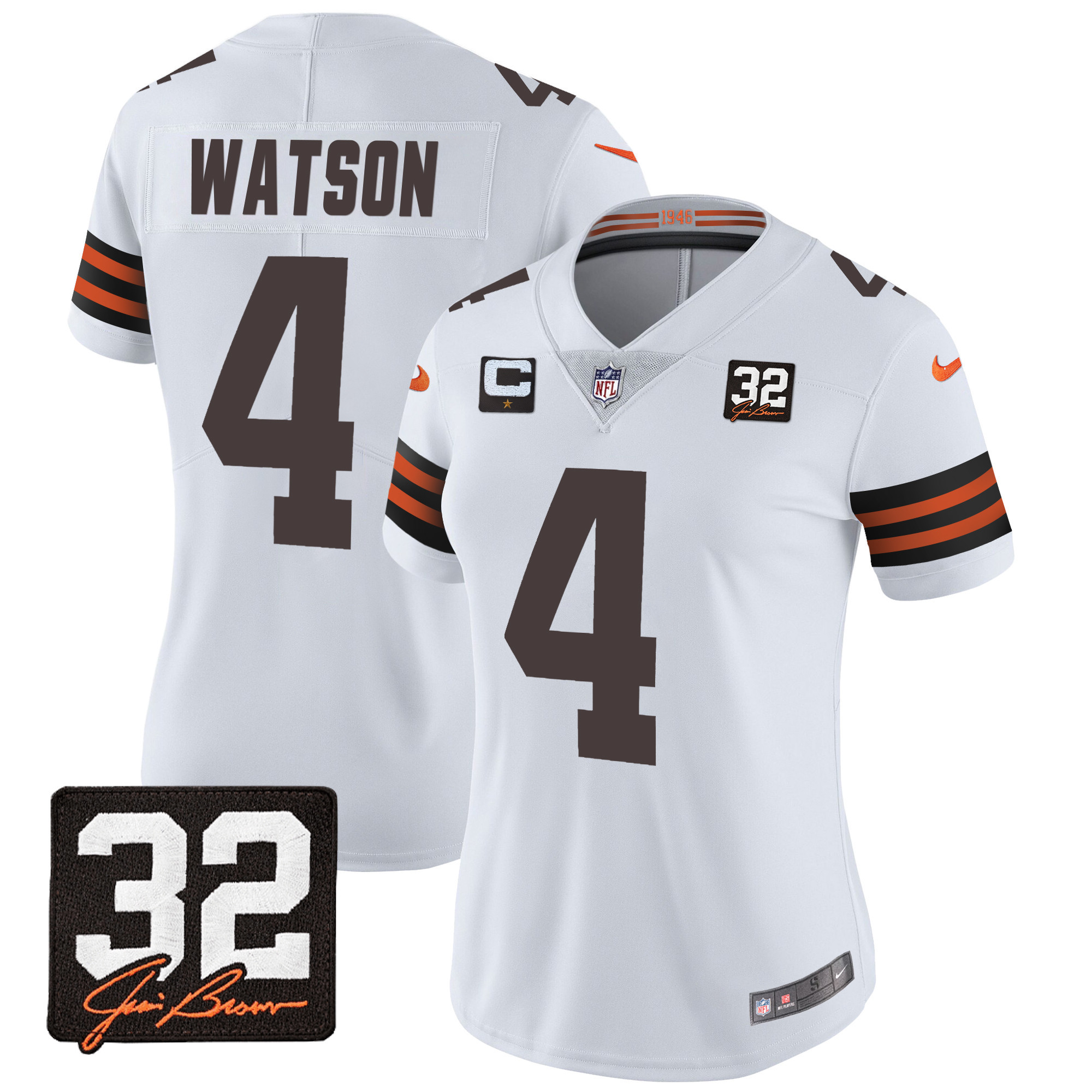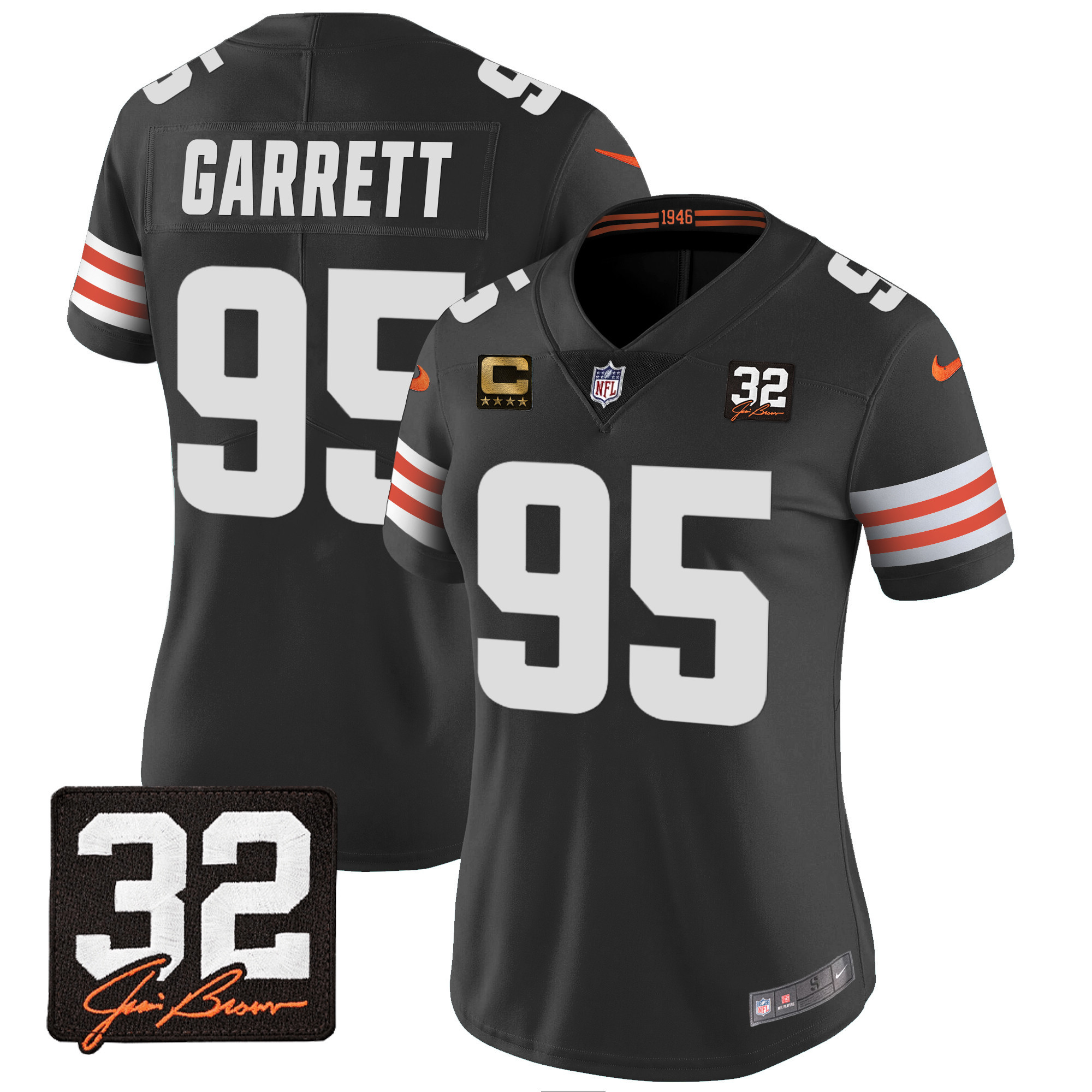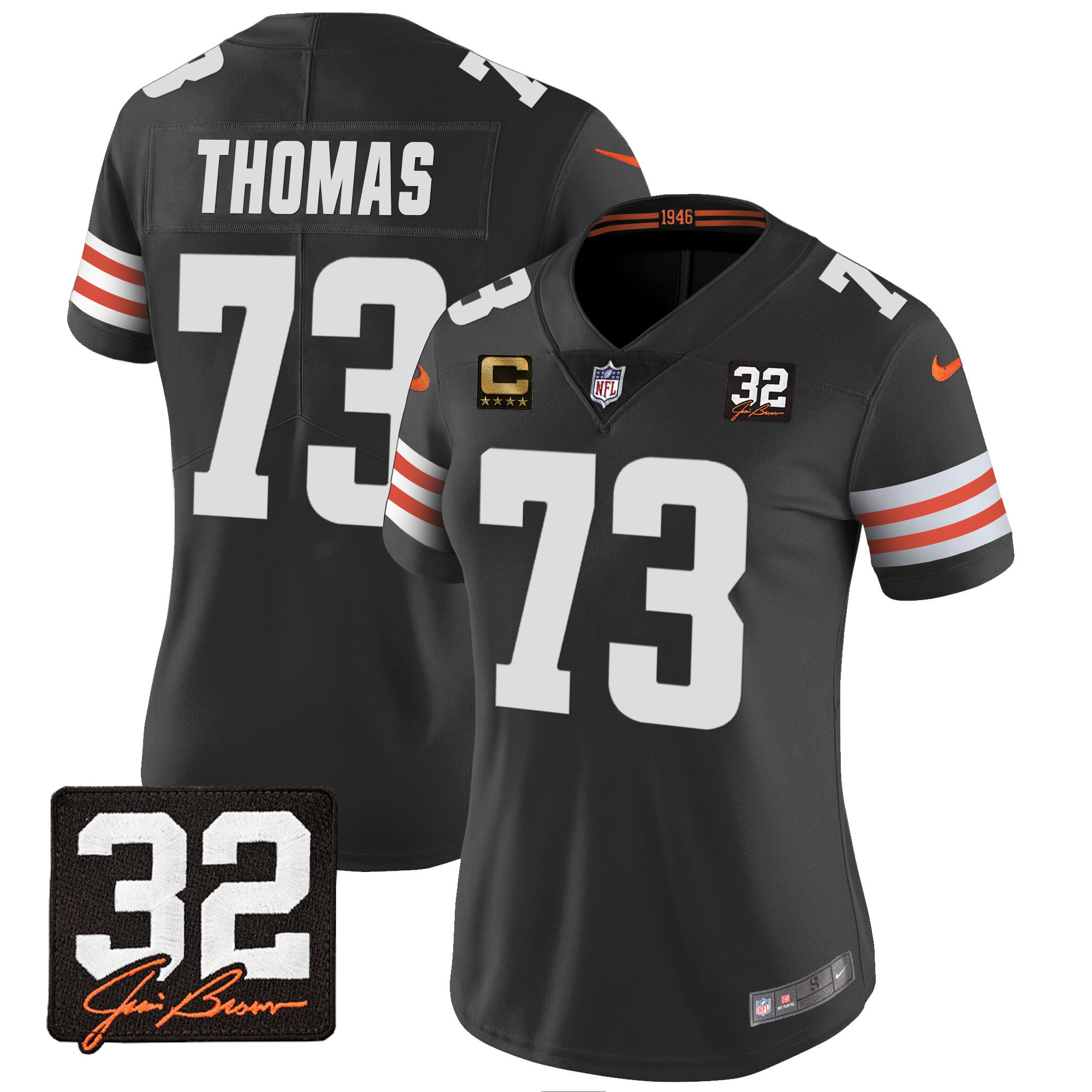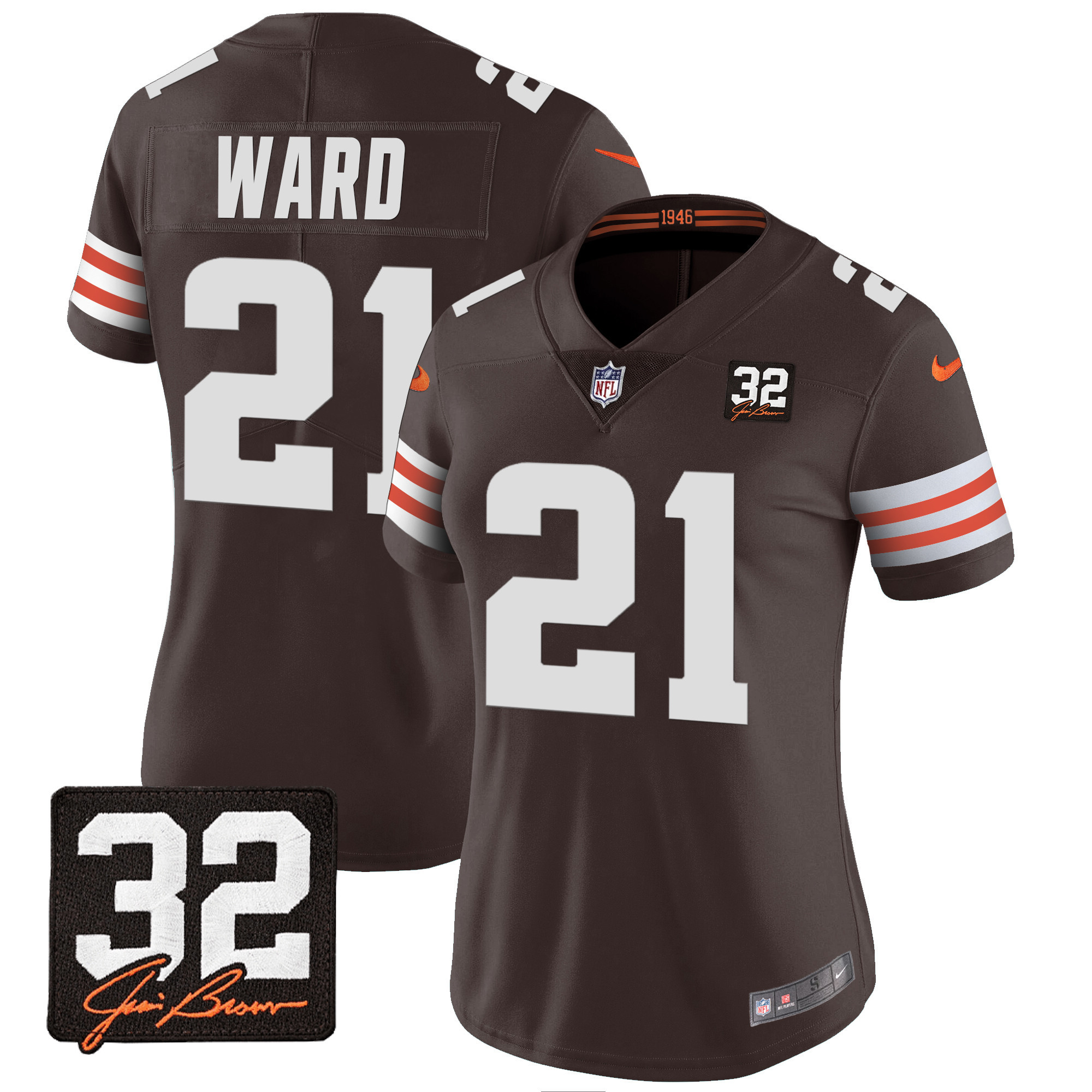 Women’s Browns #32 Jim Brown Memorial Patch Jersey – All Stitched