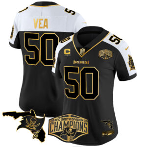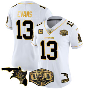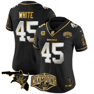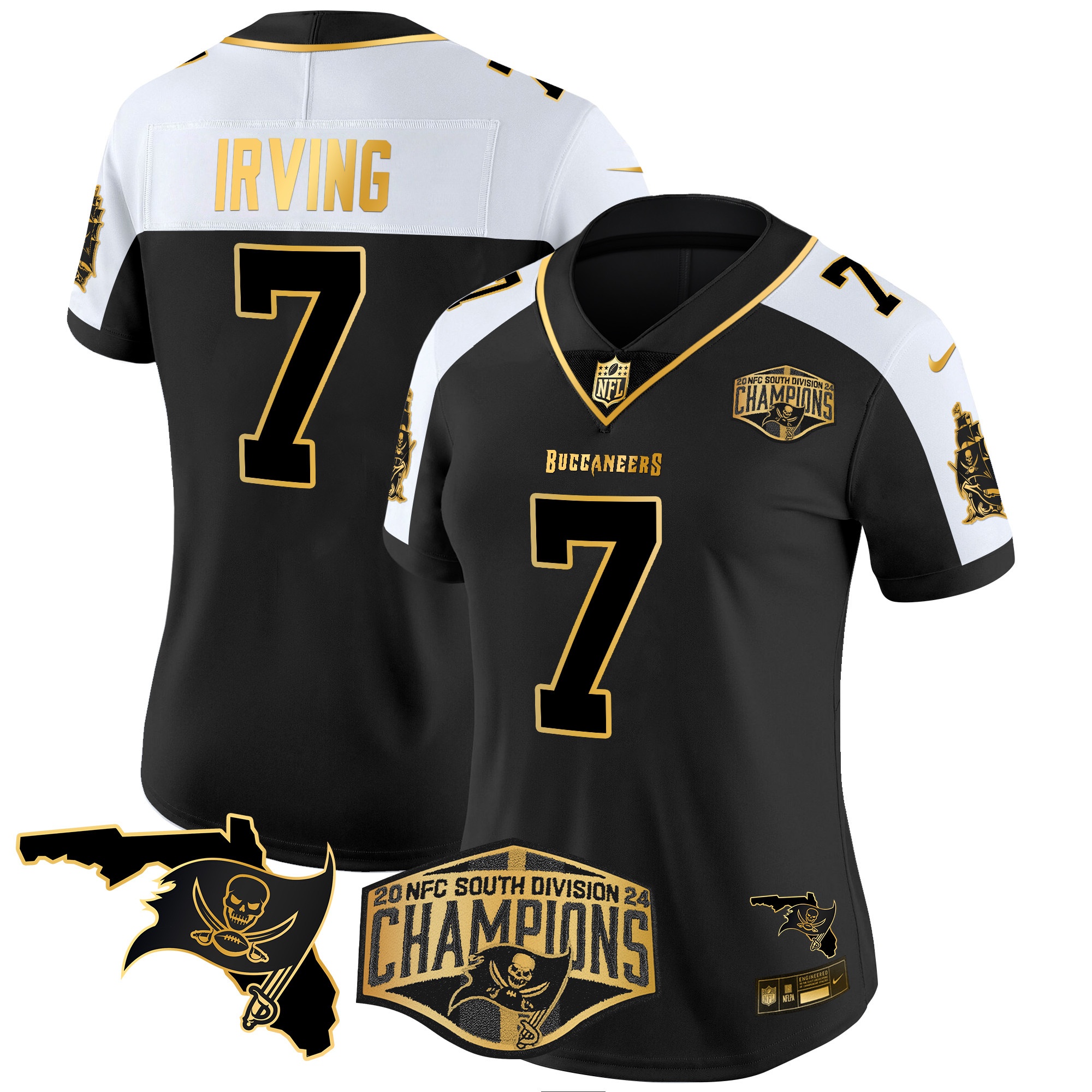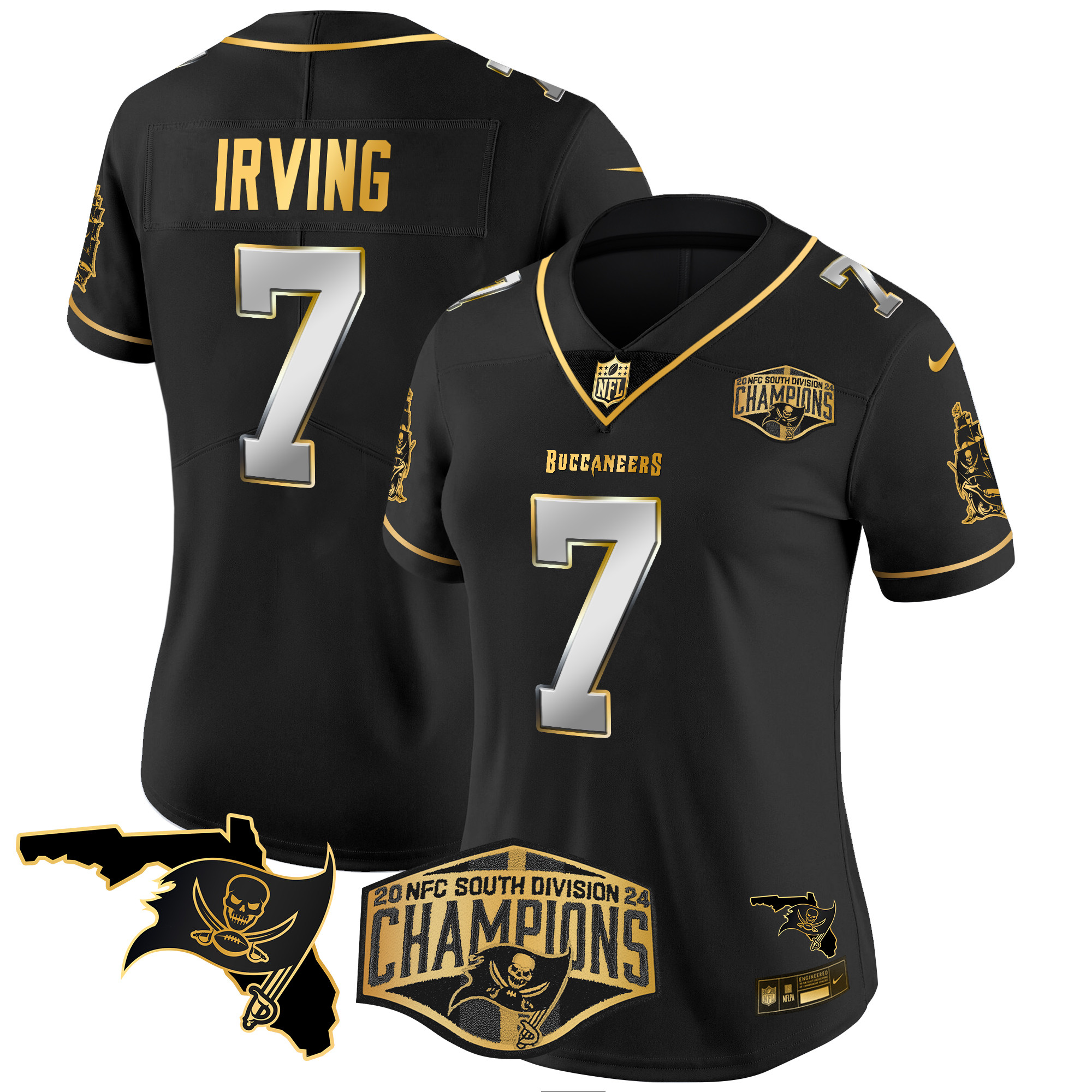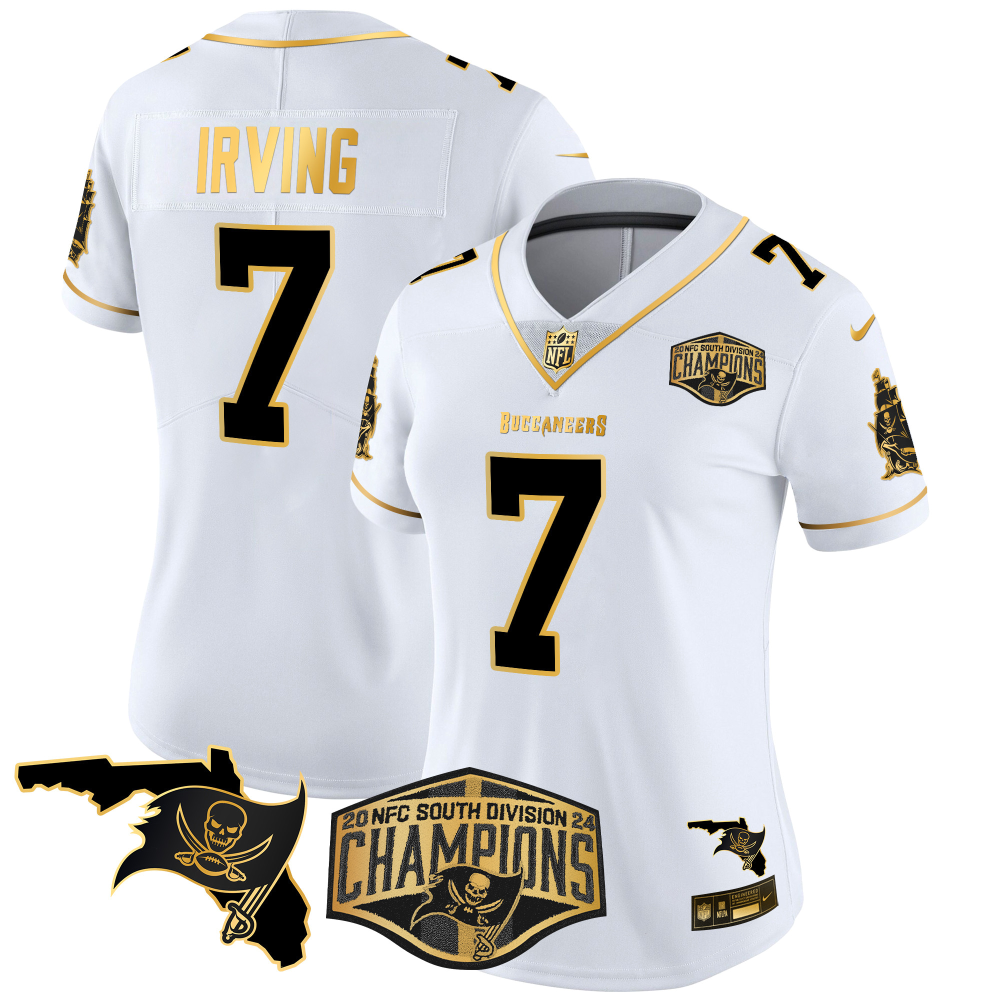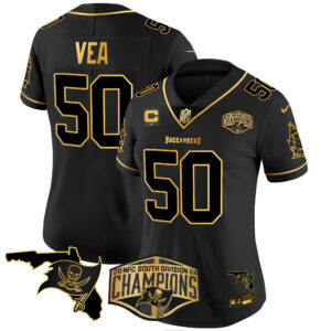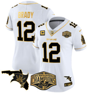 Women’s Buccaneers 2024 NFC South Division Champions Patch Gold Vapor Limited Jersey – All Stitched