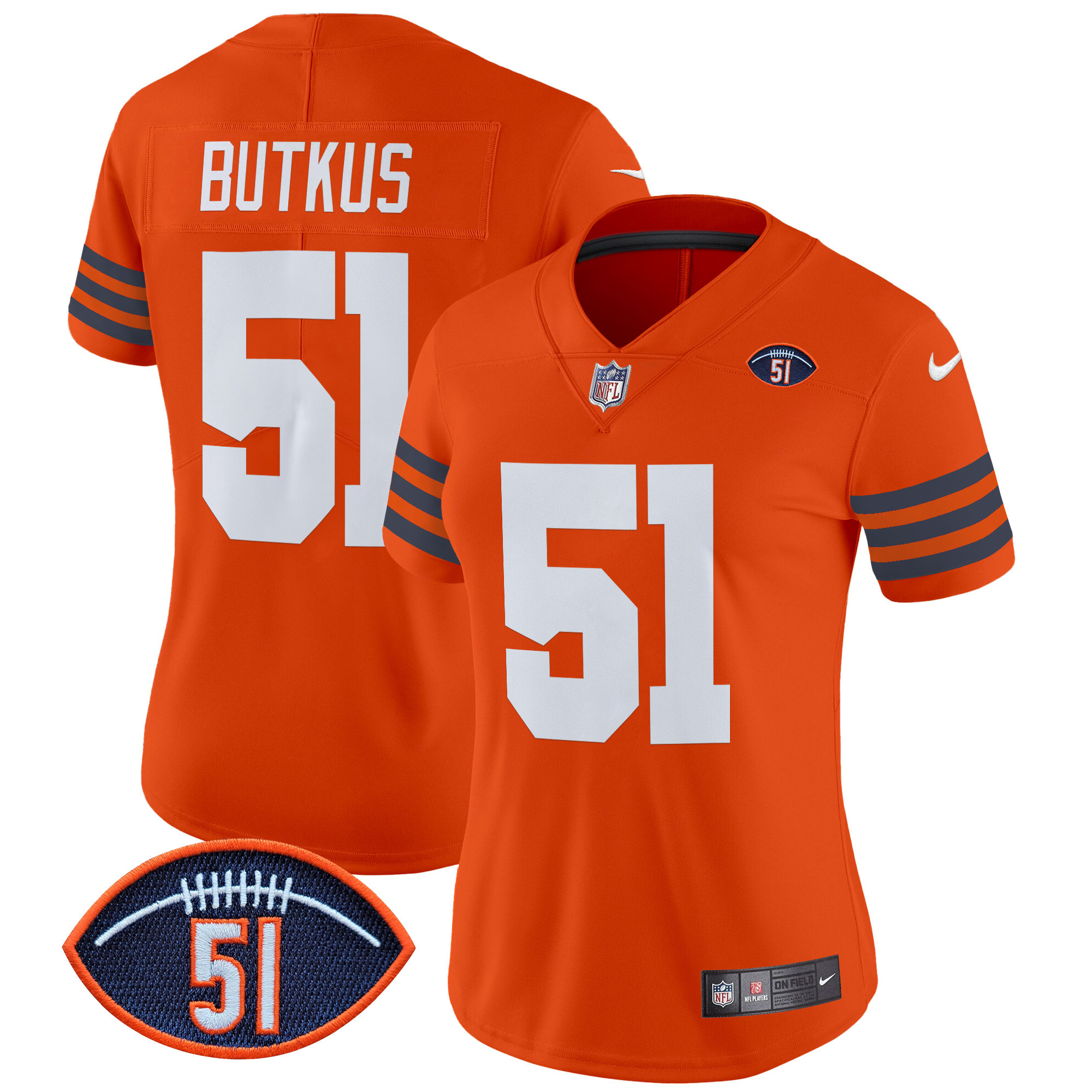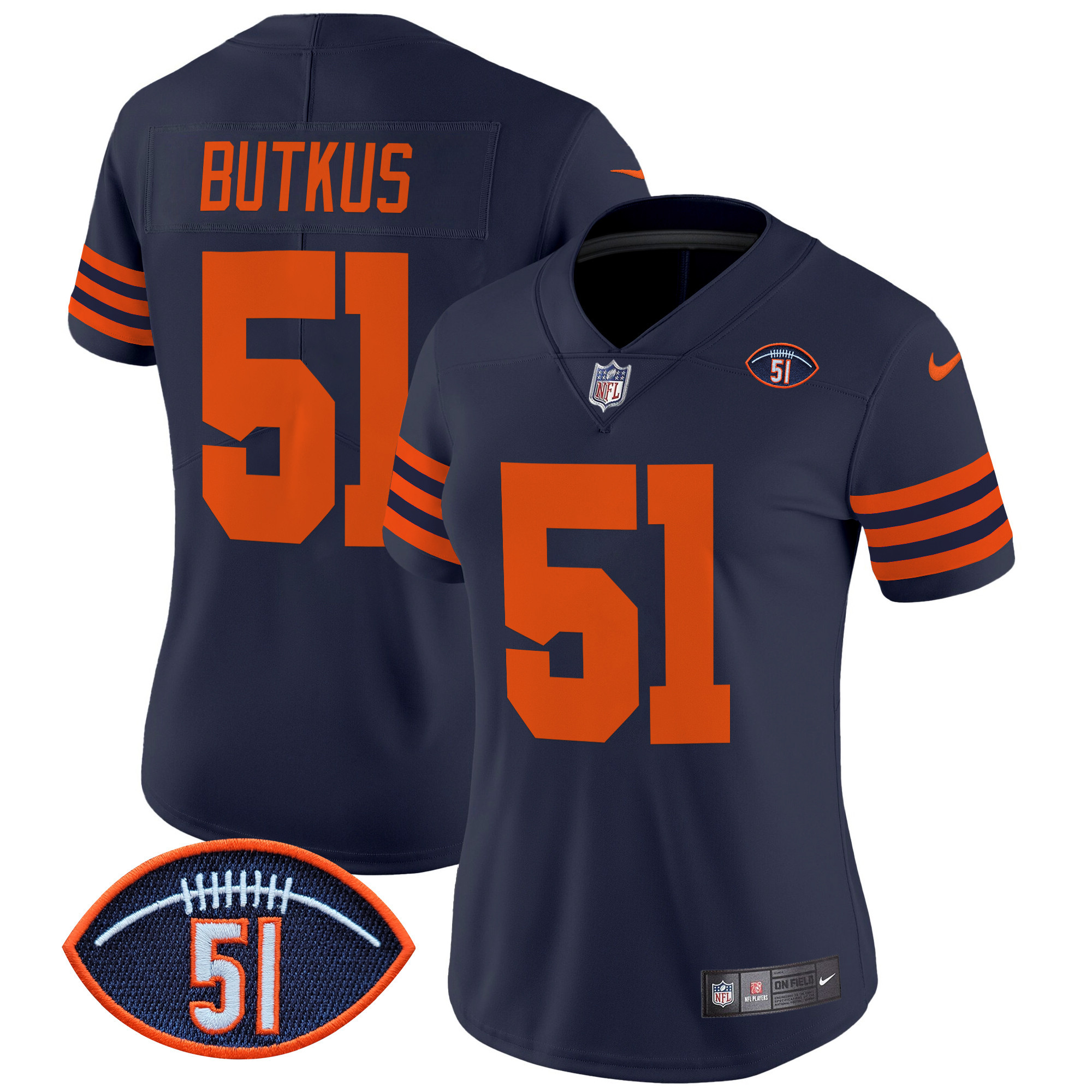 Women’s Chicago Bears Dick Butkus Patch Throwback Vapor Limited Jersey – All Stitched