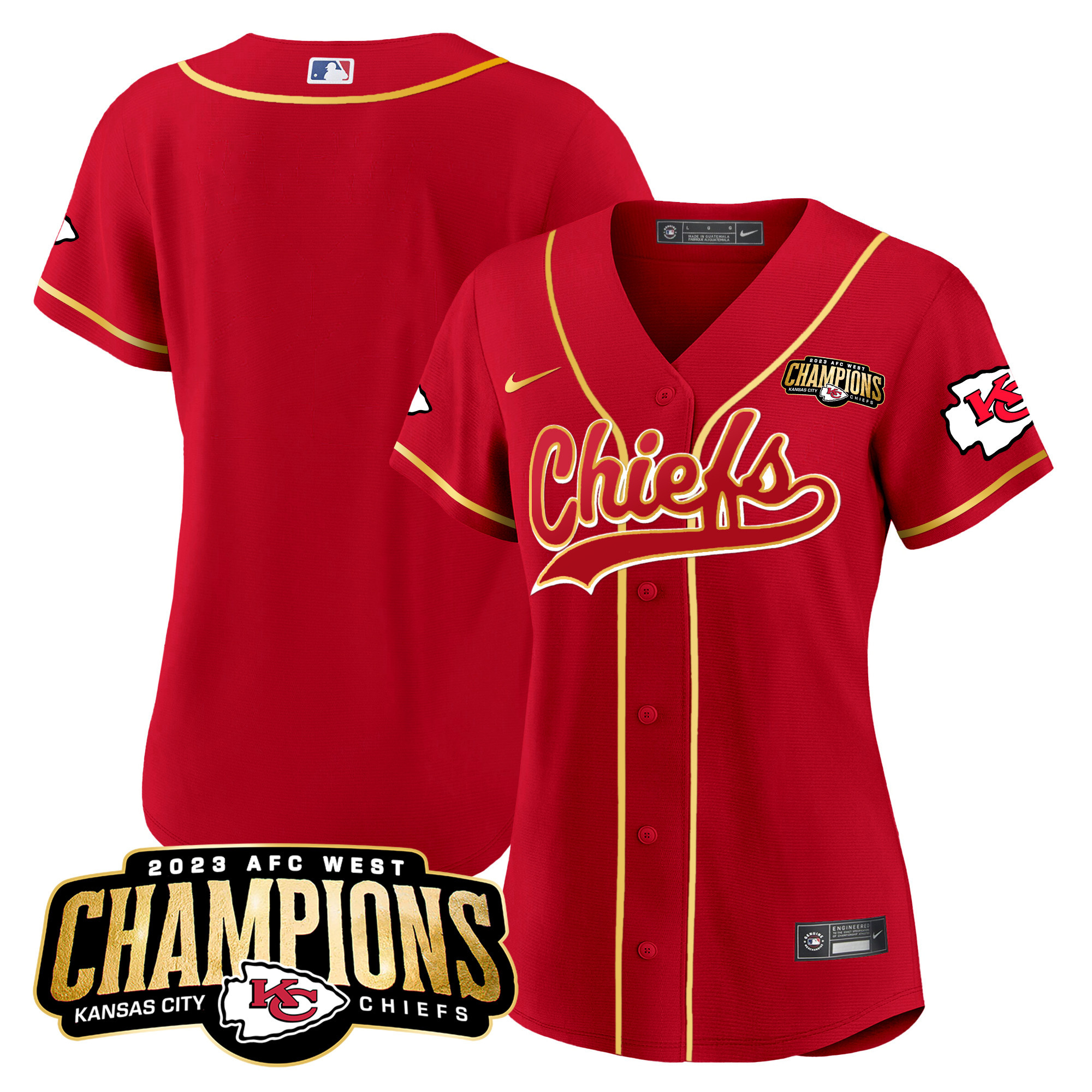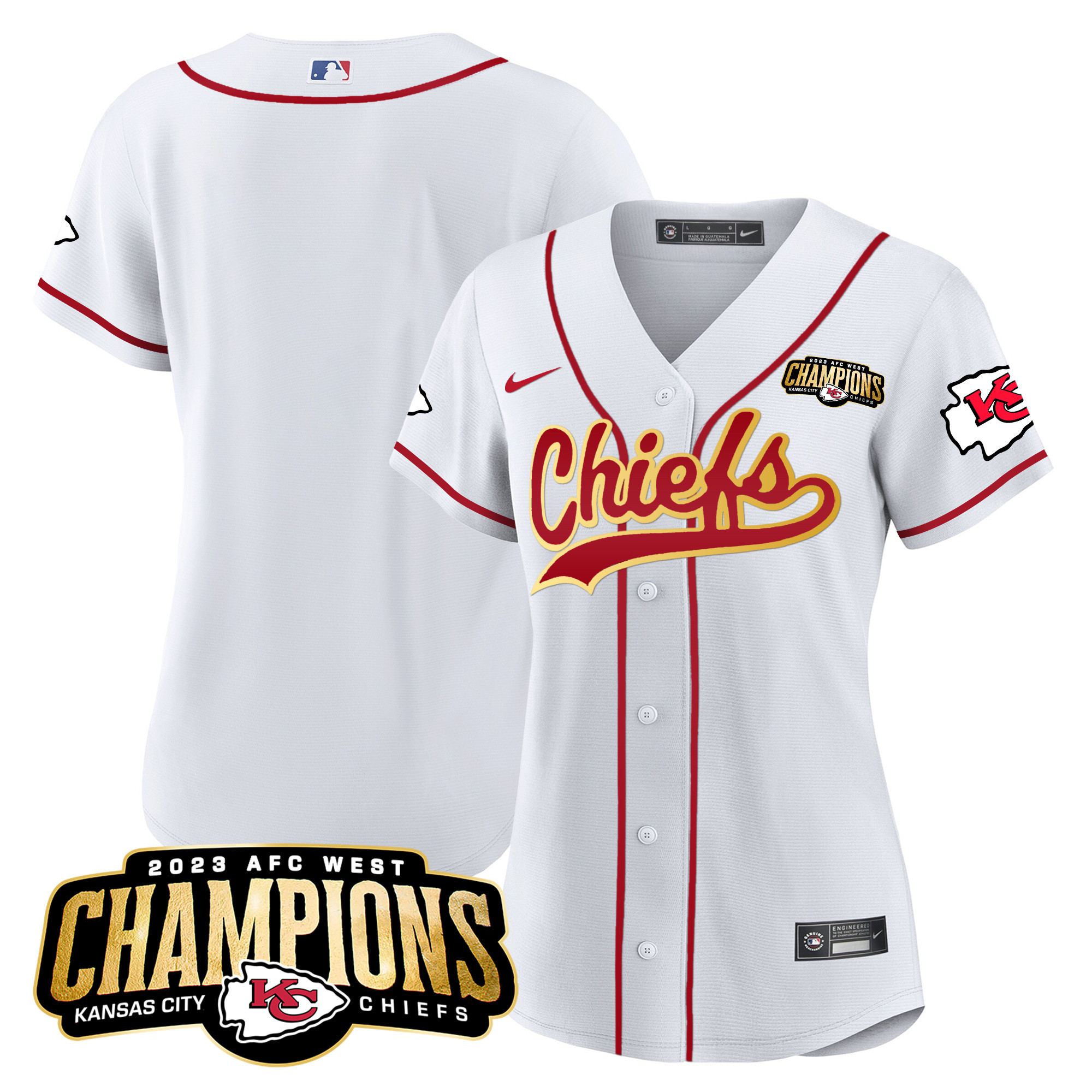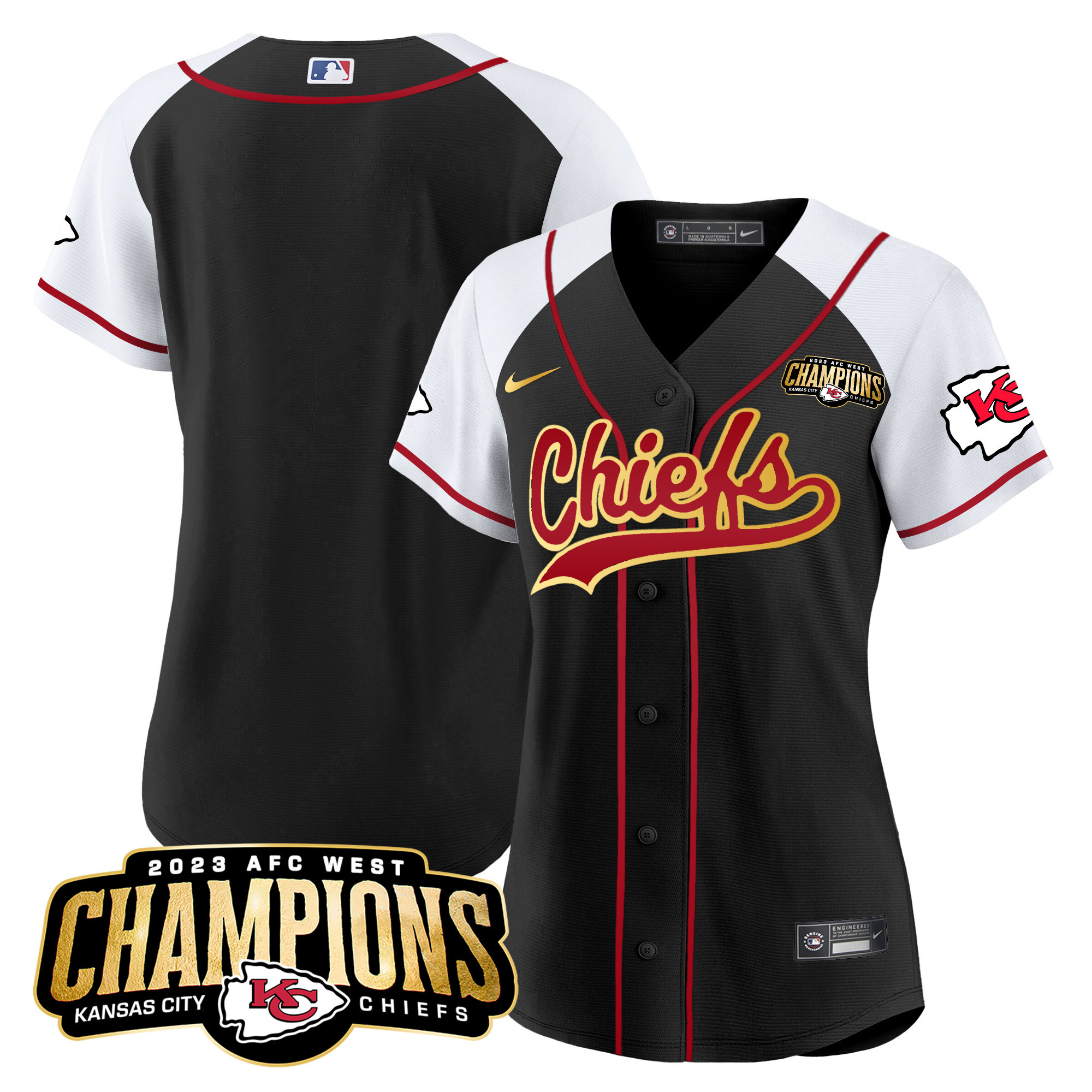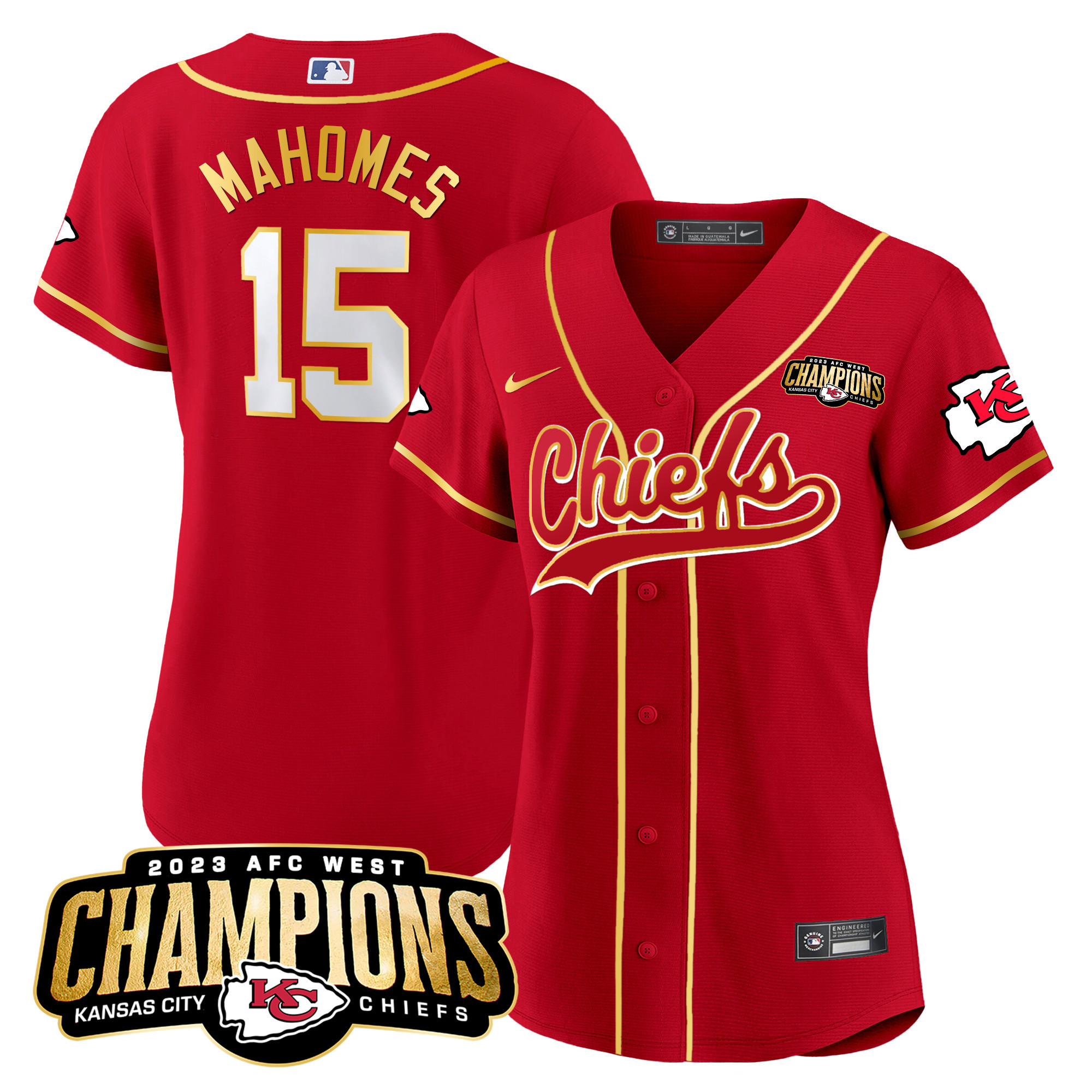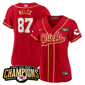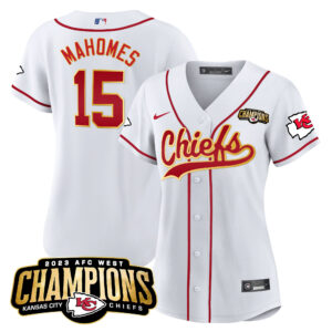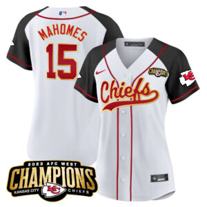 Women’s Chiefs 2023 AFC West Champions Patch Baseball Jersey – All Stitched