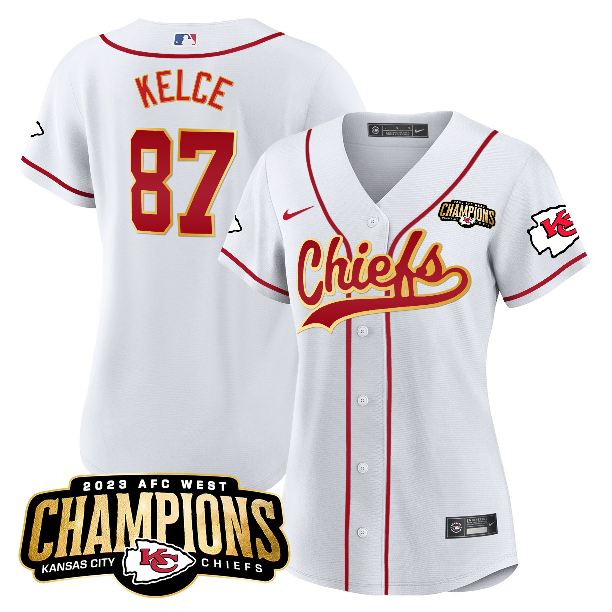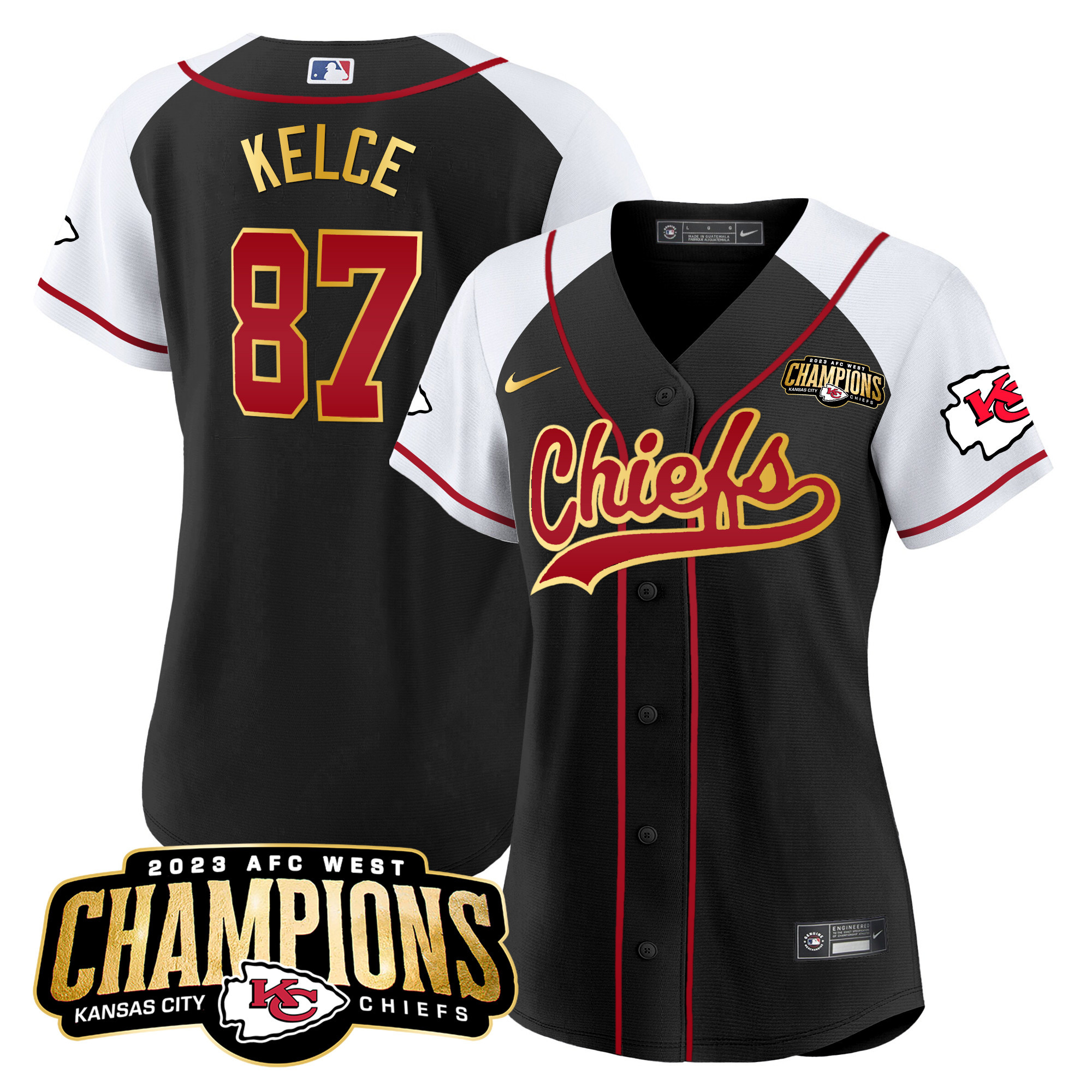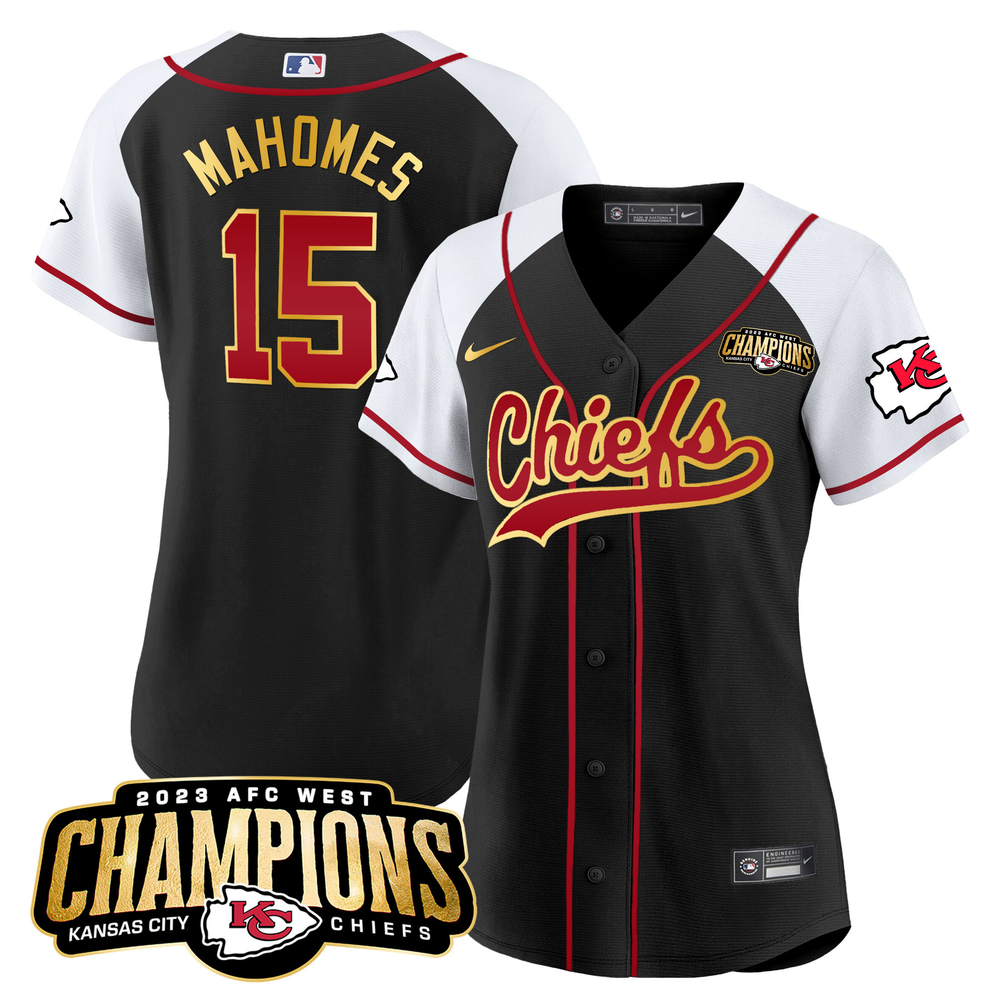 Women’s Chiefs 2023 AFC West Champions Patch Baseball Jersey – All Stitched