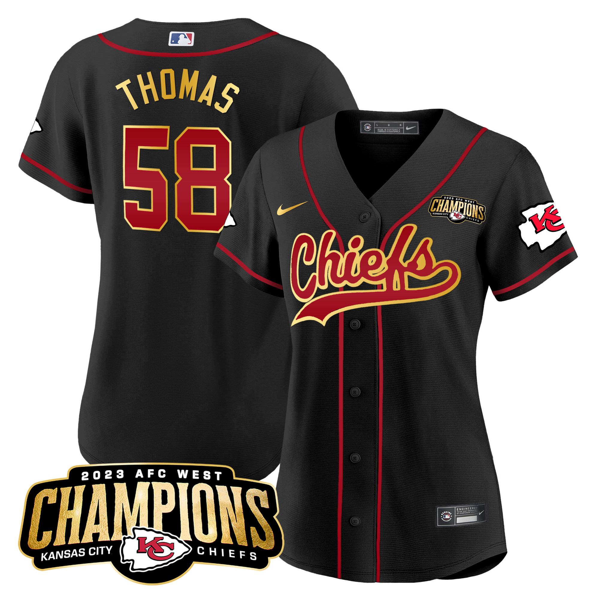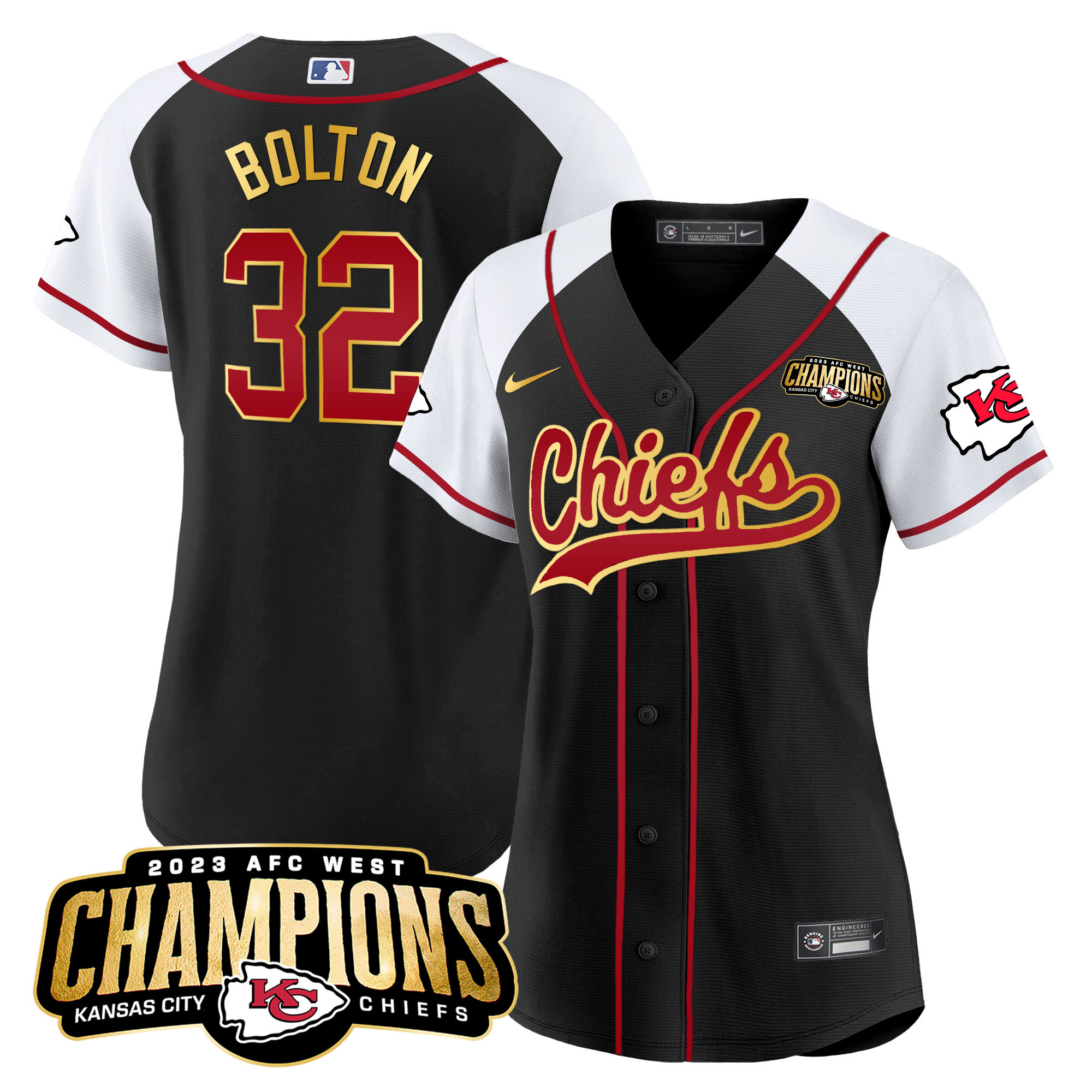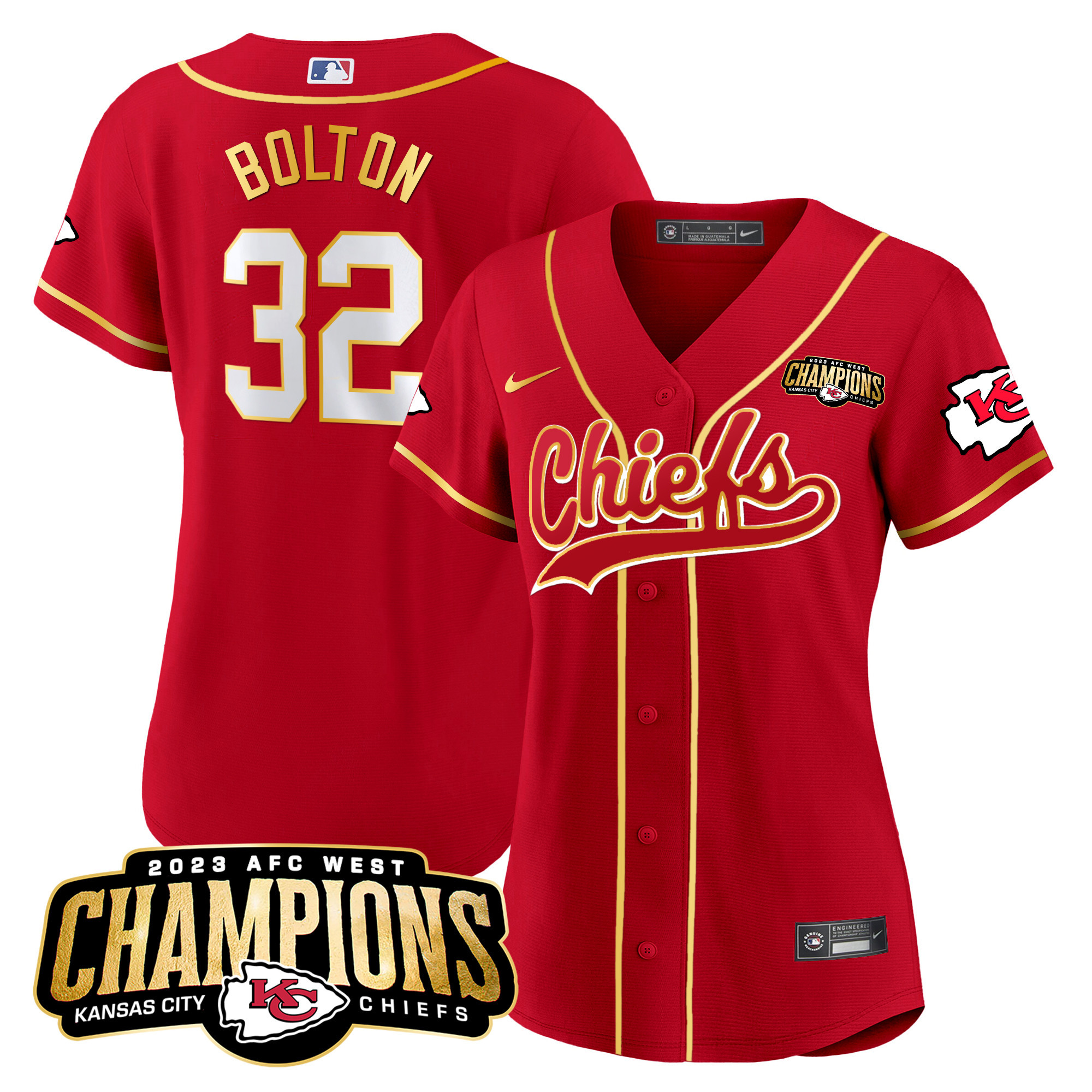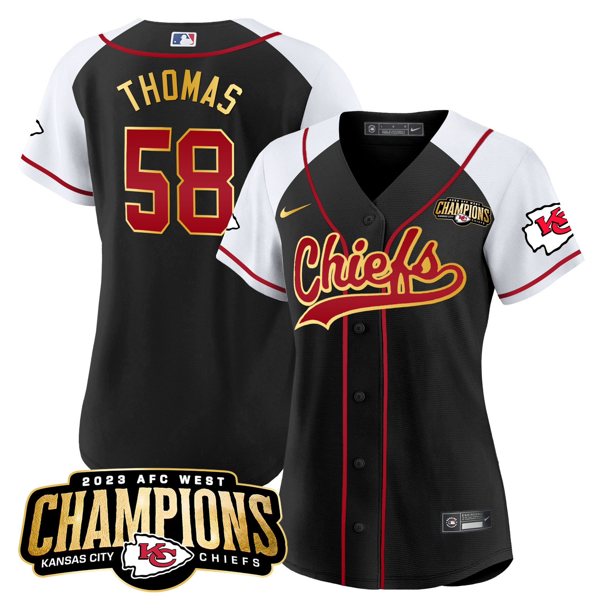 Women’s Chiefs 2023 AFC West Champions Patch Baseball Jersey – All Stitched