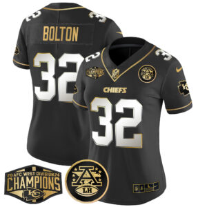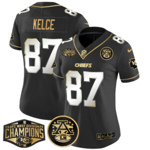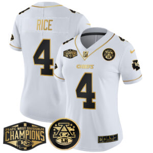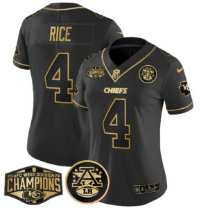 Women’s Chiefs 2024 AFC West Division Champions Patch Gold Vapor Limited Jersey – All Stitched