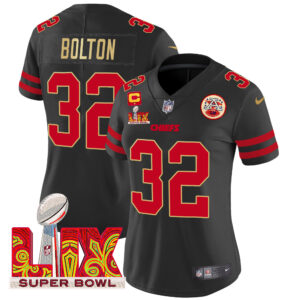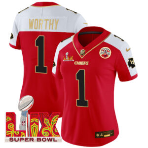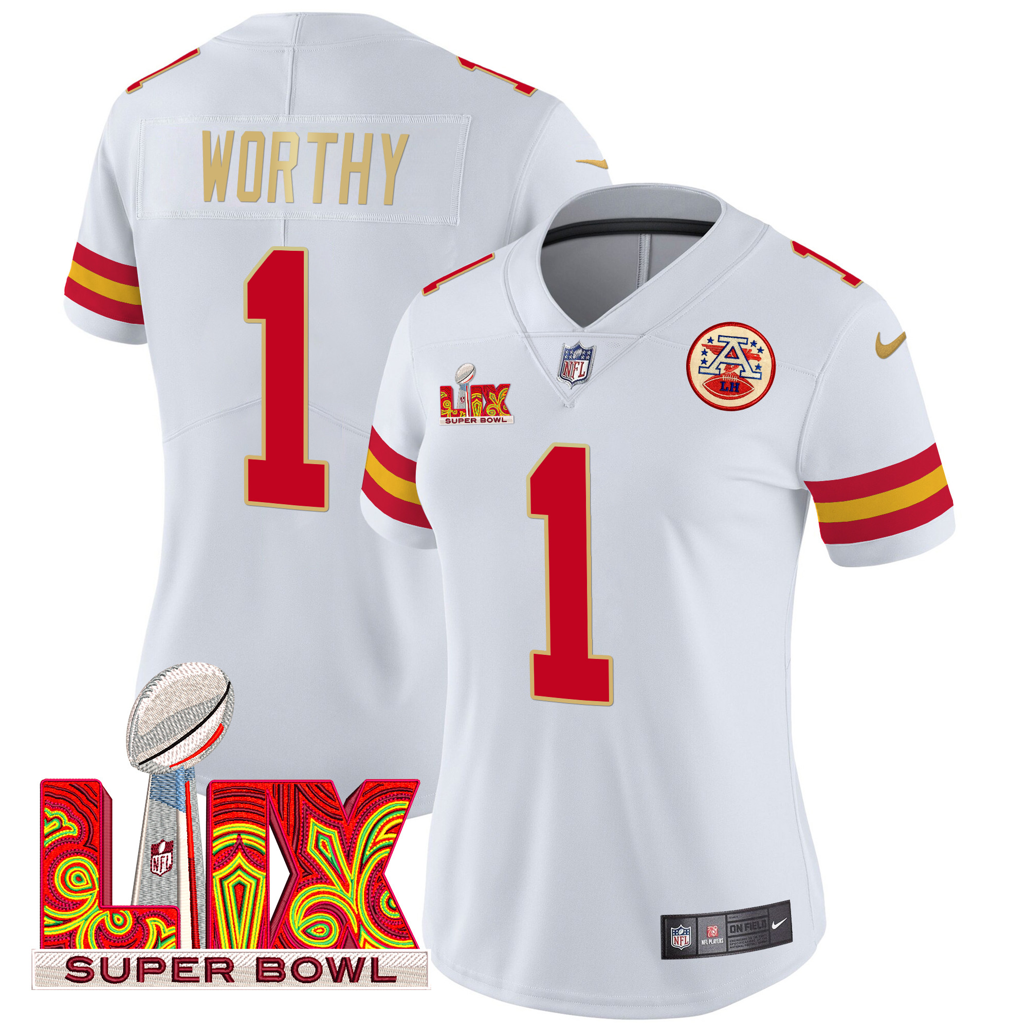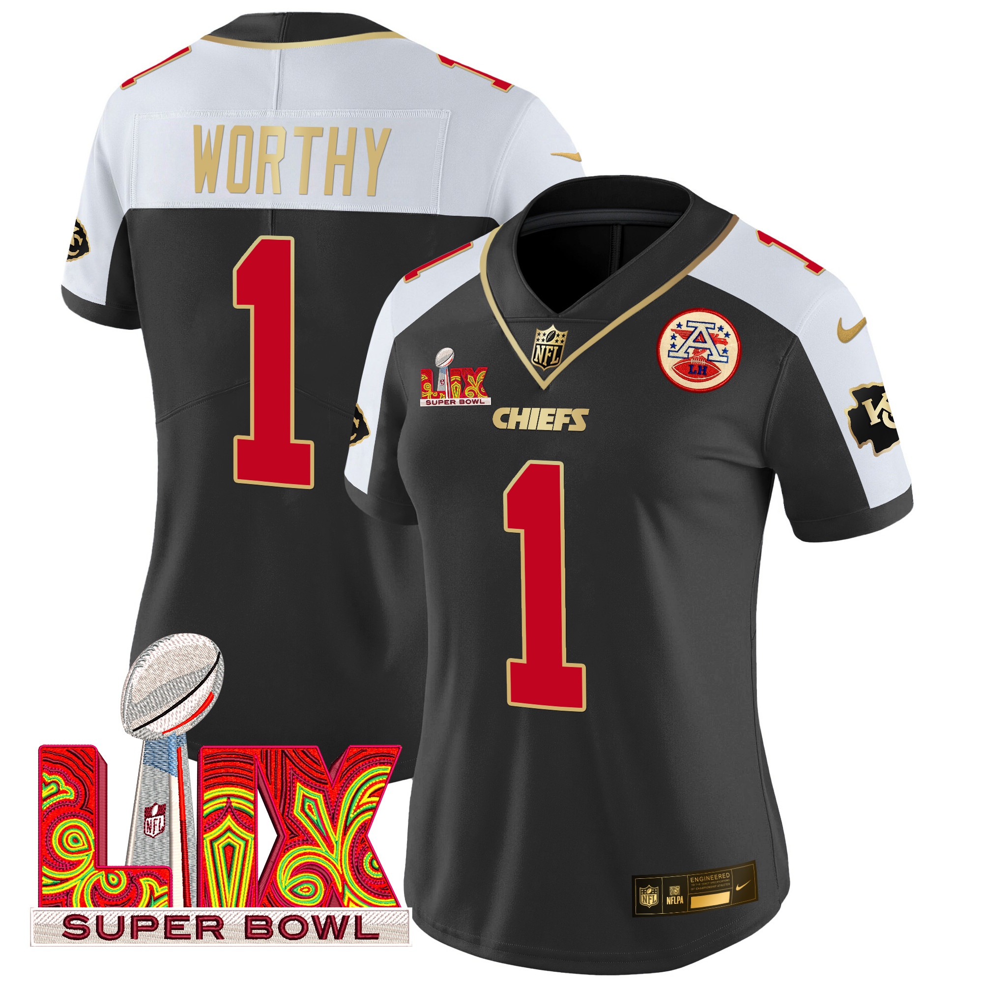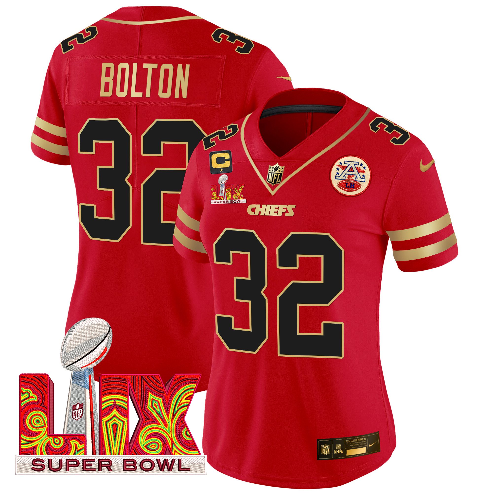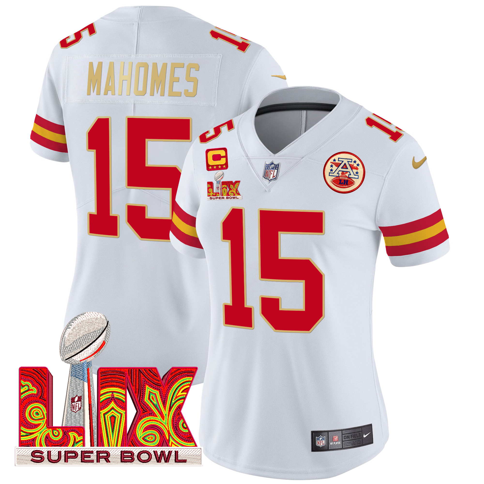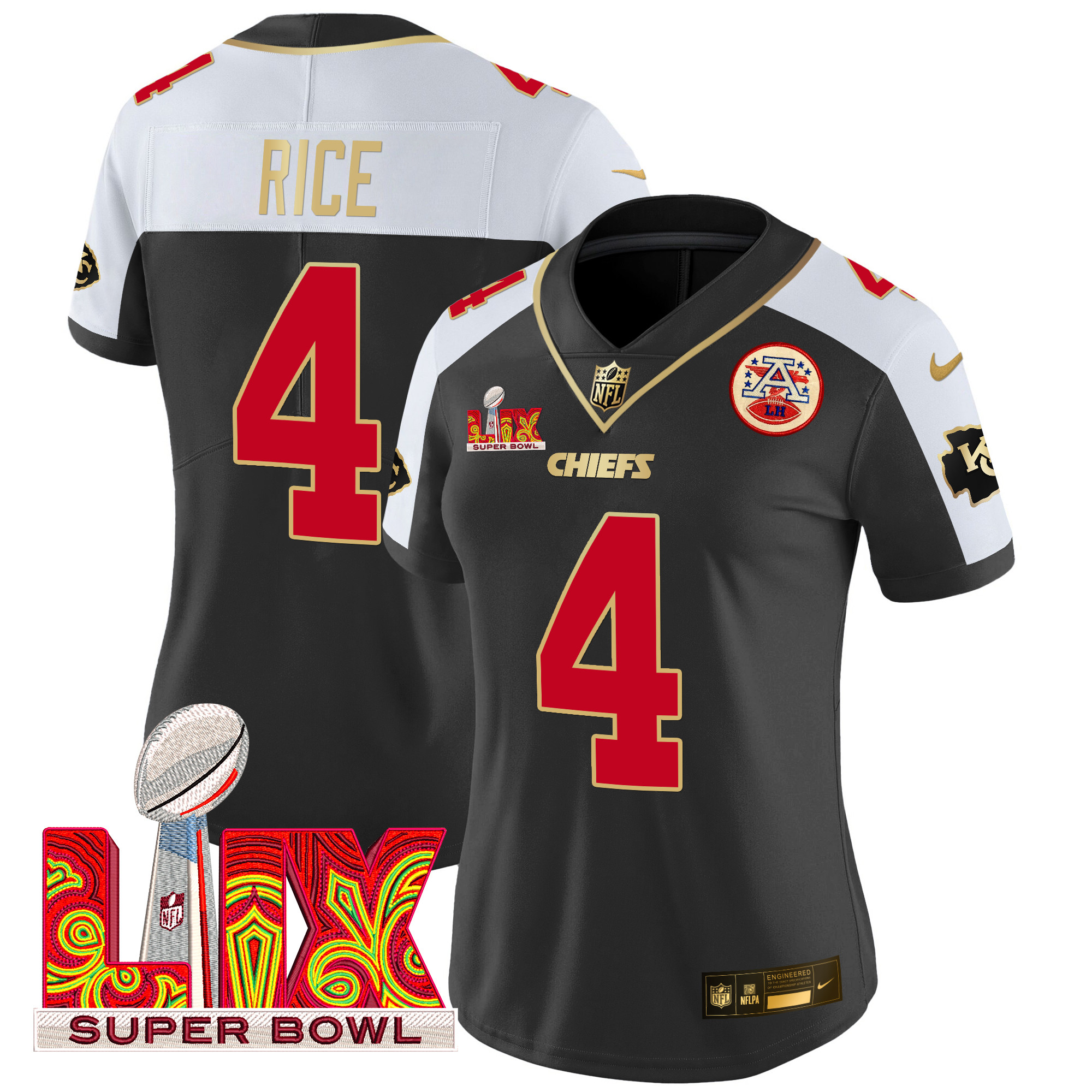 Women’s Chiefs Super Bowl LIX Patch Gold Trim Vapor Limited Jersey – All Stitched
