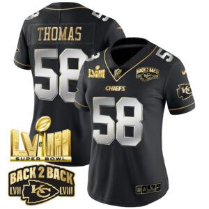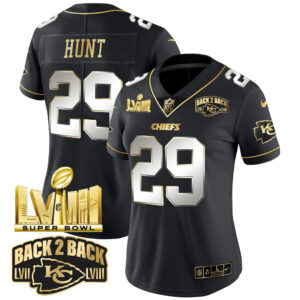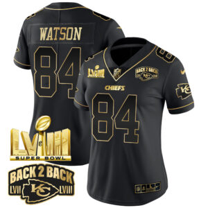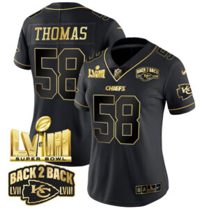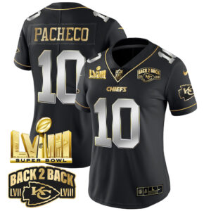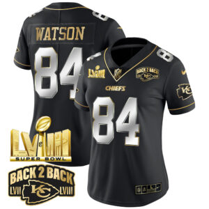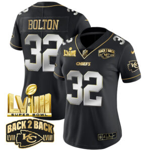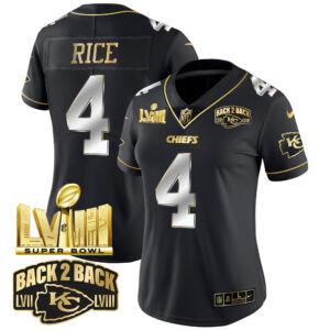 Women’s Chiefs Super Bowl LVIII & Back 2 Back Gold Patch Vapor Jersey V2 – All Stitched