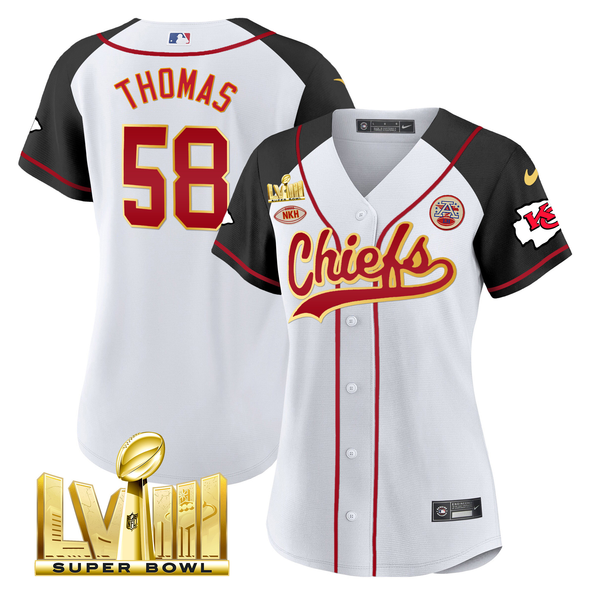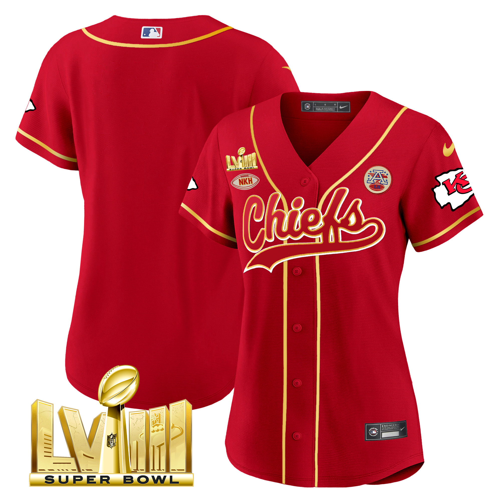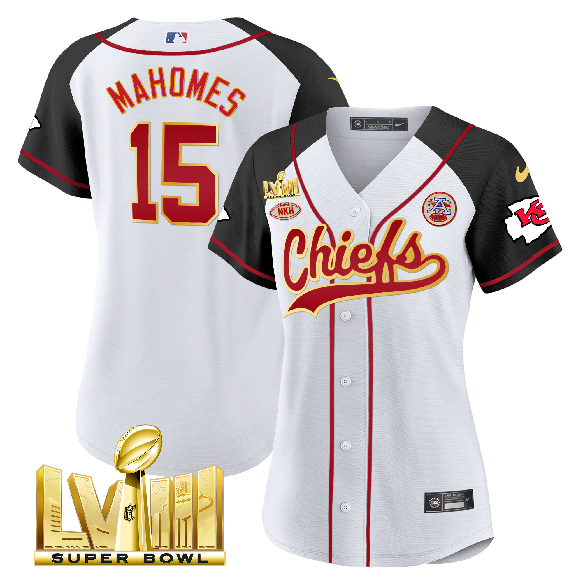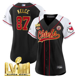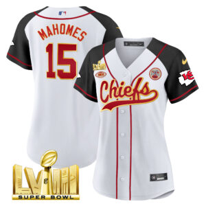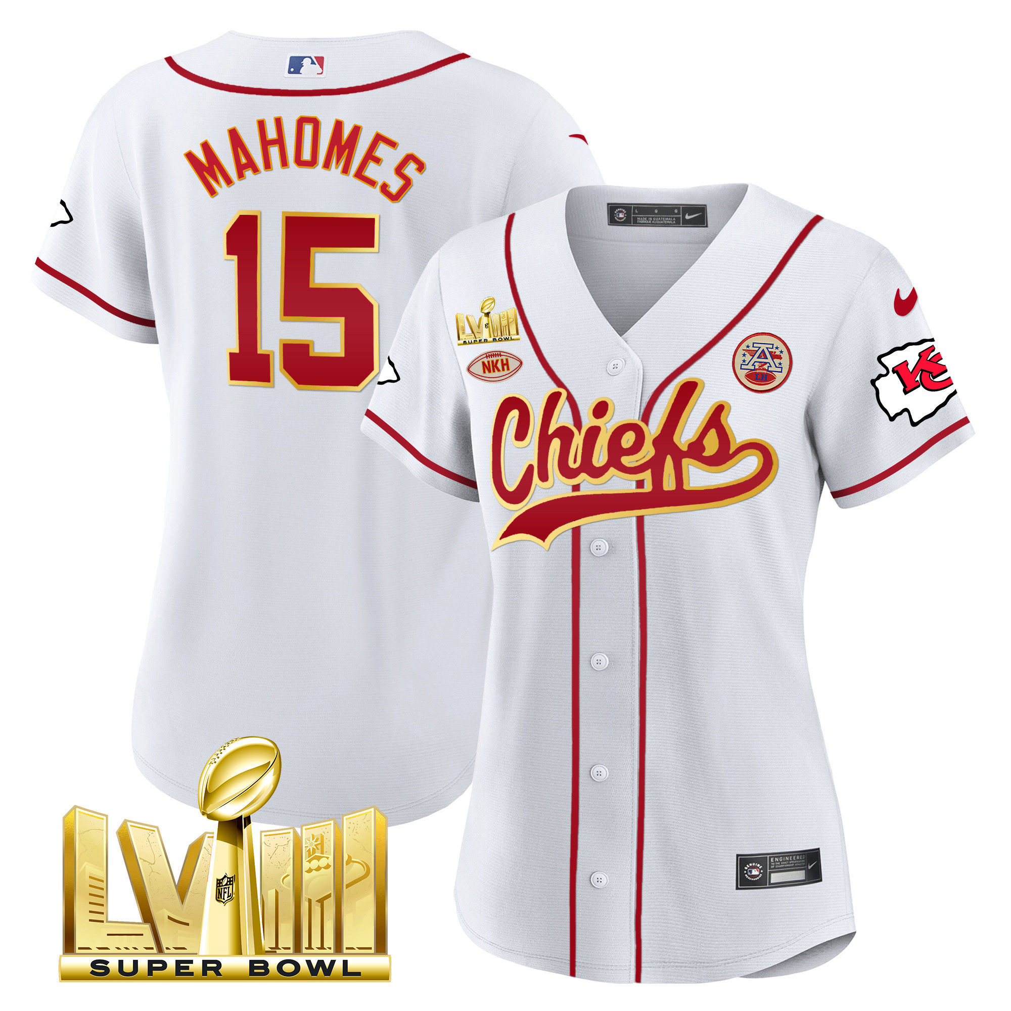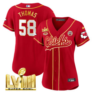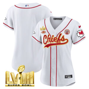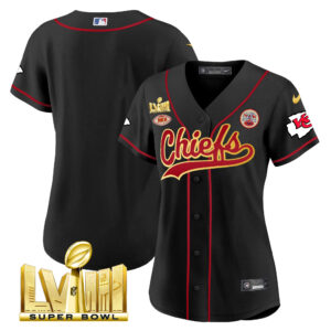 Women’s Chiefs Super Bowl LVIII Gold Patch Baseball Jersey – All Stitched