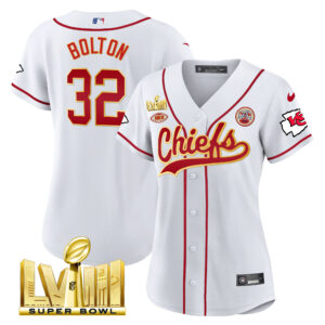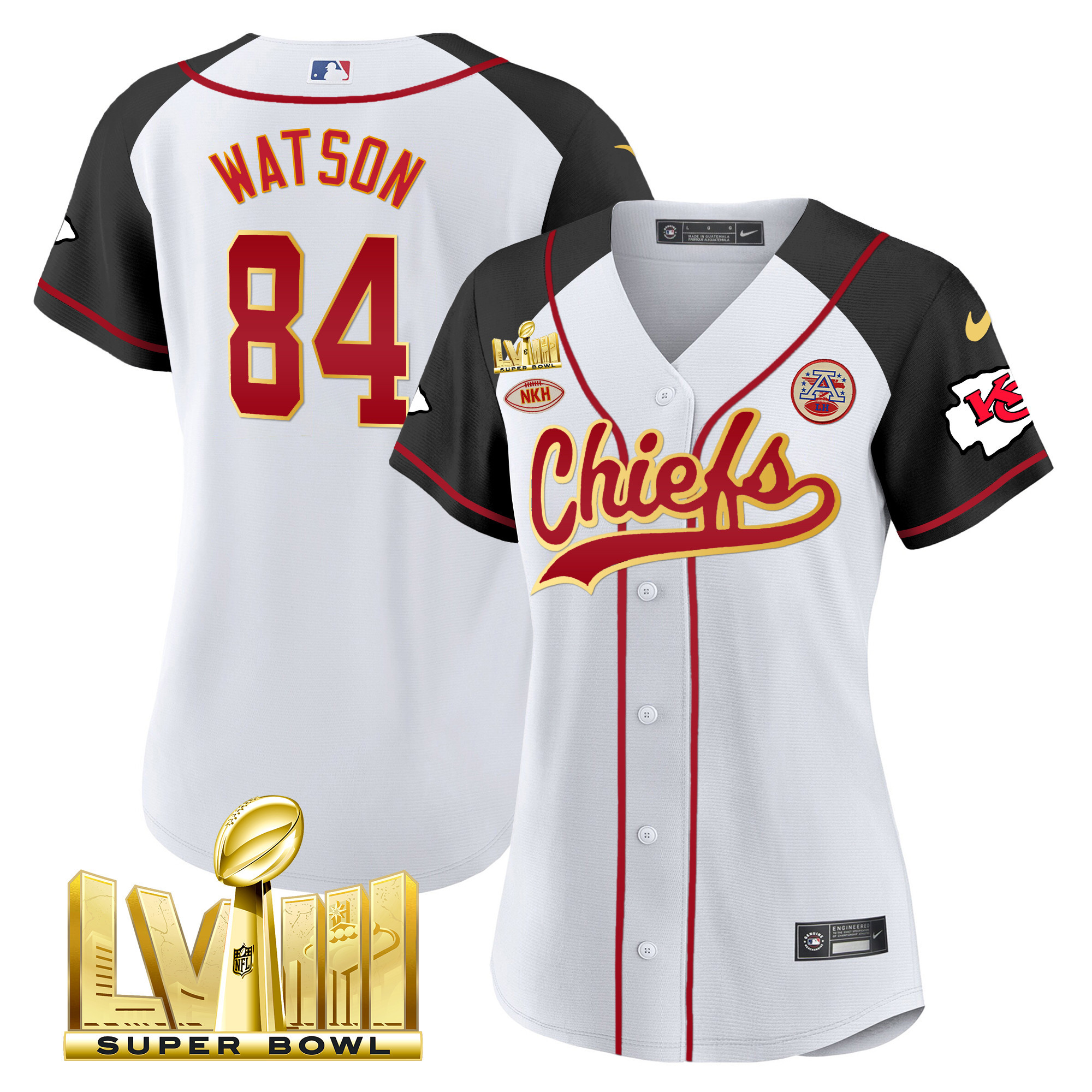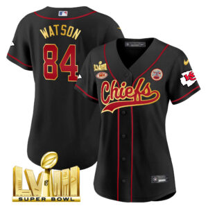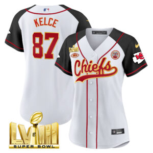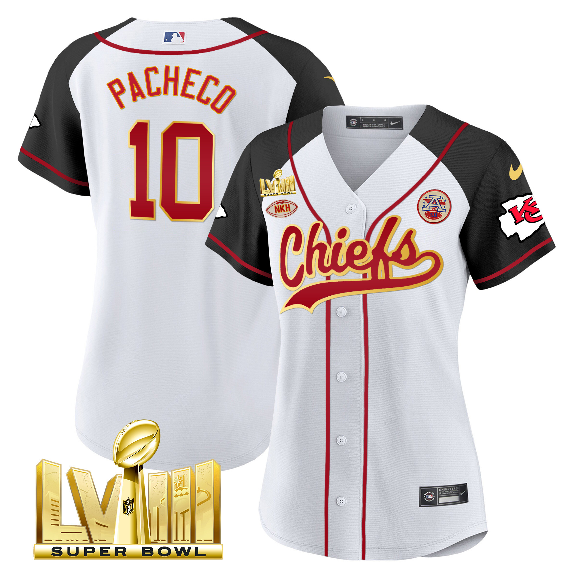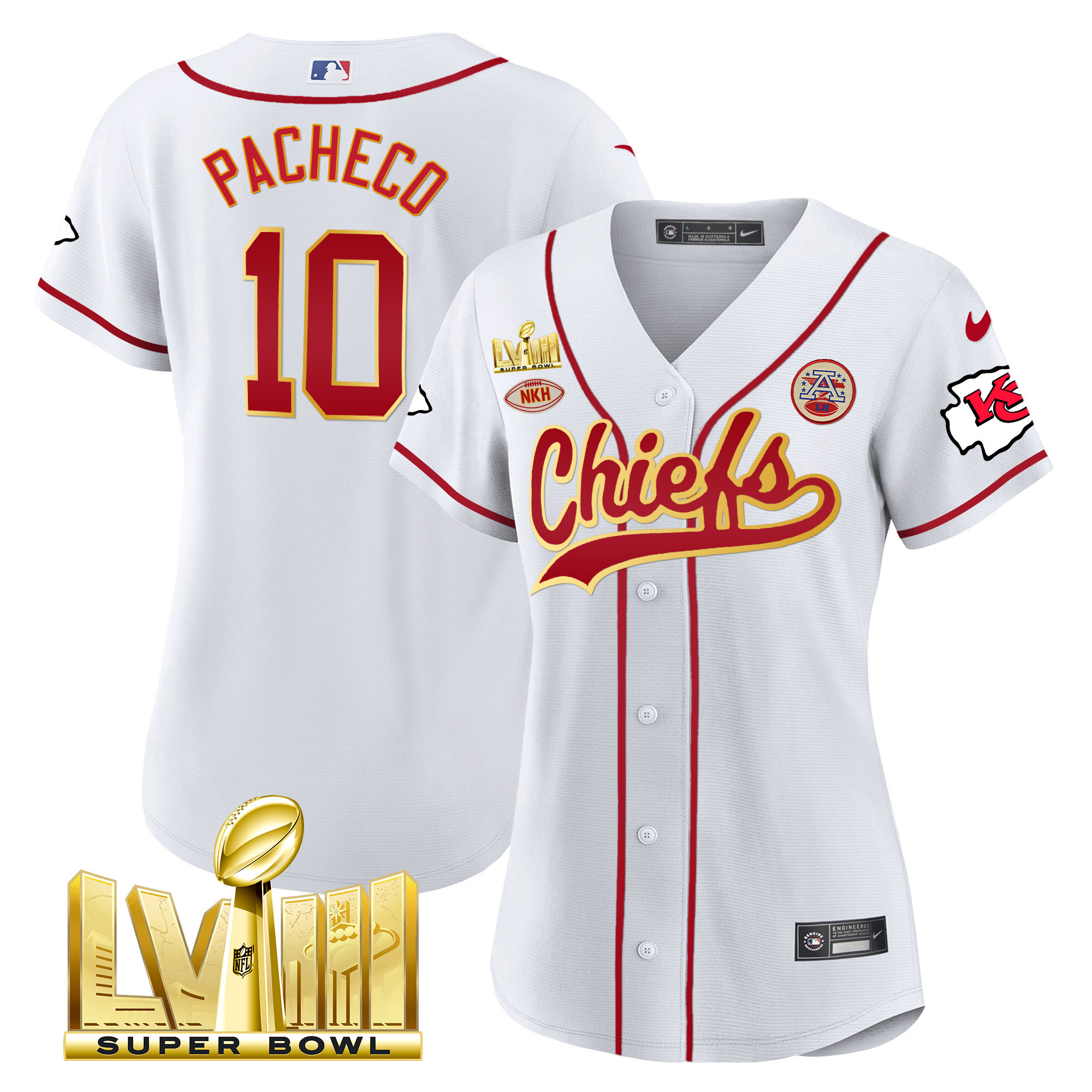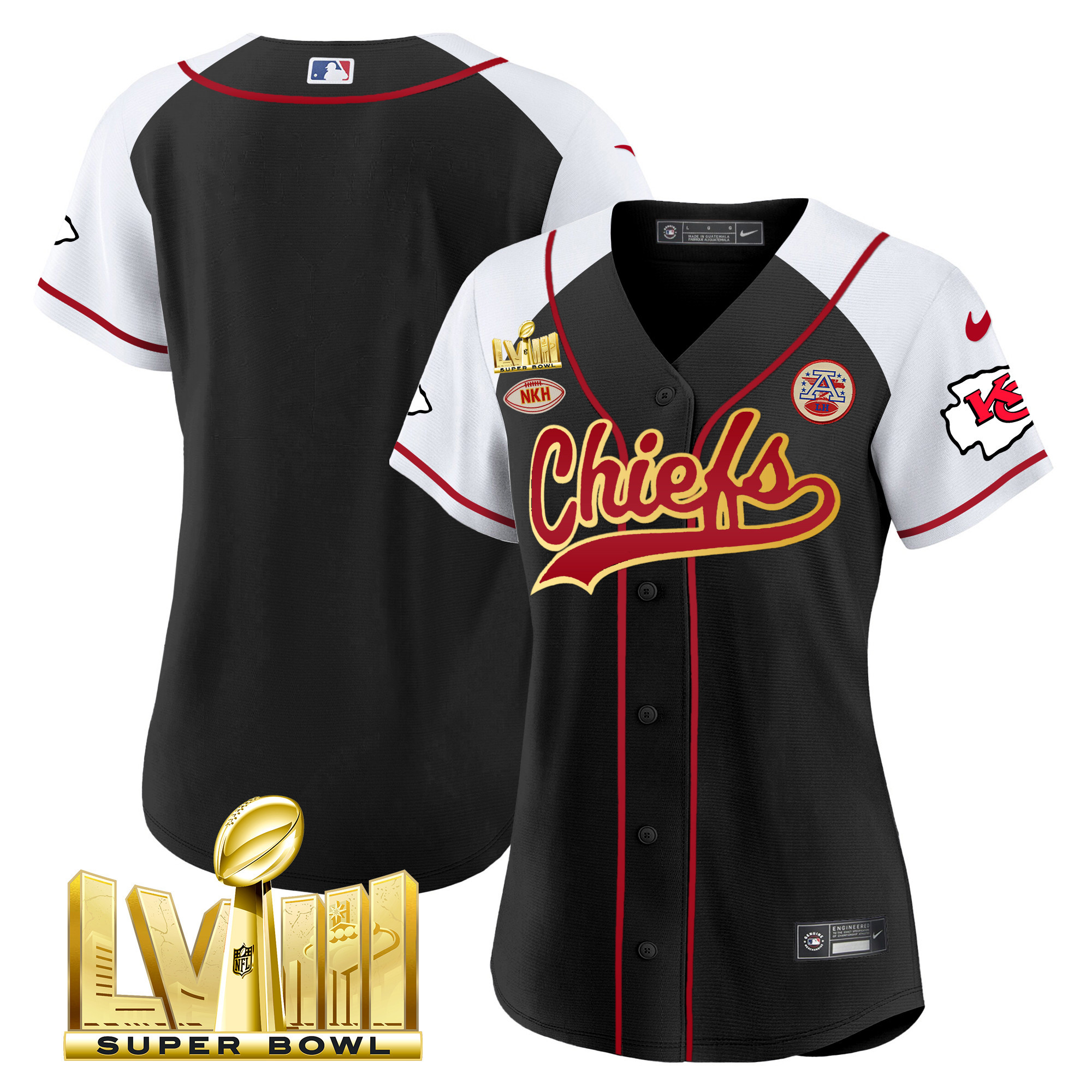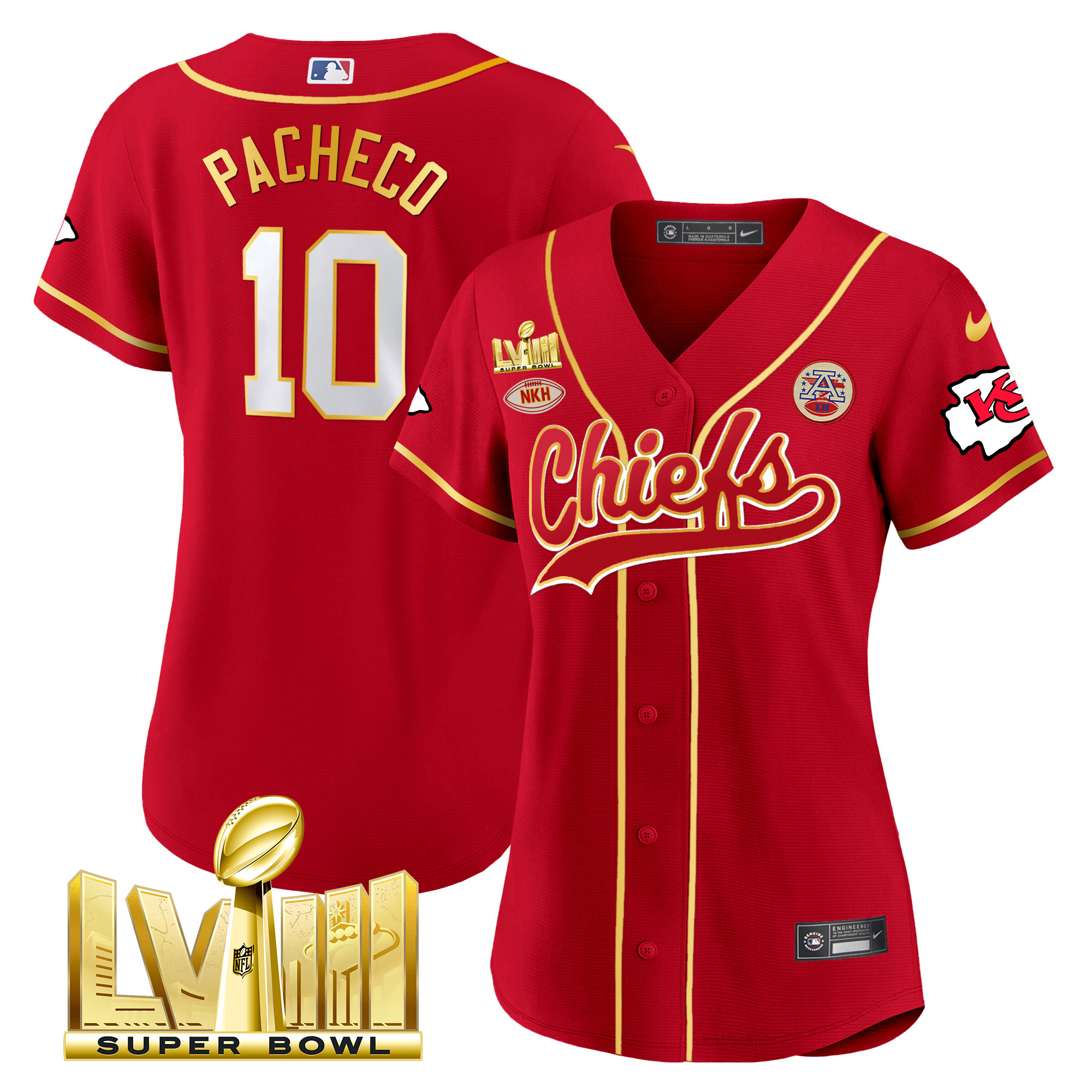 Women’s Chiefs Super Bowl LVIII Gold Patch Baseball Jersey – All Stitched