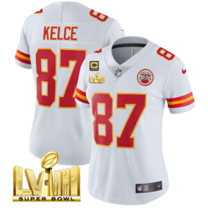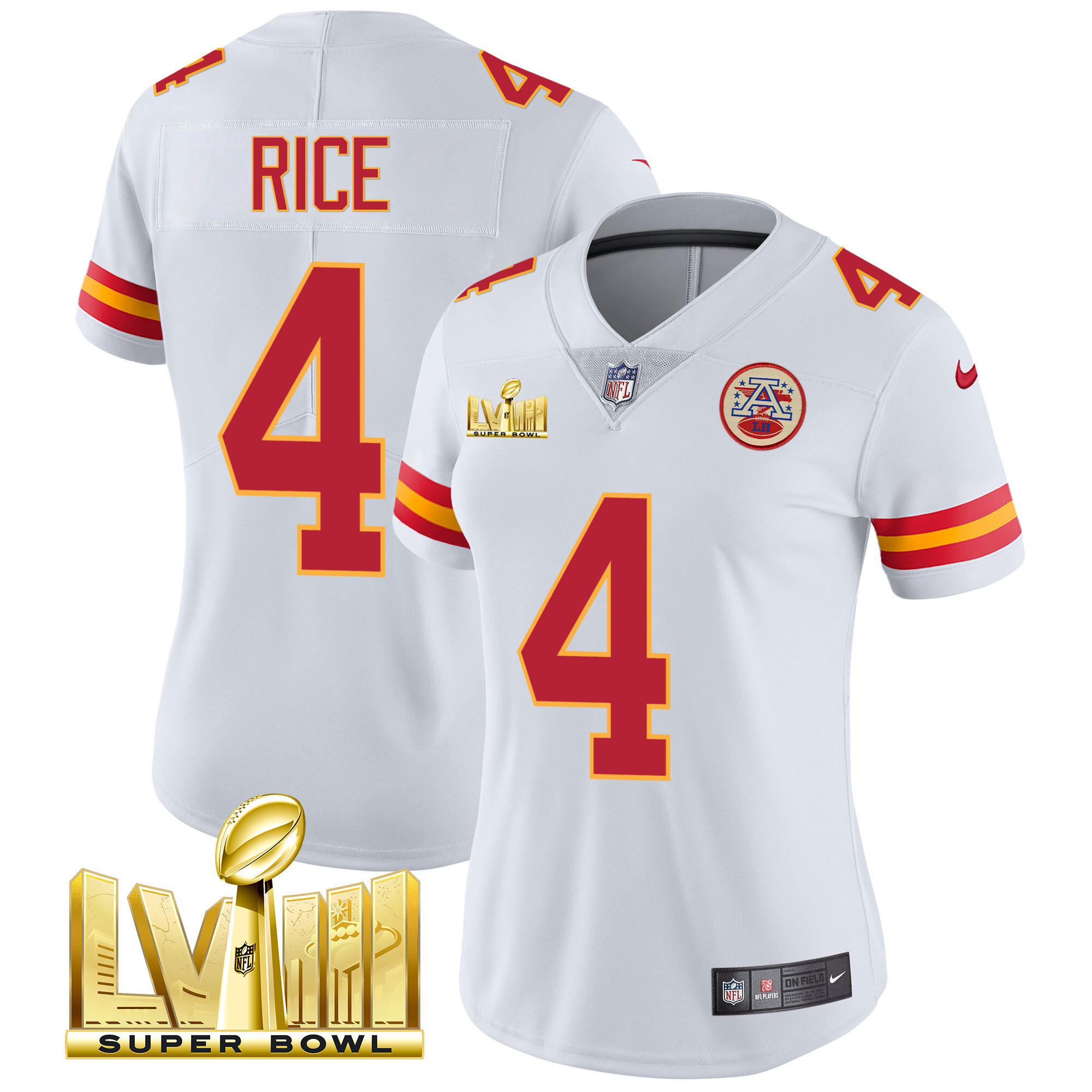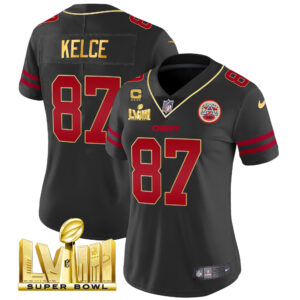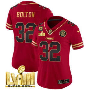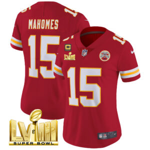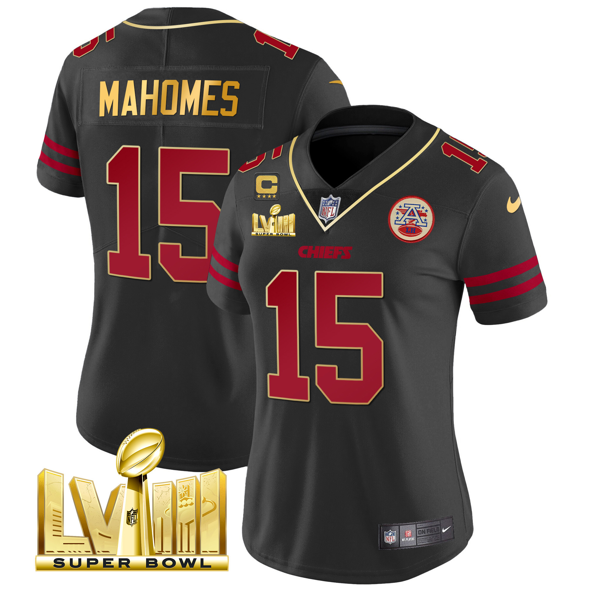 Women’s Chiefs Super Bowl LVIII Gold Patch Vapor Jersey – All Stitched