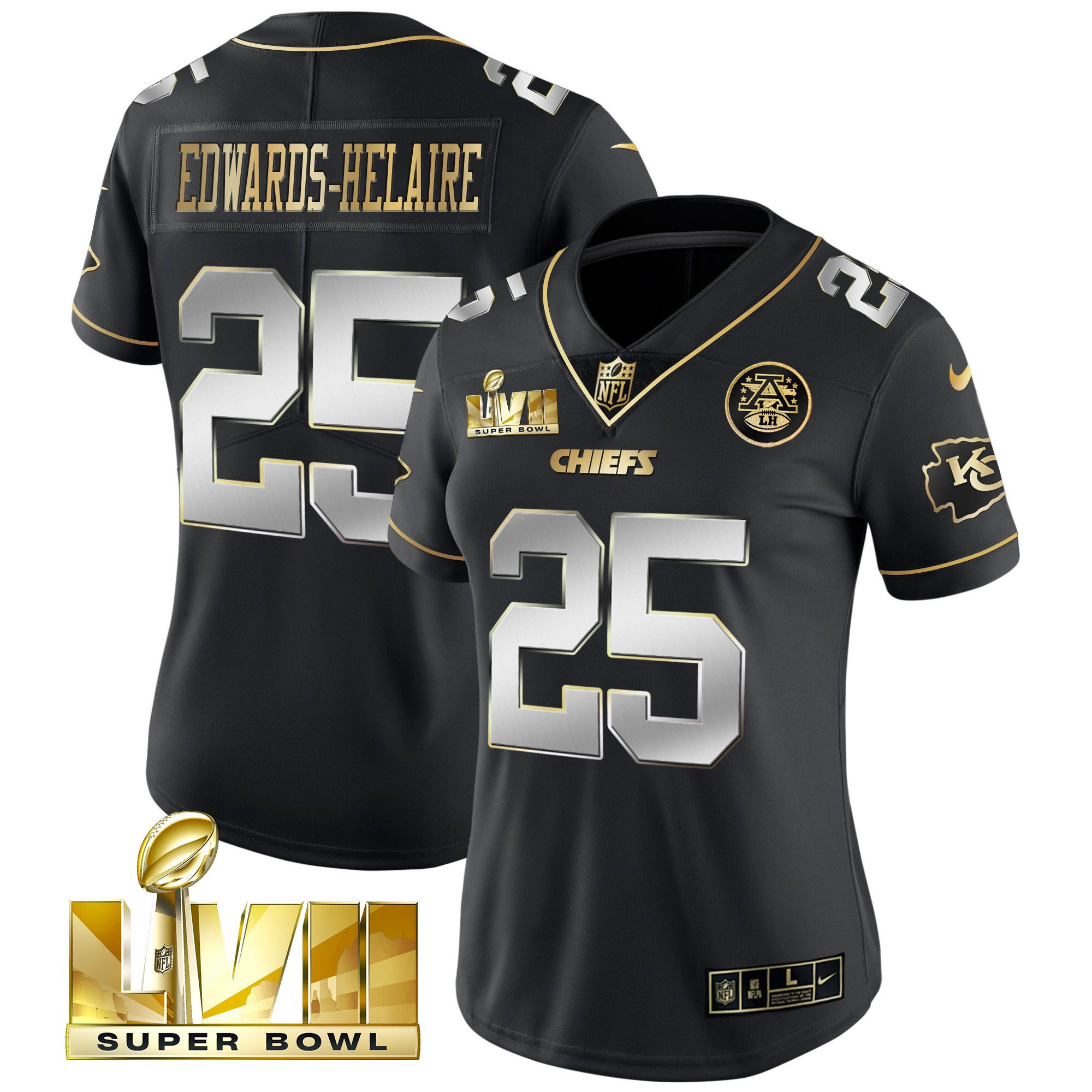 Women’s Chiefs Super Bowl LIX Patch Gold Trim Vapor Limited Jersey – All Stitched