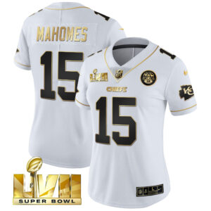 Women’s Chiefs Super Bowl LIX Patch Gold Vapor Limited Jersey – All Stitched