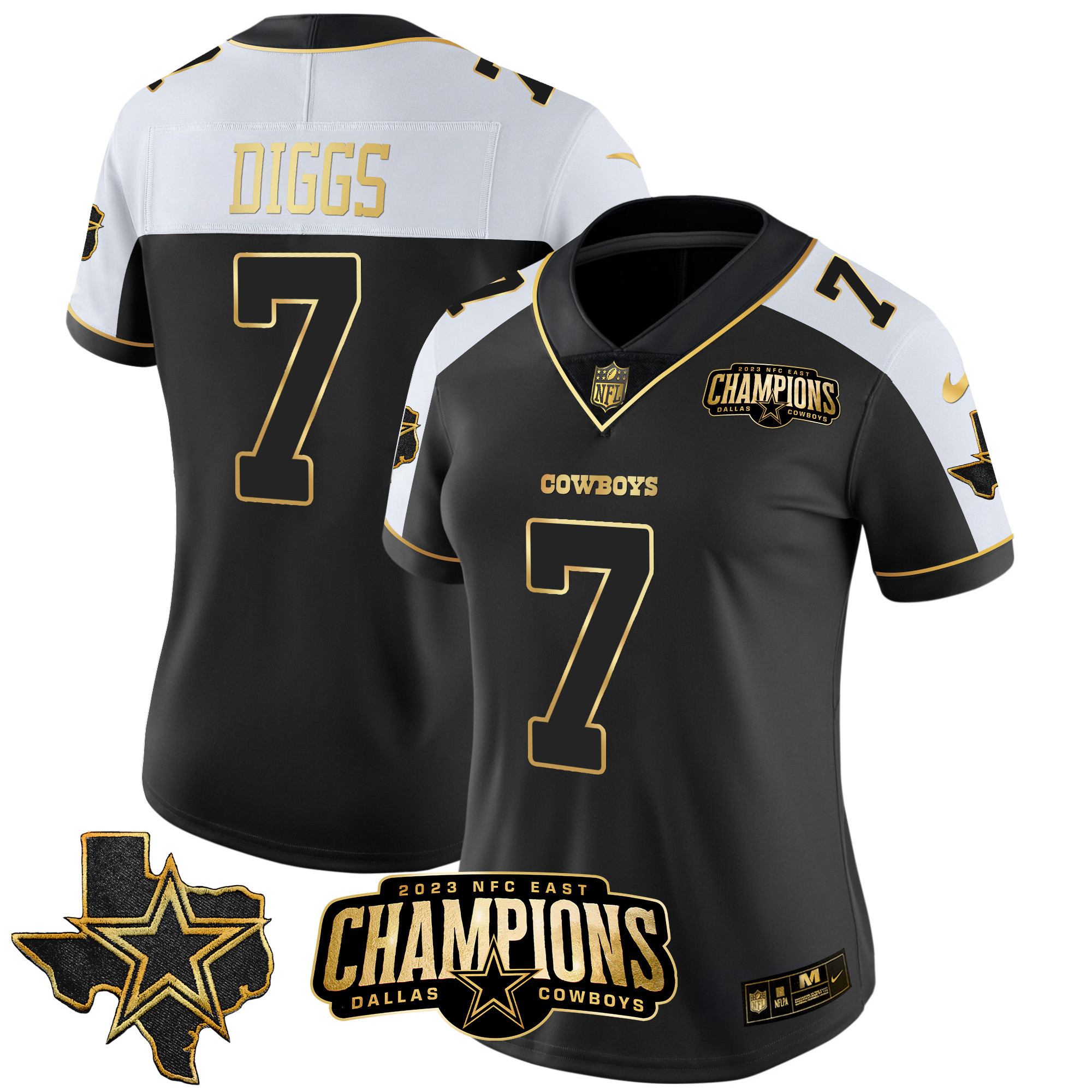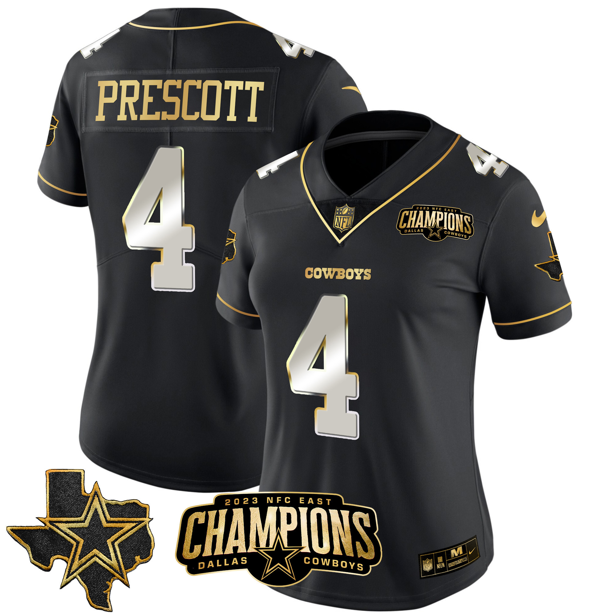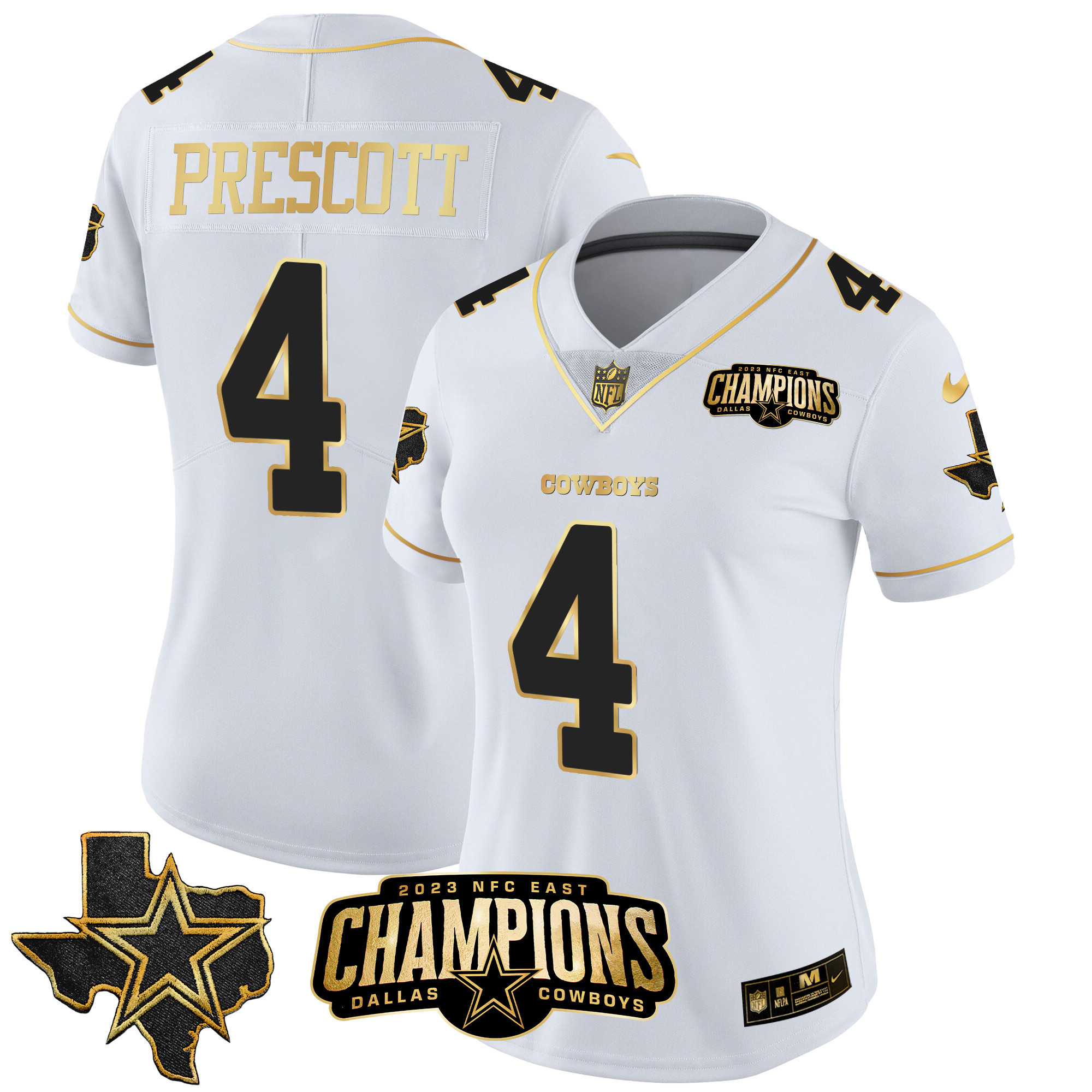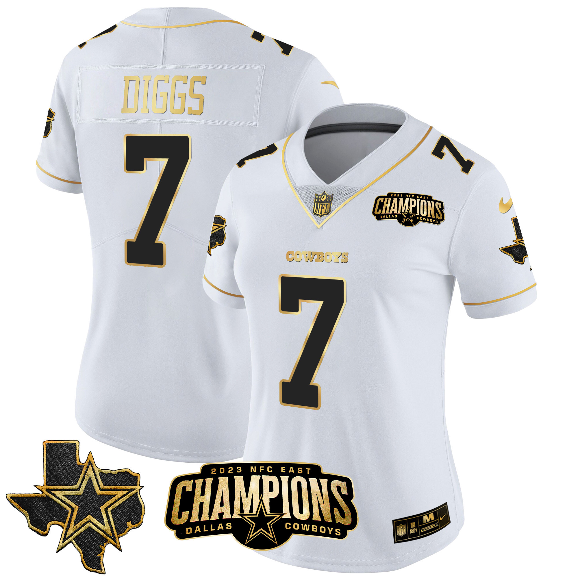 Women’s Cowboys 2023 NFC East Champions Patch Gold Vapor Jersey – All Stitched