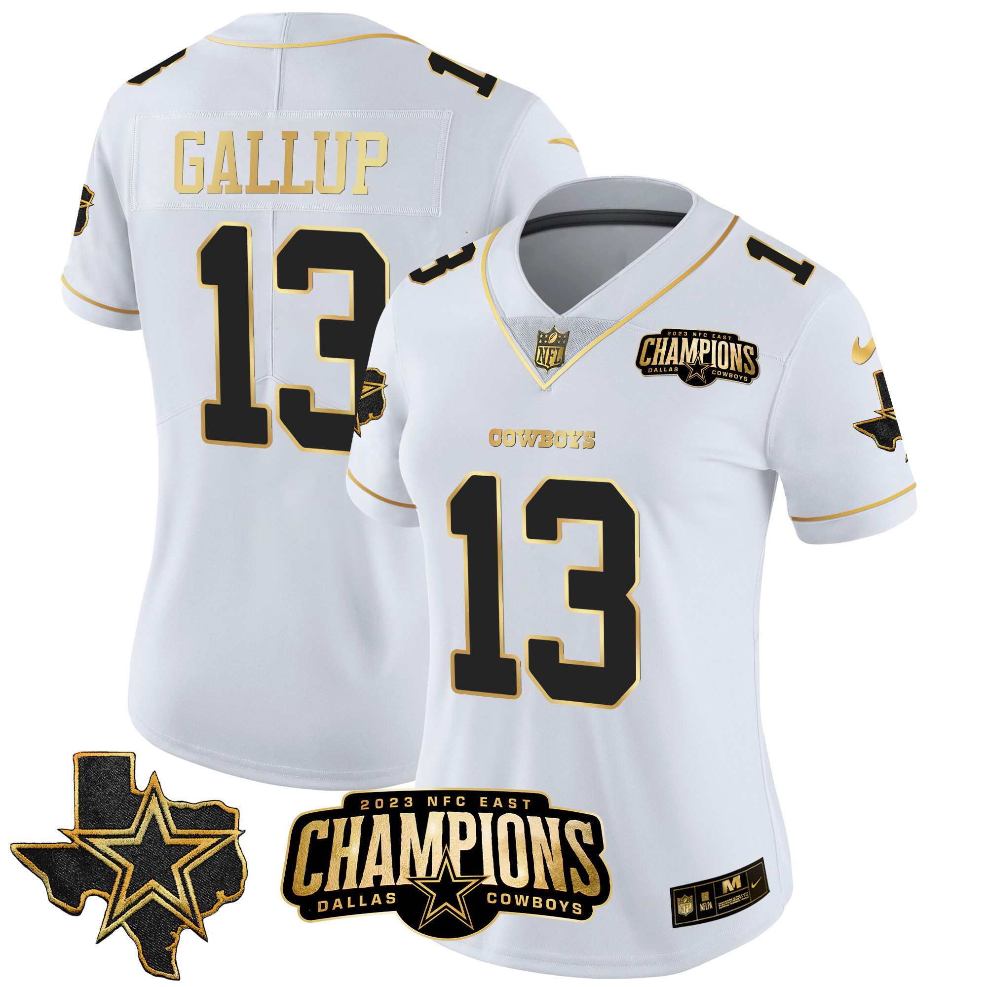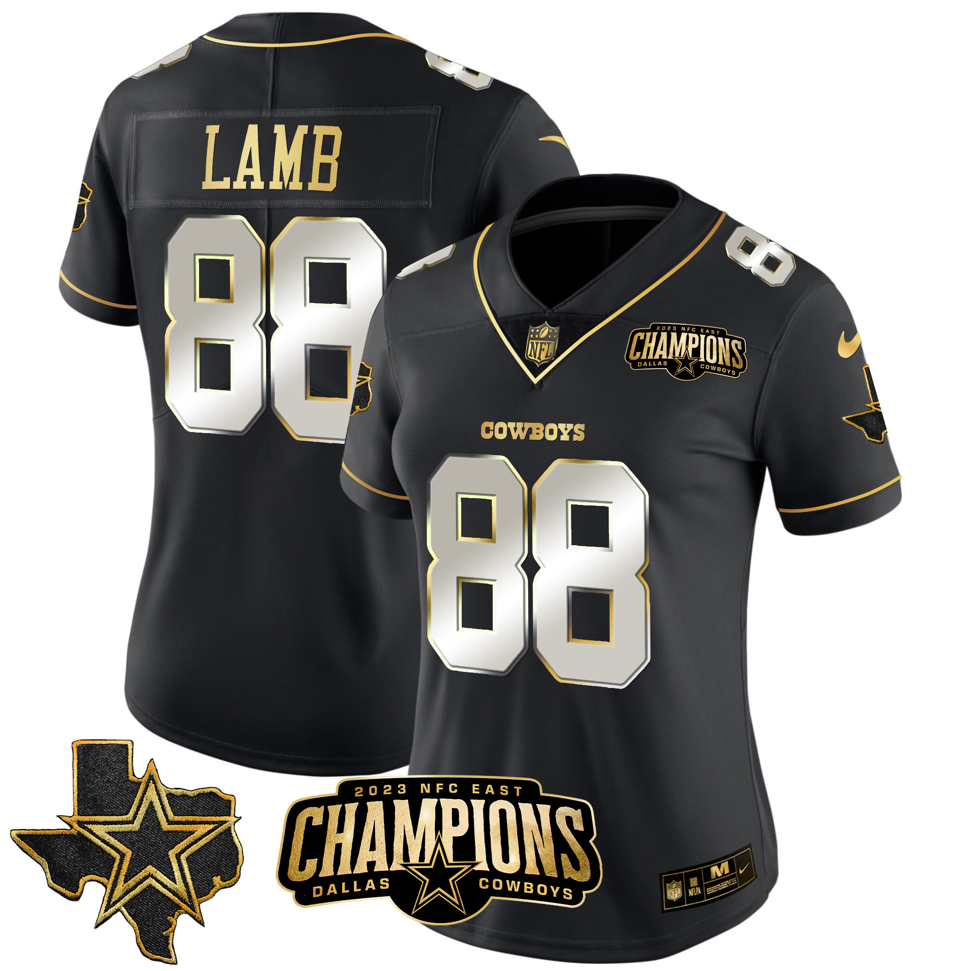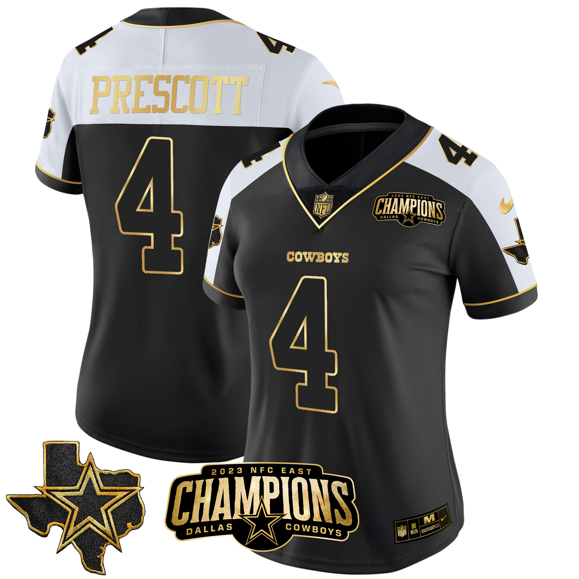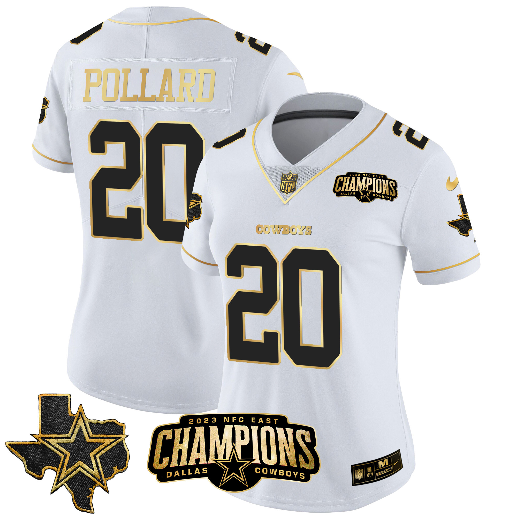 Women’s Cowboys 2023 NFC East Champions Patch Gold Vapor Jersey – All Stitched